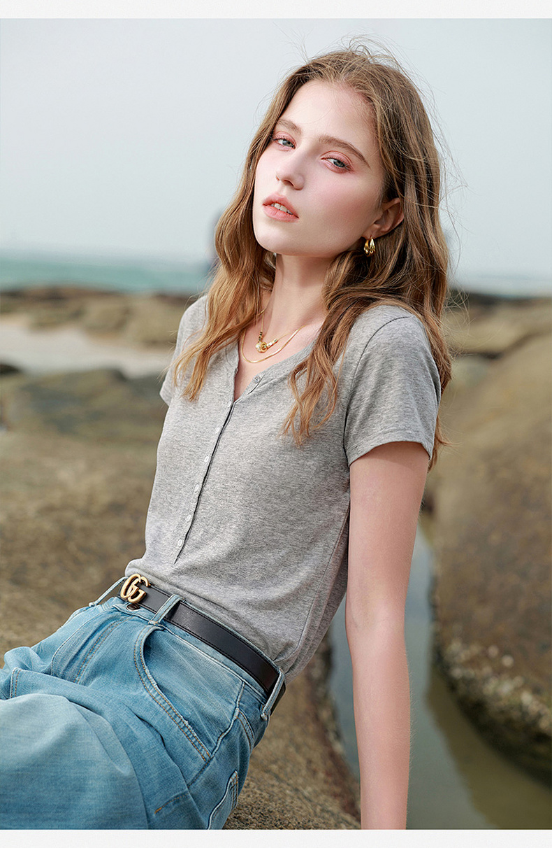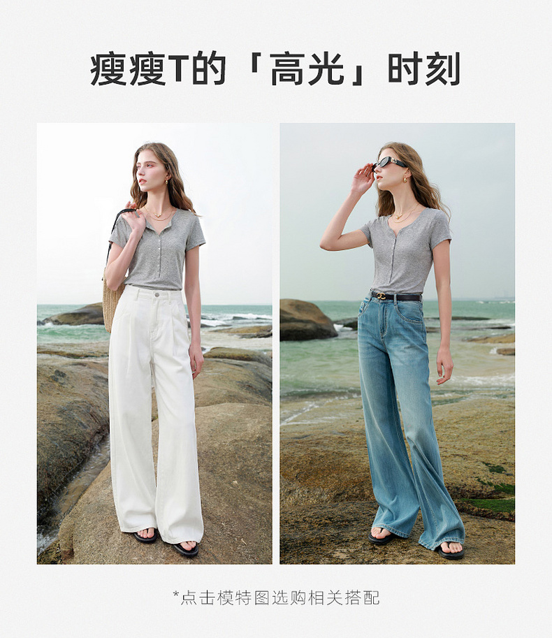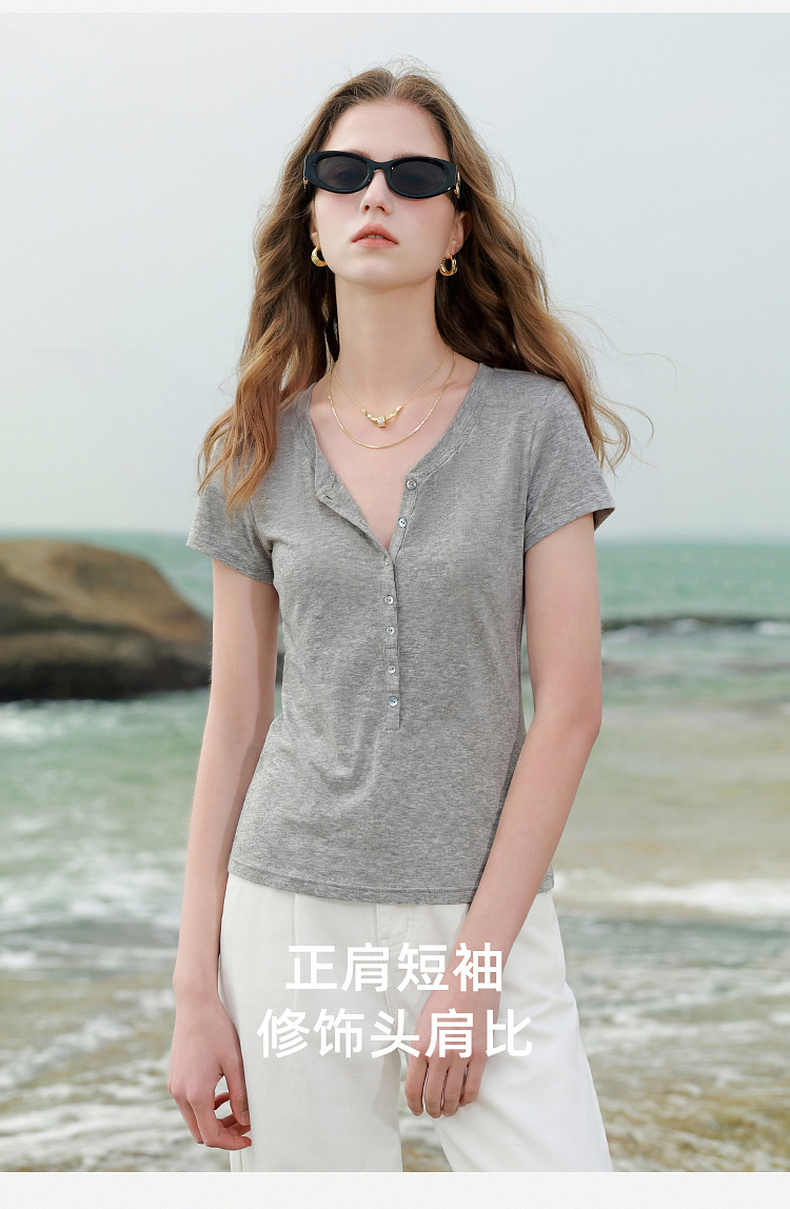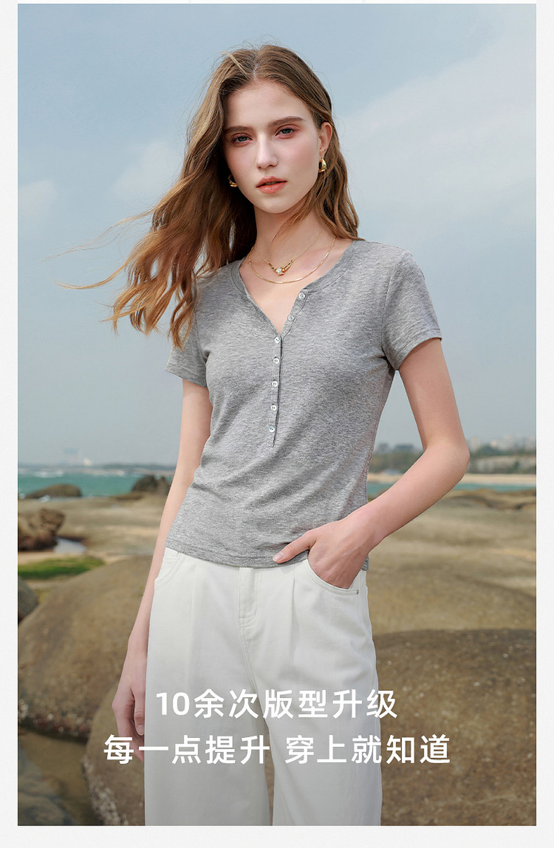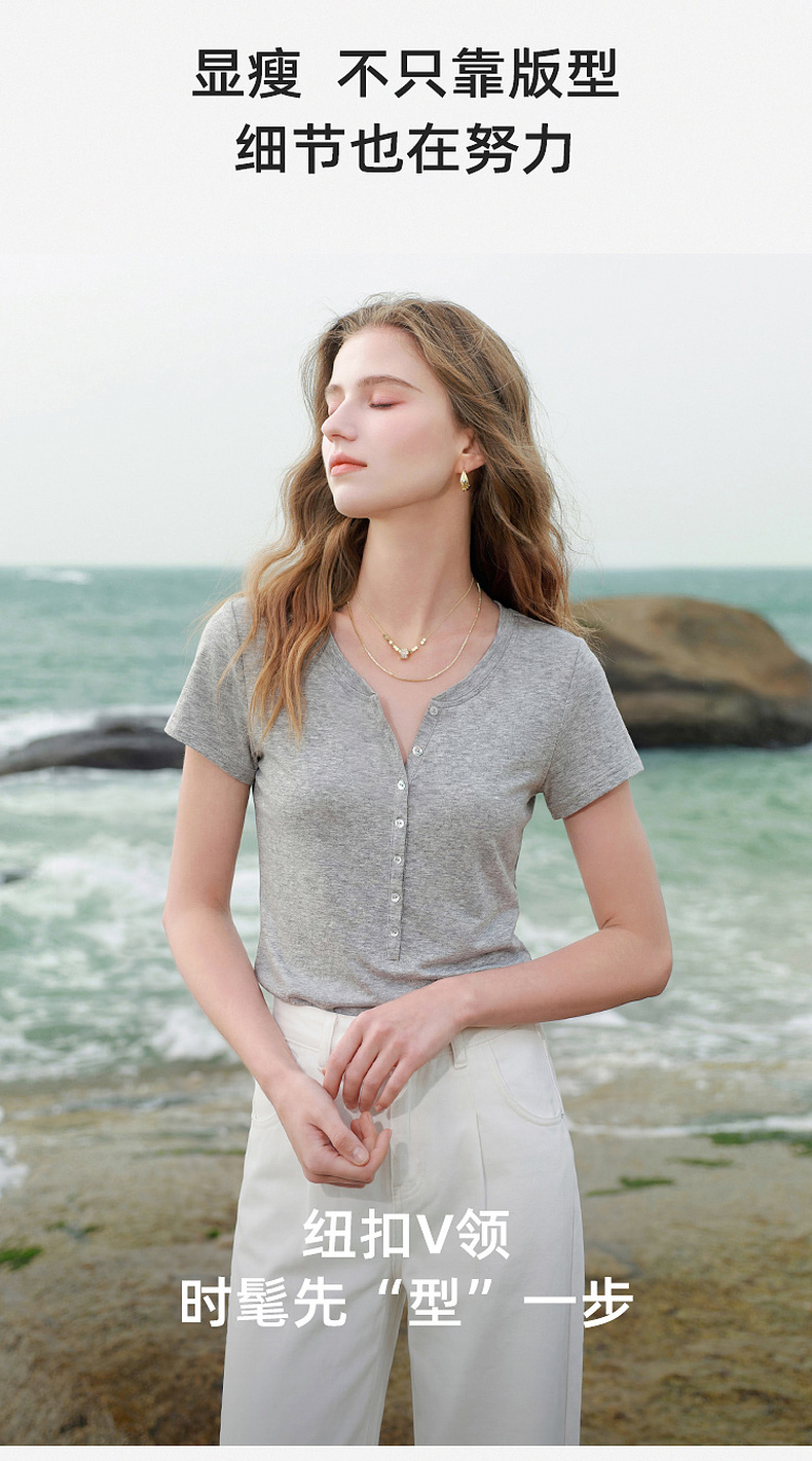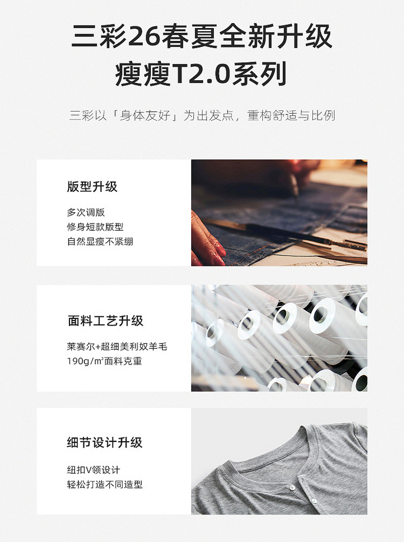 【瘦瘦T】三彩2026春季新款莱赛尔短袖T恤套头上衣修身短款显瘦M