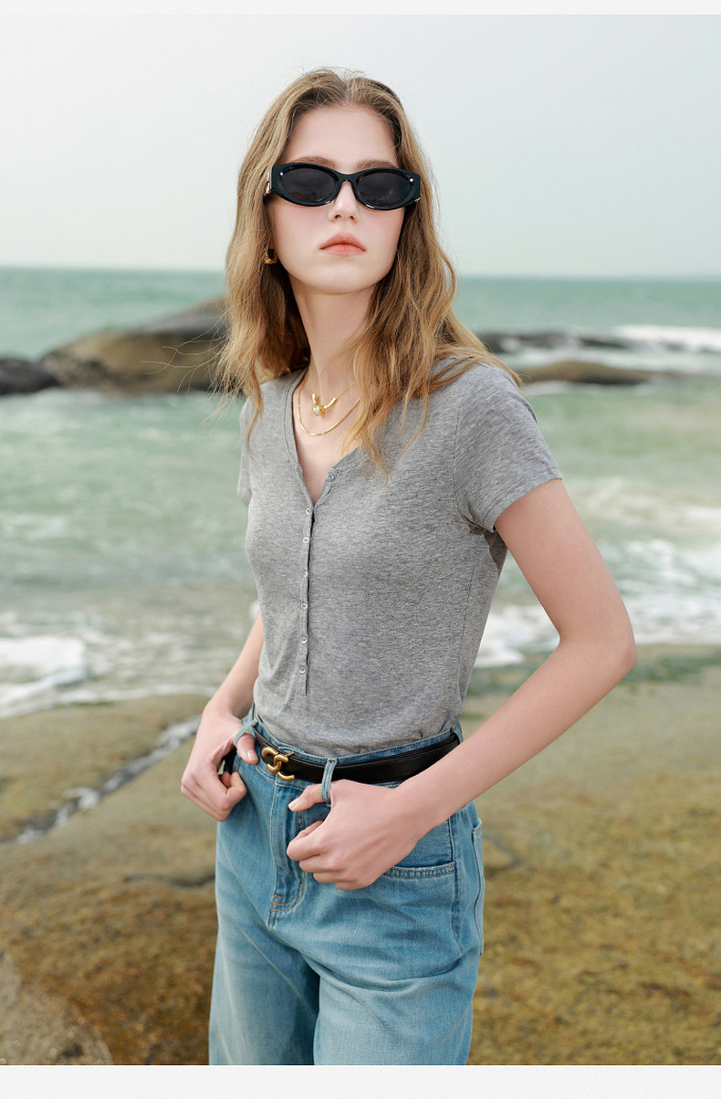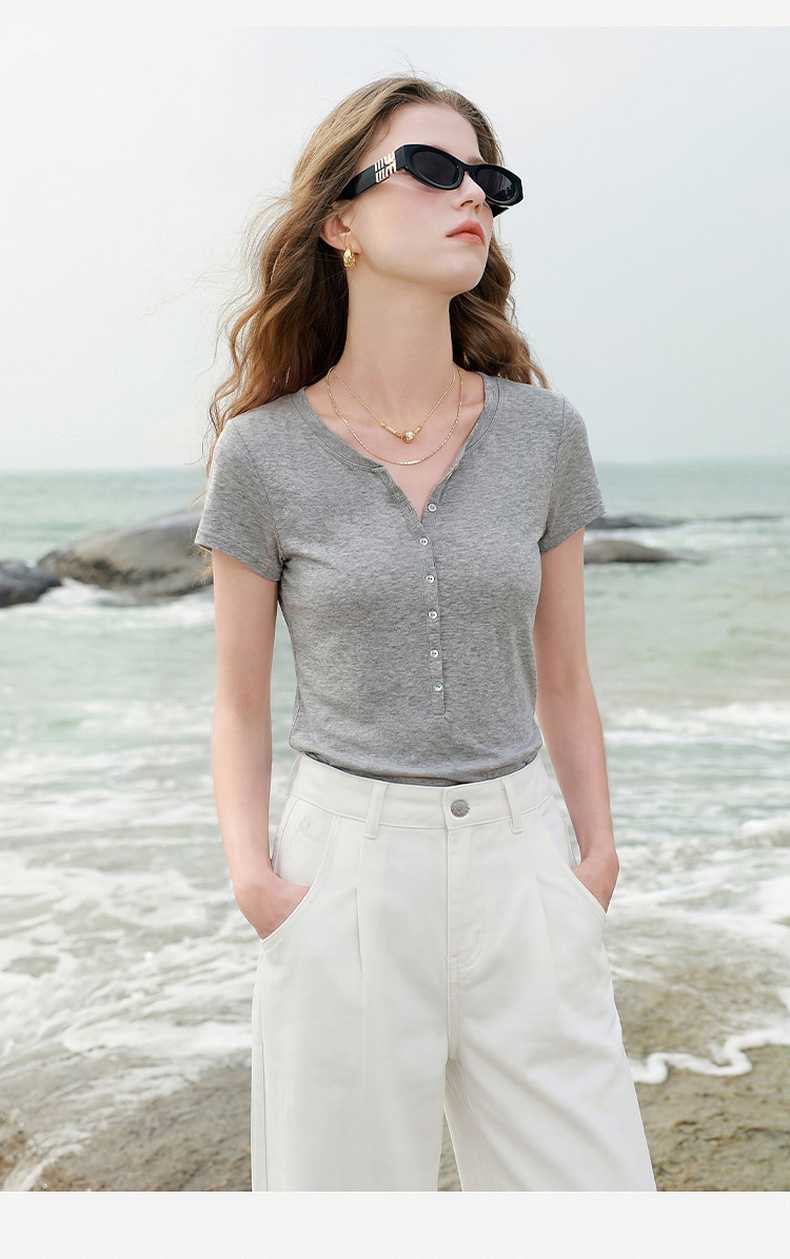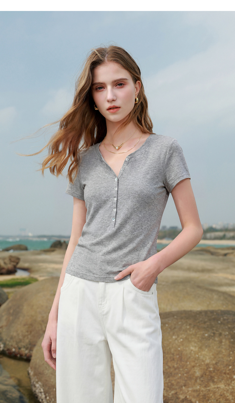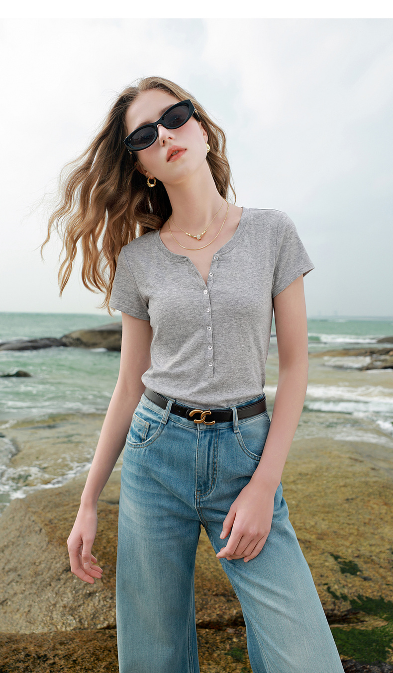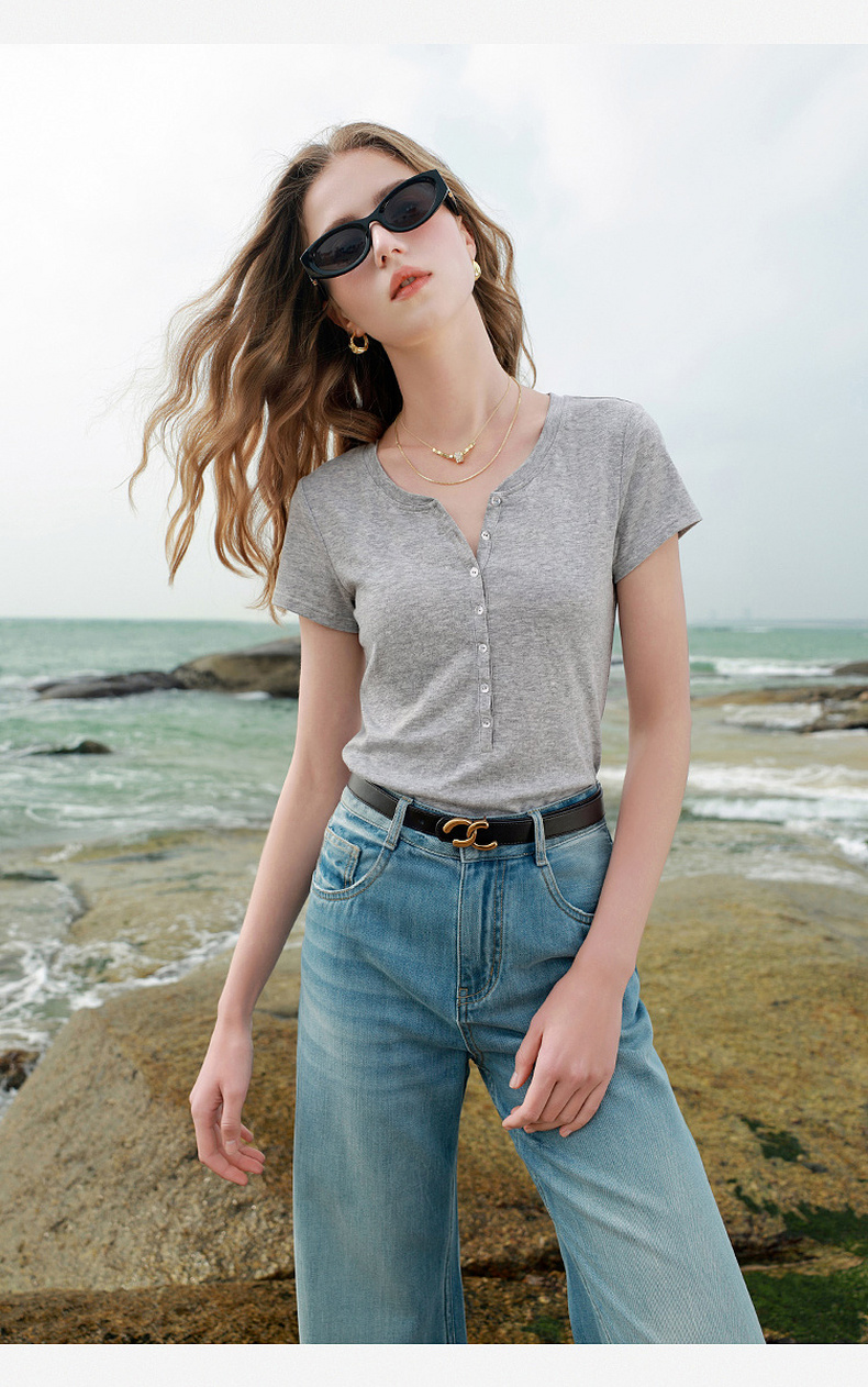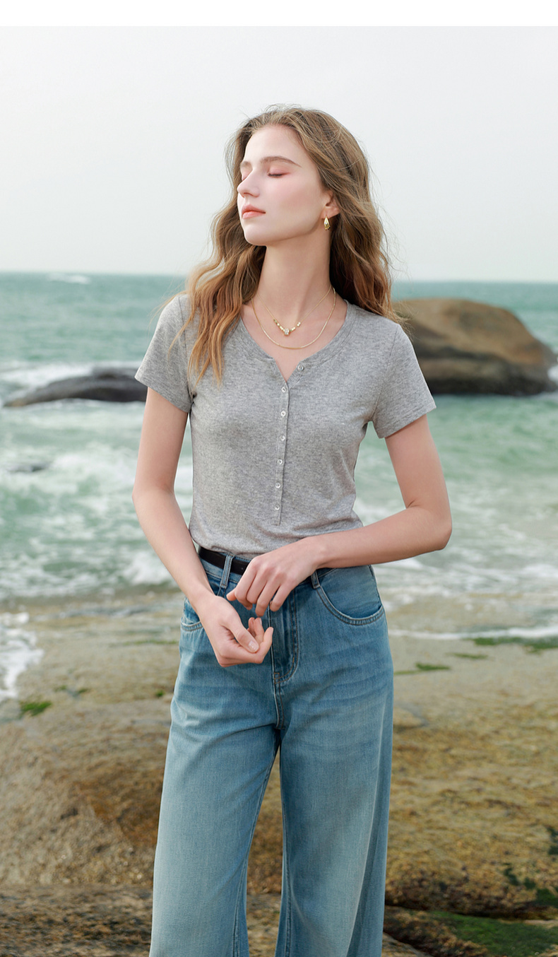 【瘦瘦T】三彩2026春季新款莱赛尔短袖T恤套头上衣修身短款显瘦M