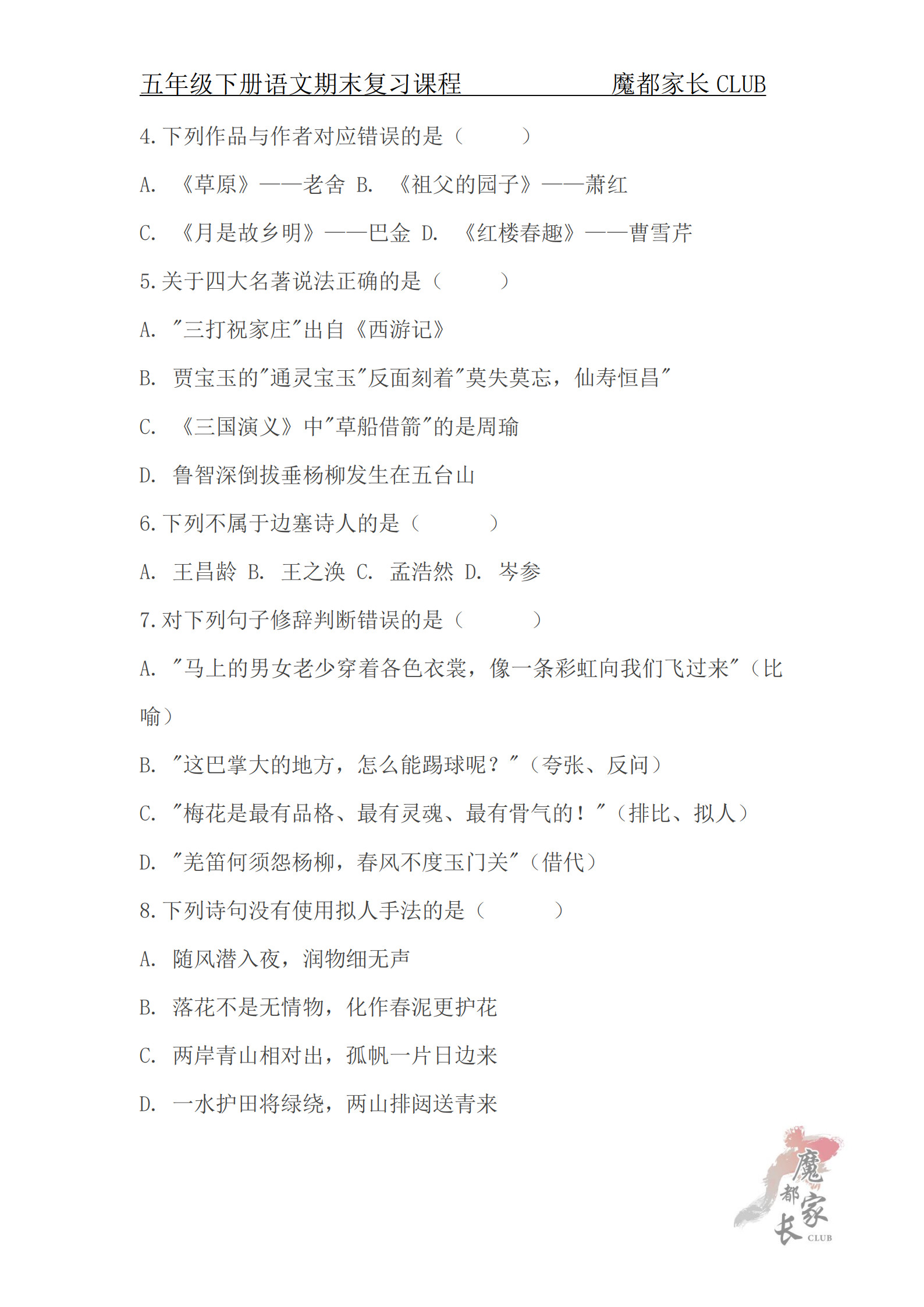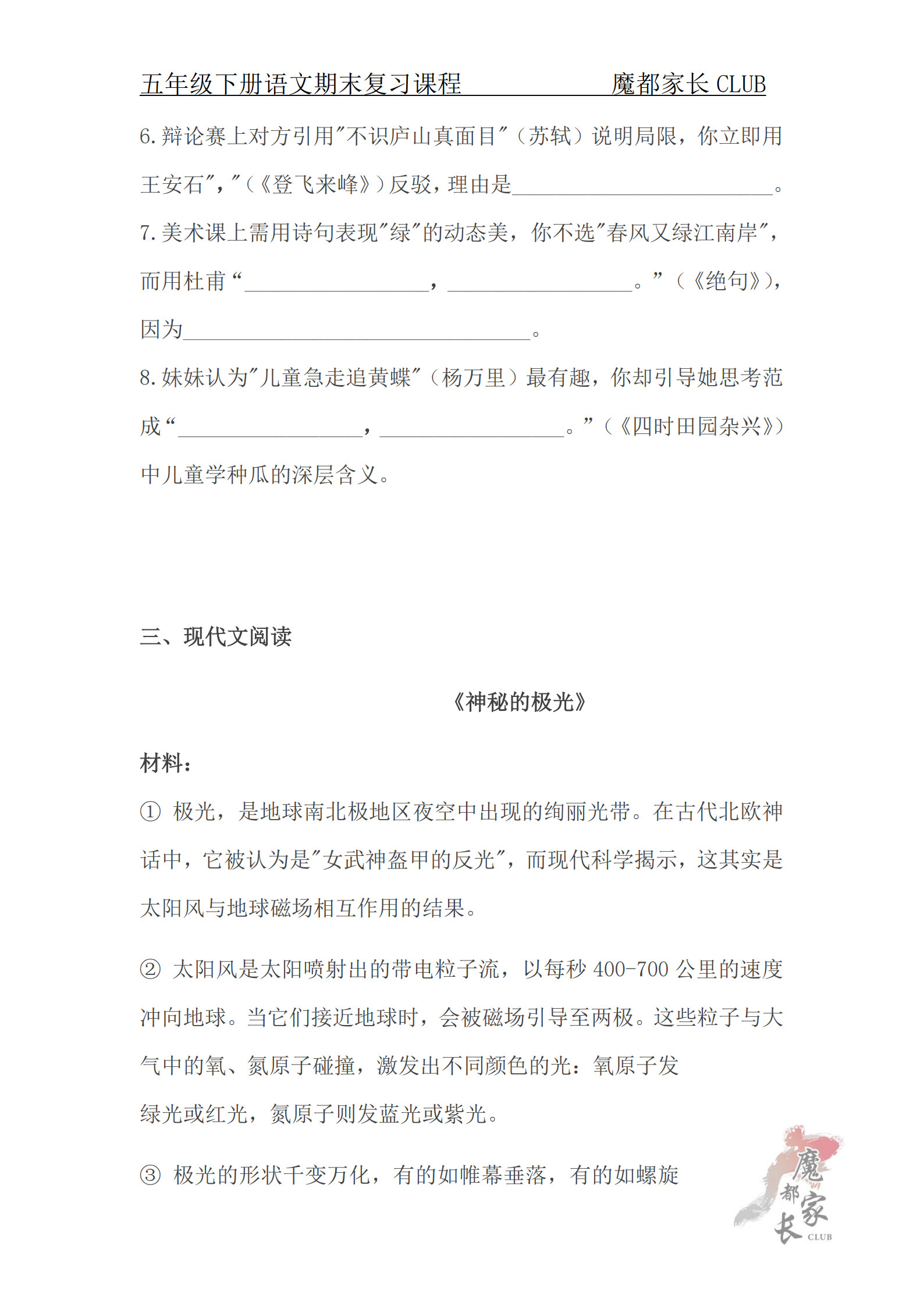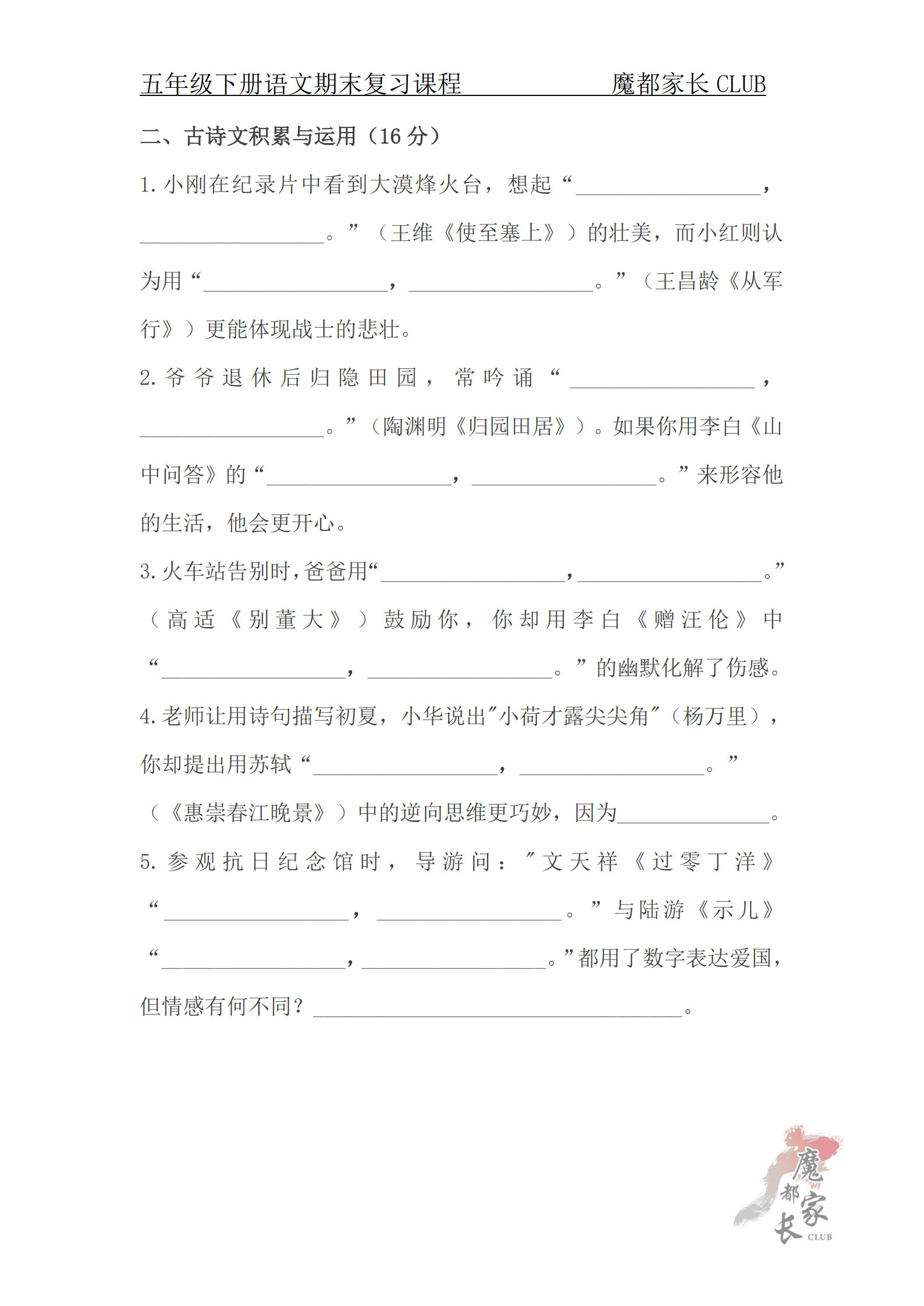 根据新教材,总结归纳本学期知识重点和难点,着重复习基础字词、古诗/古文、阅读三大块内容,总结答题技巧,提供针对性练习