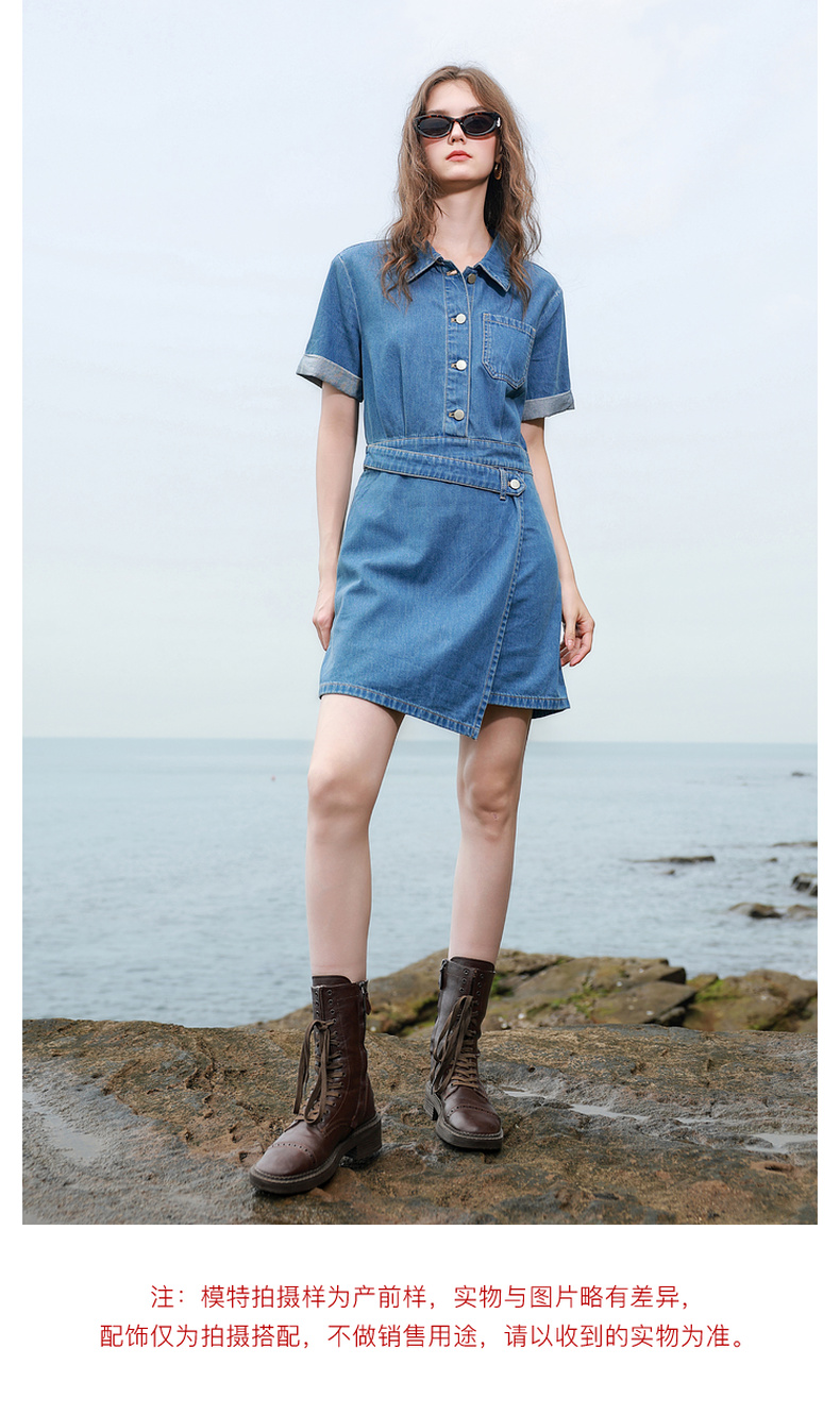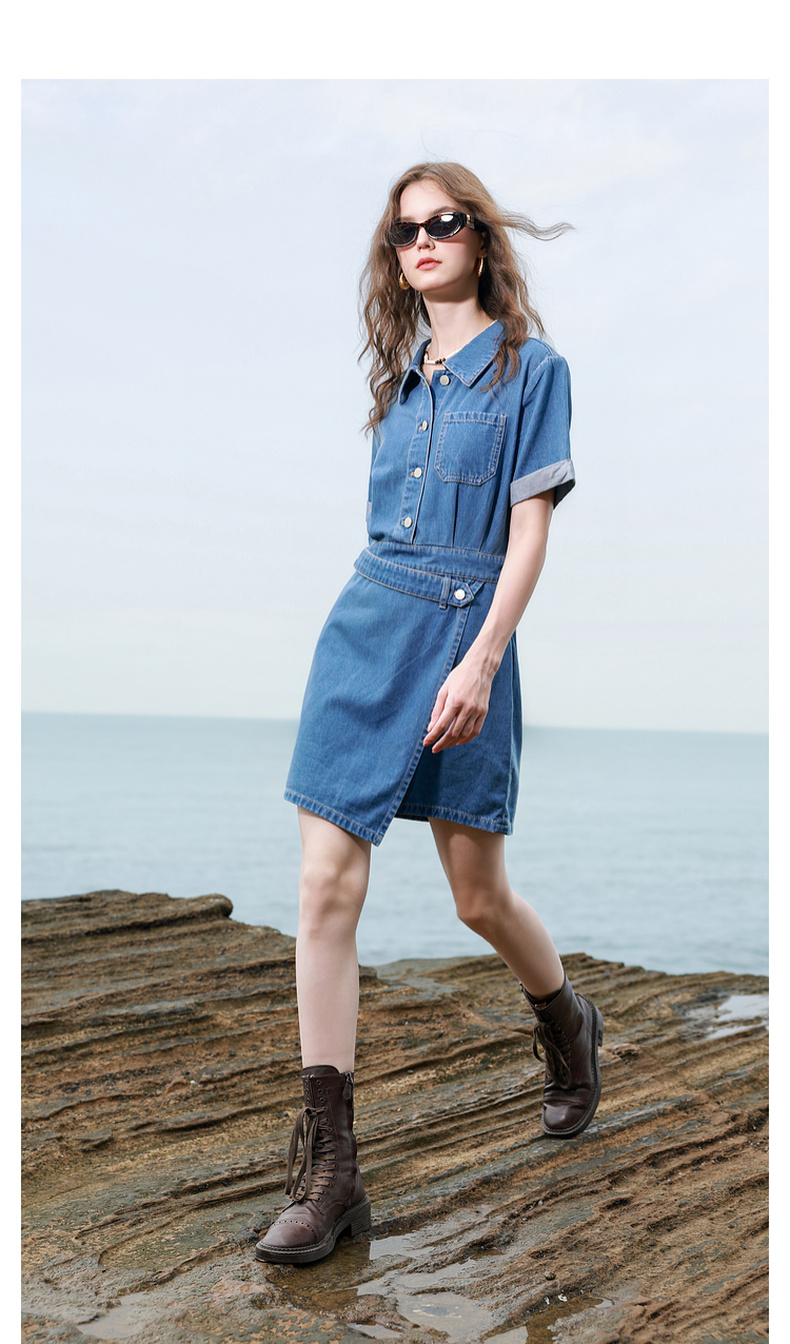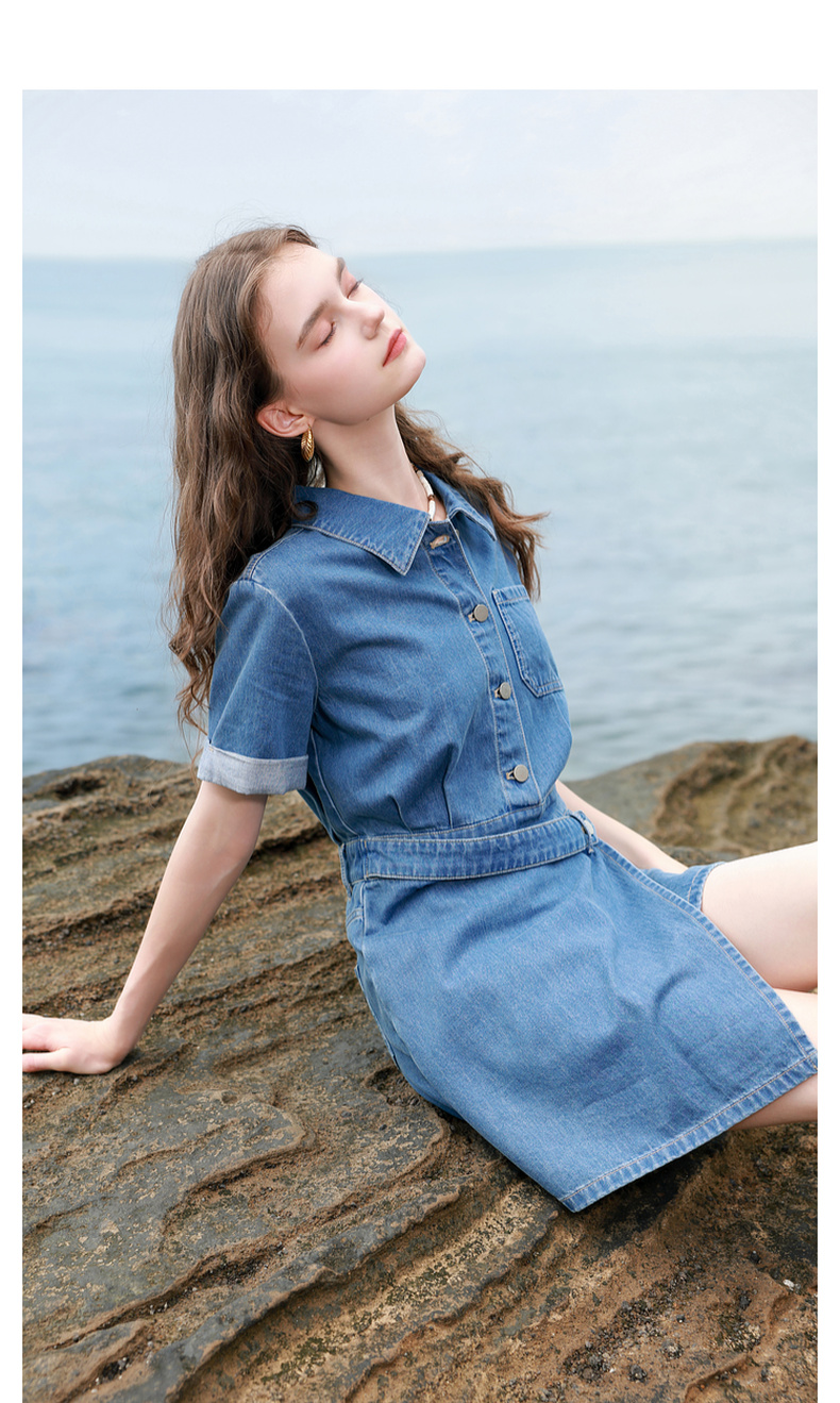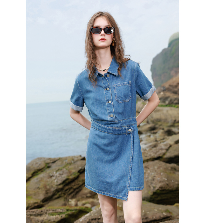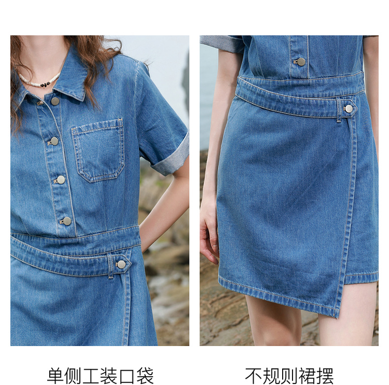 三彩独醒2025夏季新款纯棉短袖牛仔裙连衣裙收腰A字裙甜酷F