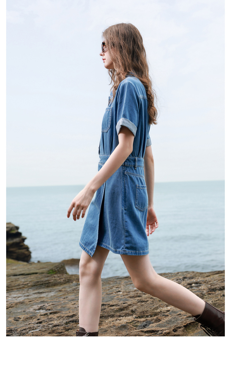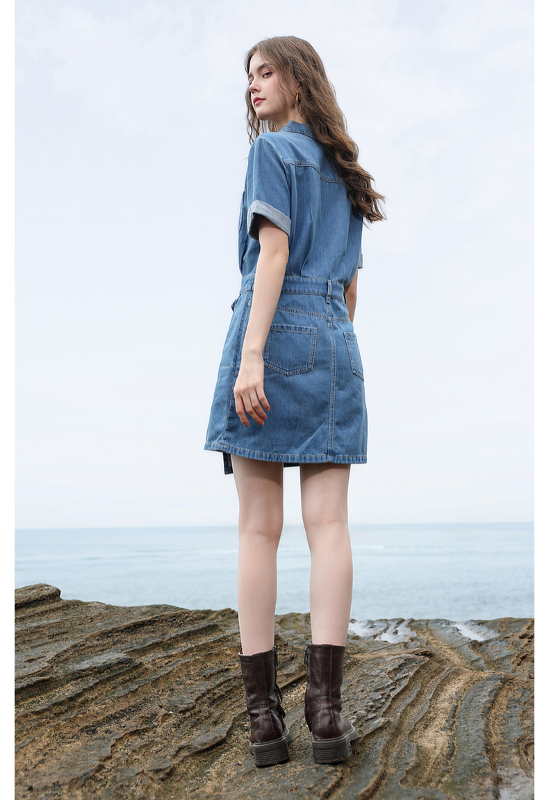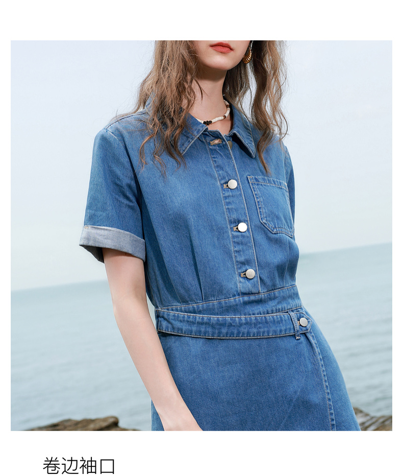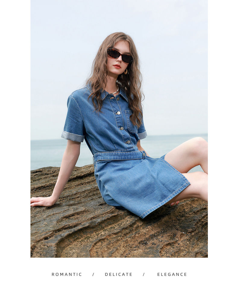三彩独醒2025夏季新款纯棉短袖牛仔裙连衣裙收腰A字裙甜酷F