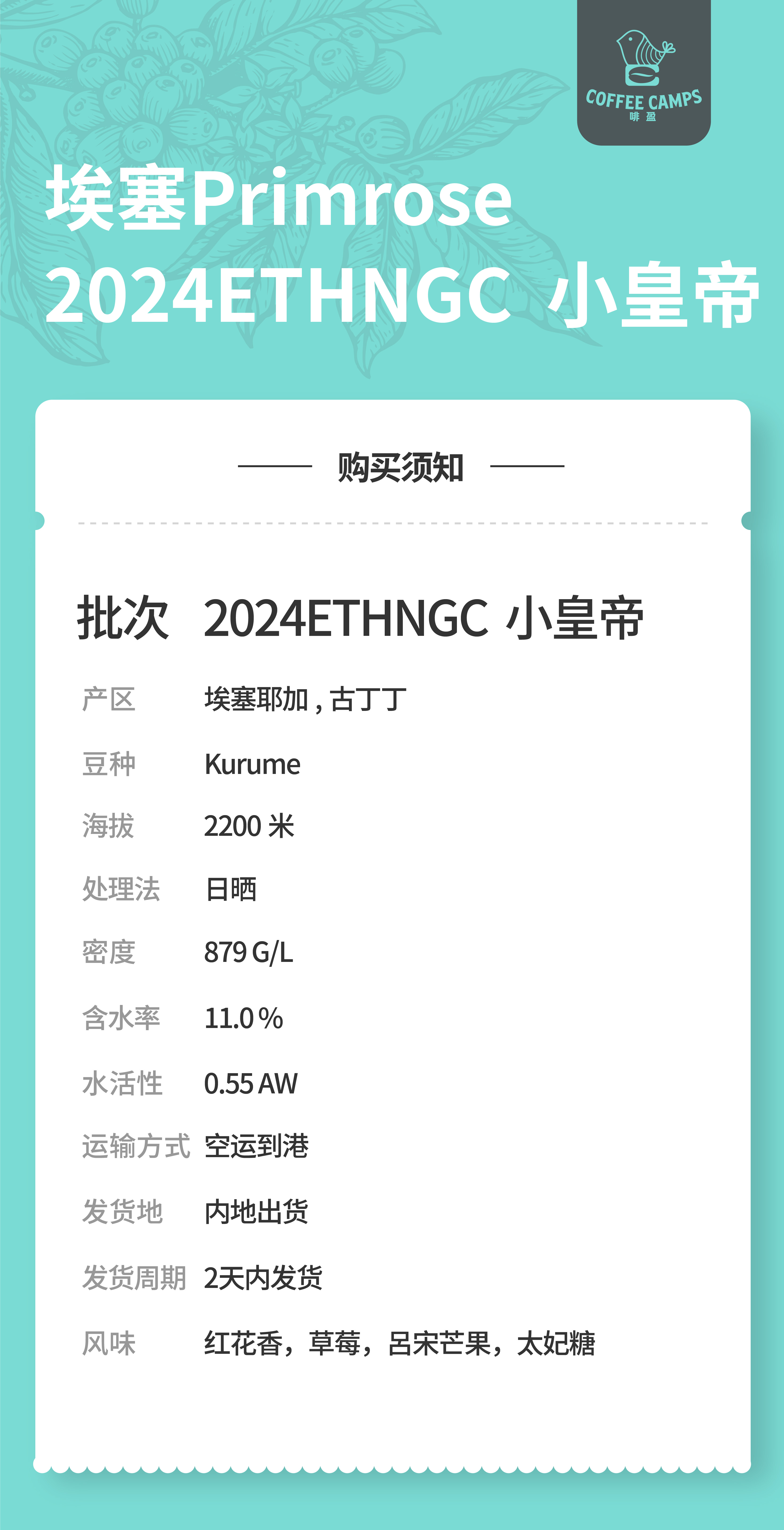 24产季独家 埃塞 Primrose 2024ETHNGC 小皇帝 日晒(生豆)空运批次