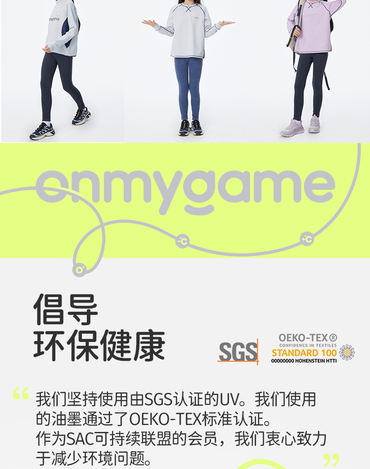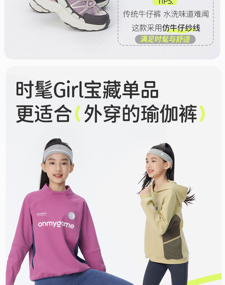 onmygame儿童专业运动品牌男女童款耐脏不易皱,柔软但不软踏