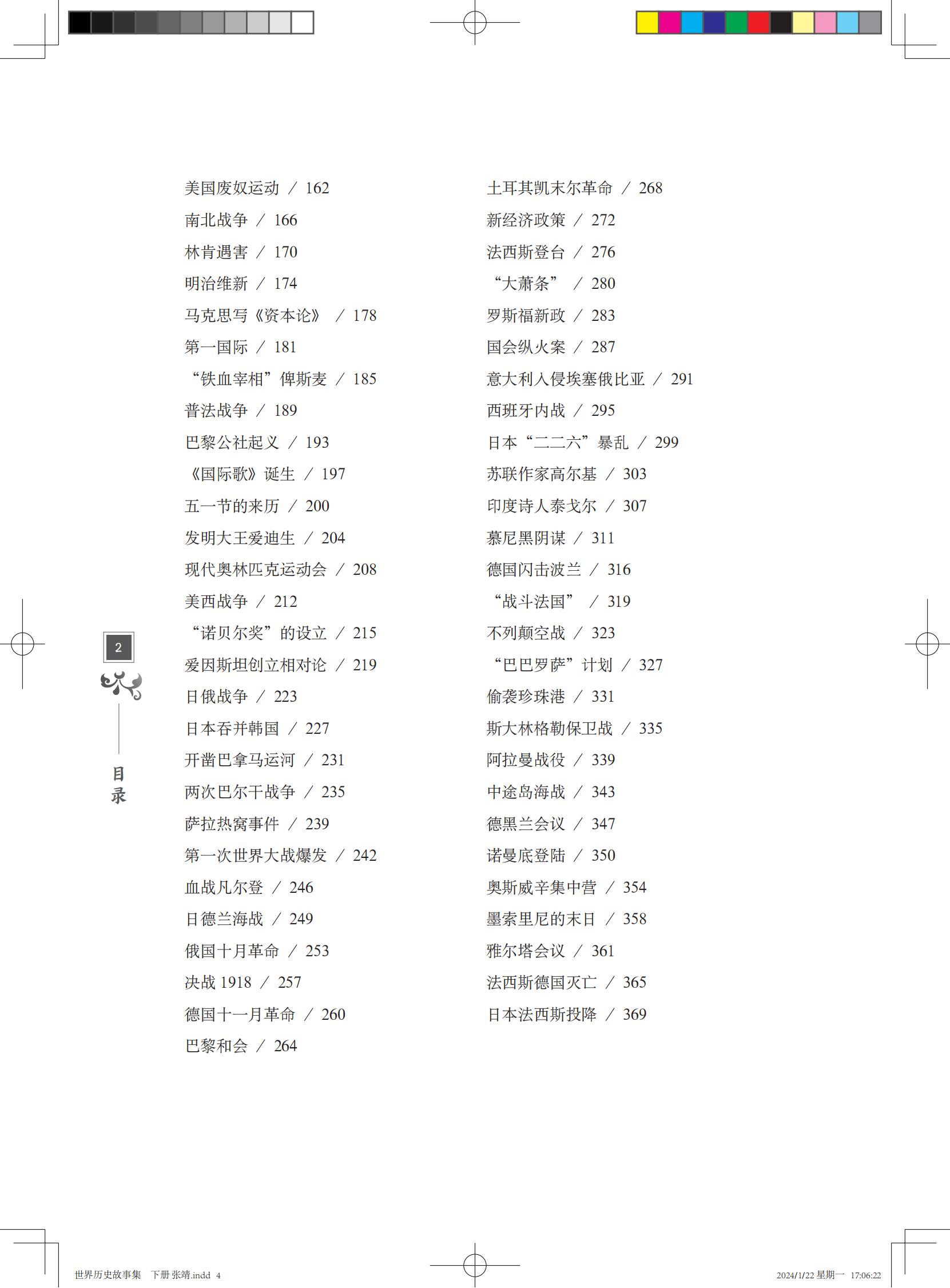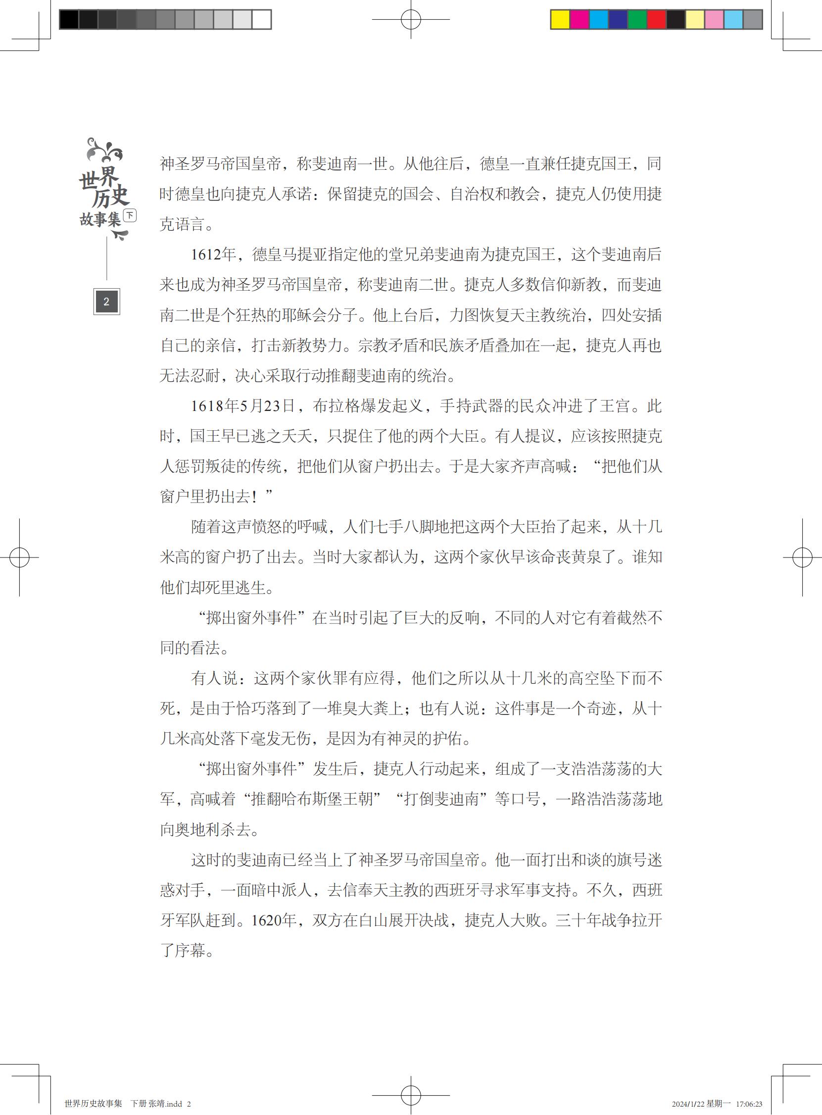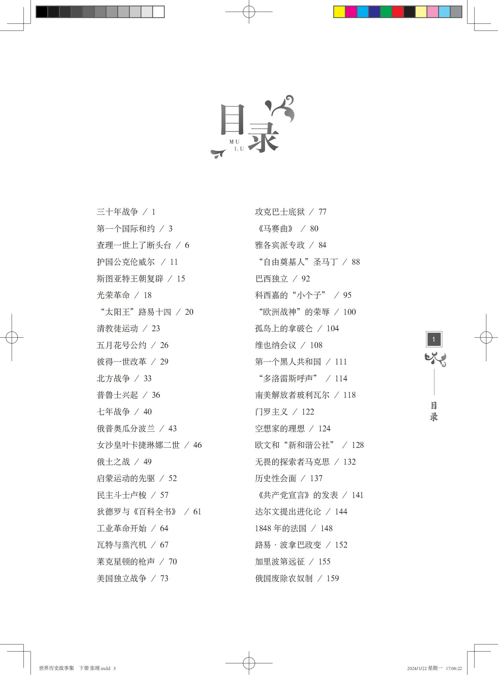 这是一套三卷本的《世界历史故事集》,从远古时代开始讲起,一直讲到“二战”结束,共230多个故事,内容涵盖政治、军事、经济、文化、科技、社会等各方面,语言流畅,叙事清楚;书前附有精美彩插;随书还附赠近千道世界历史测试题,方便读者检验阅读成果。