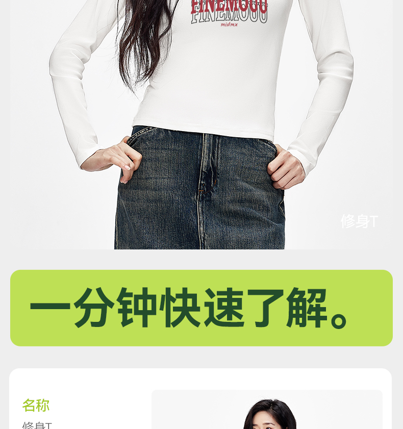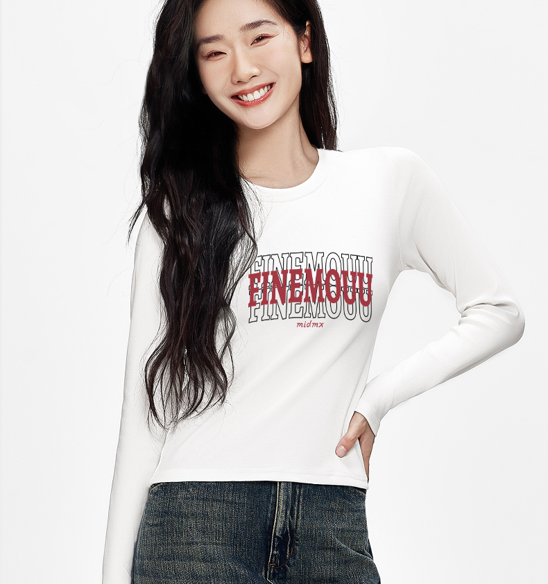 「棉的美学」秋冬内搭柔软打底衫T恤女印花经典软糯舒适修身长袖