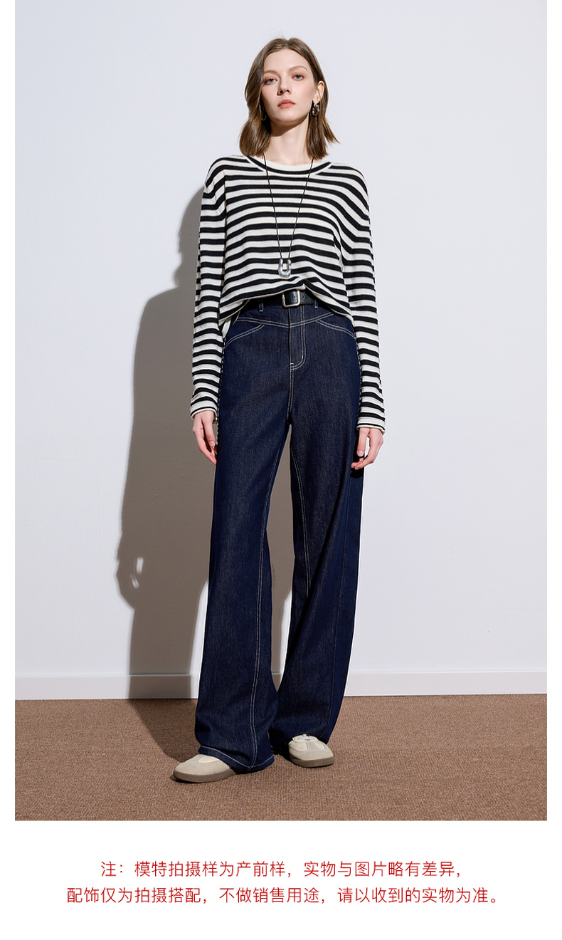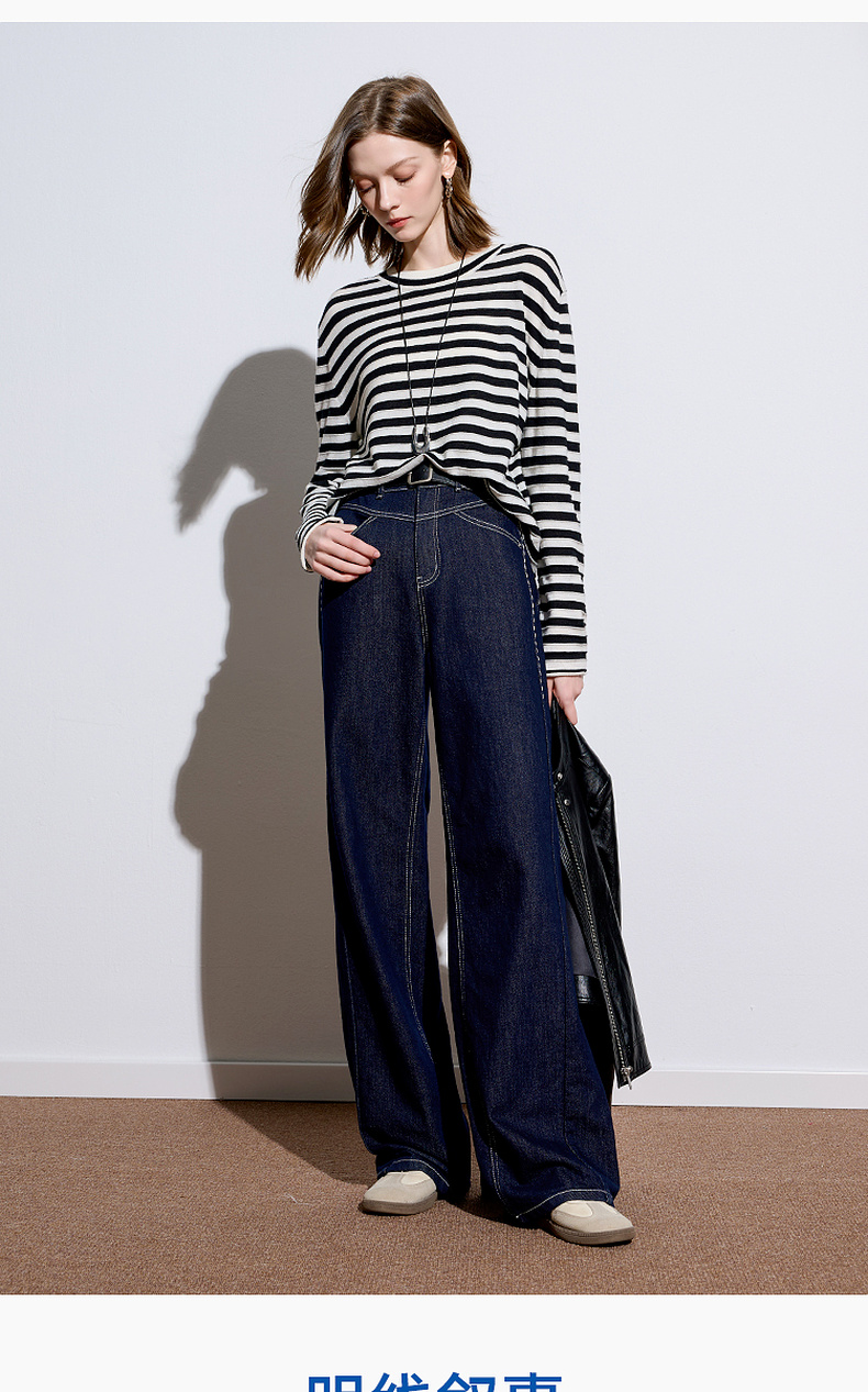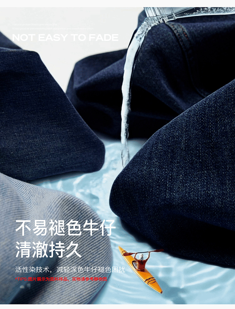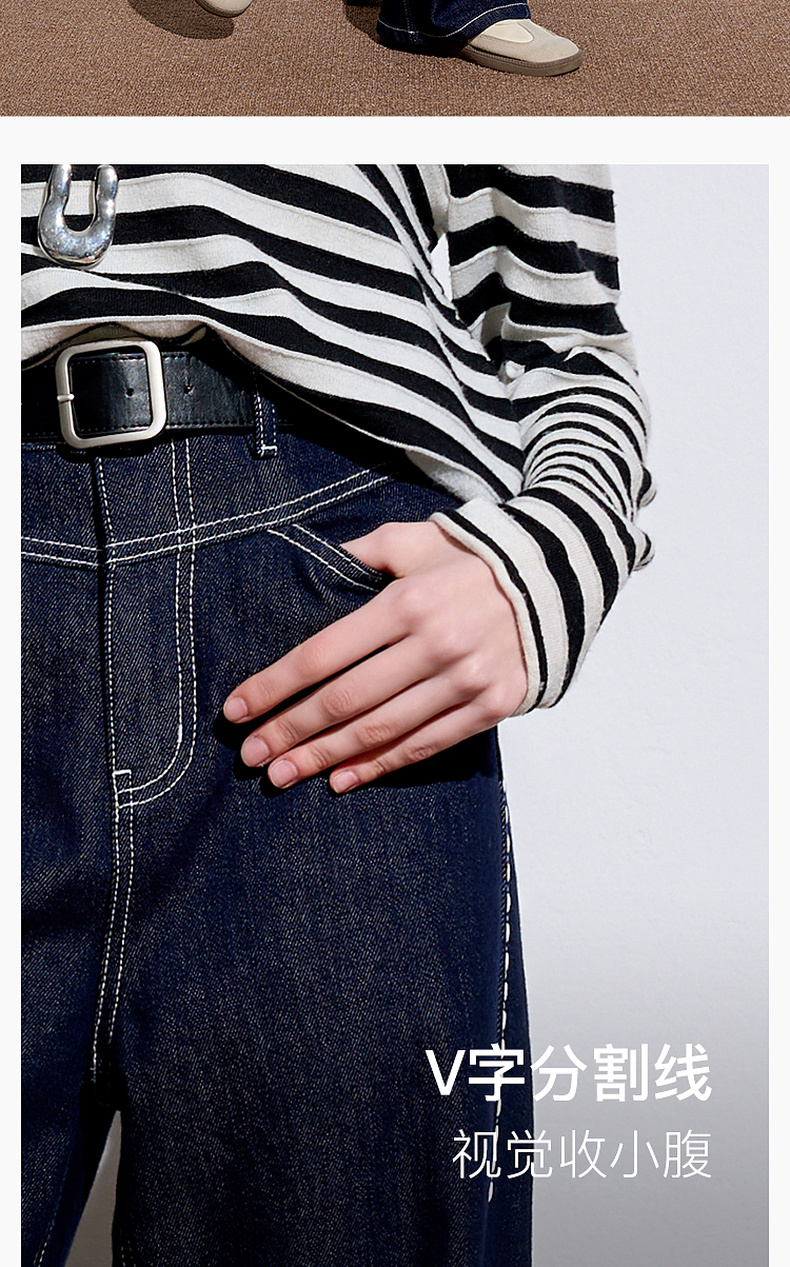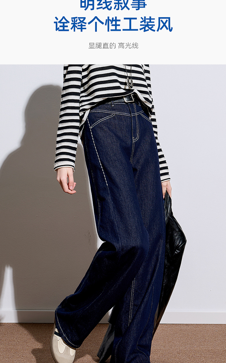 【防褪色牛仔】三彩2025秋季新款休闲撞色明线直筒裤长裤M