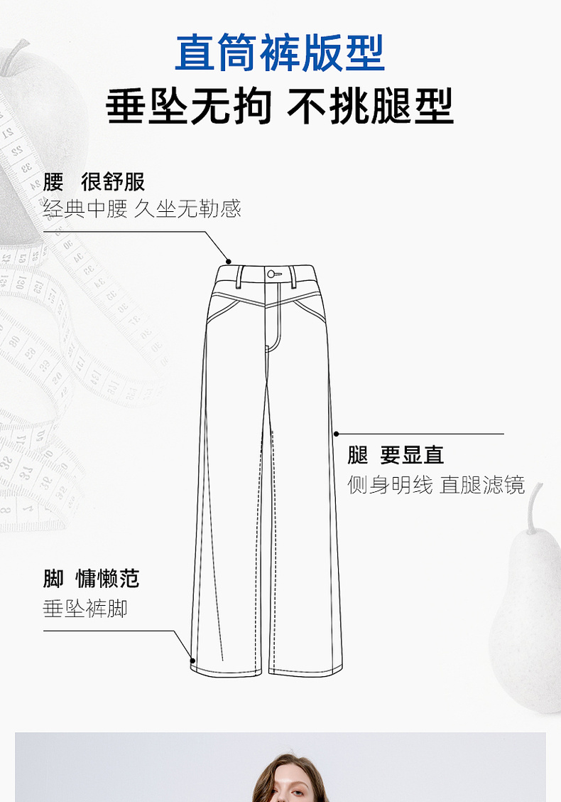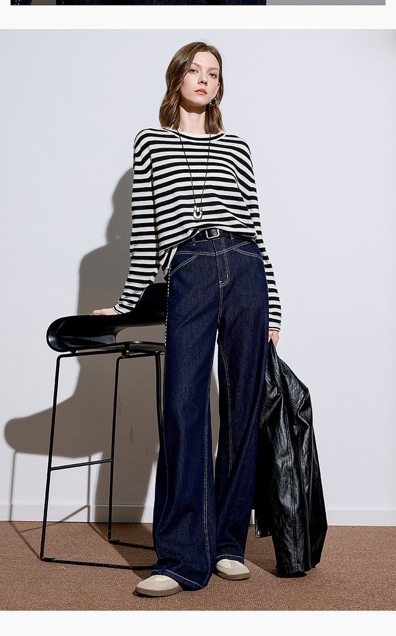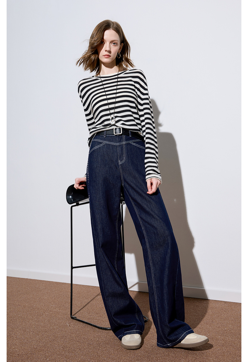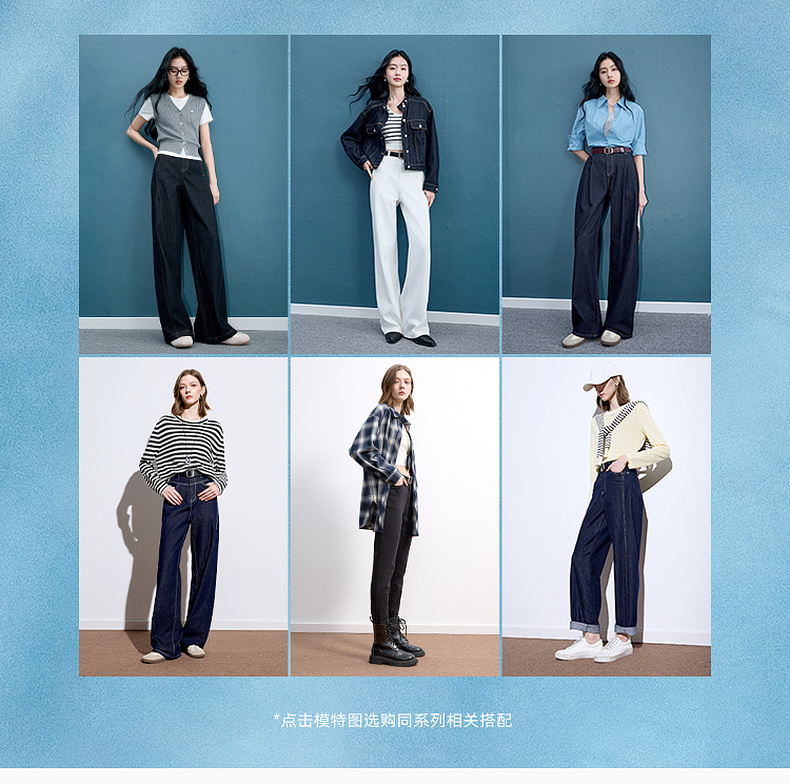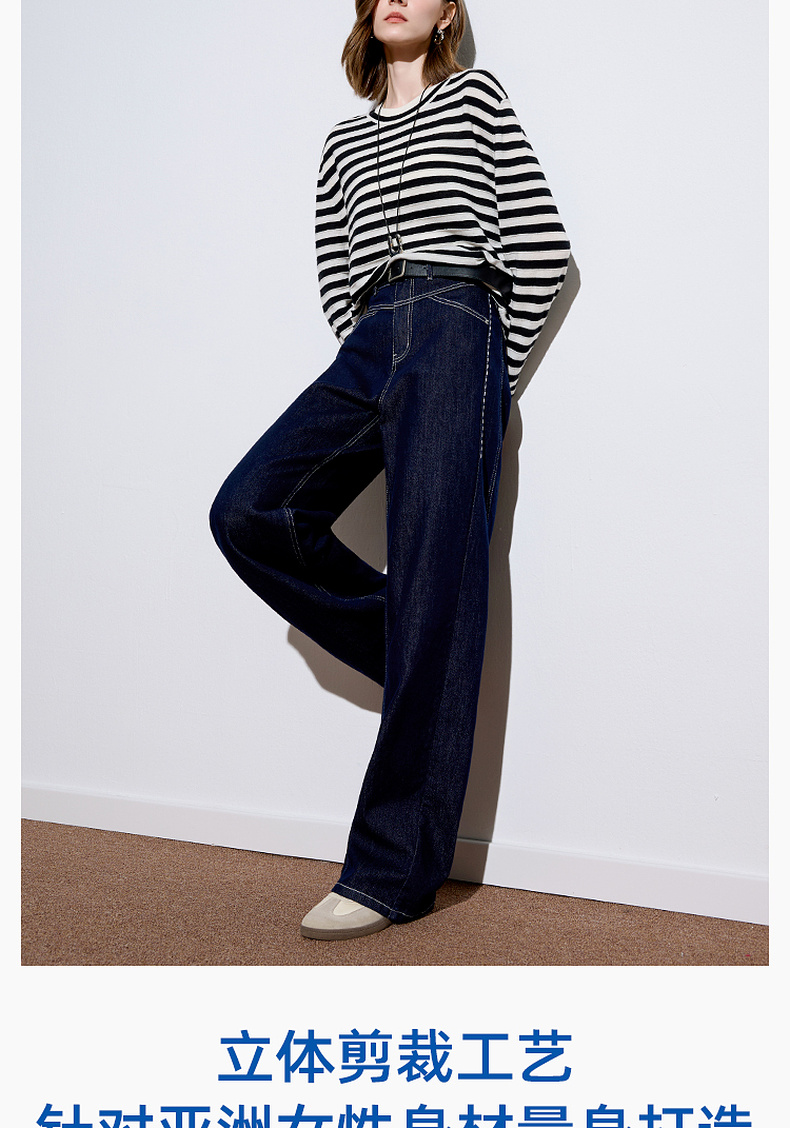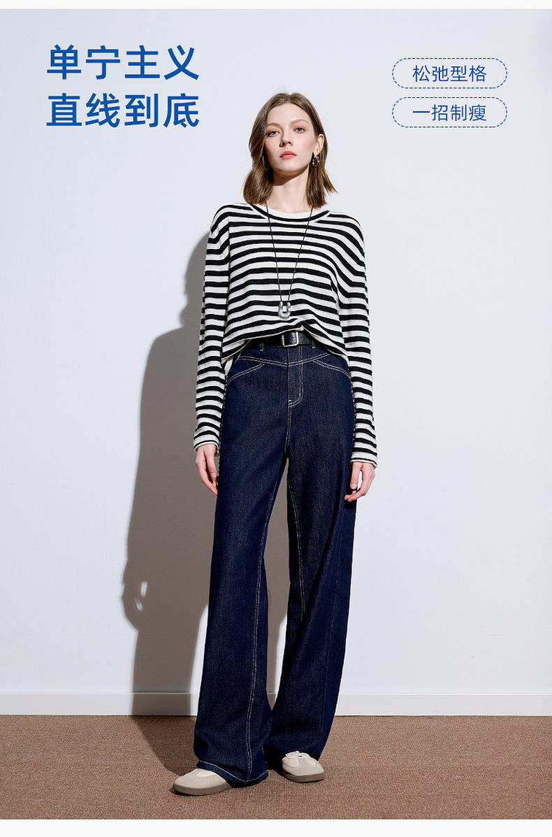 【防褪色牛仔】三彩2025秋季新款休闲撞色明线直筒裤长裤M