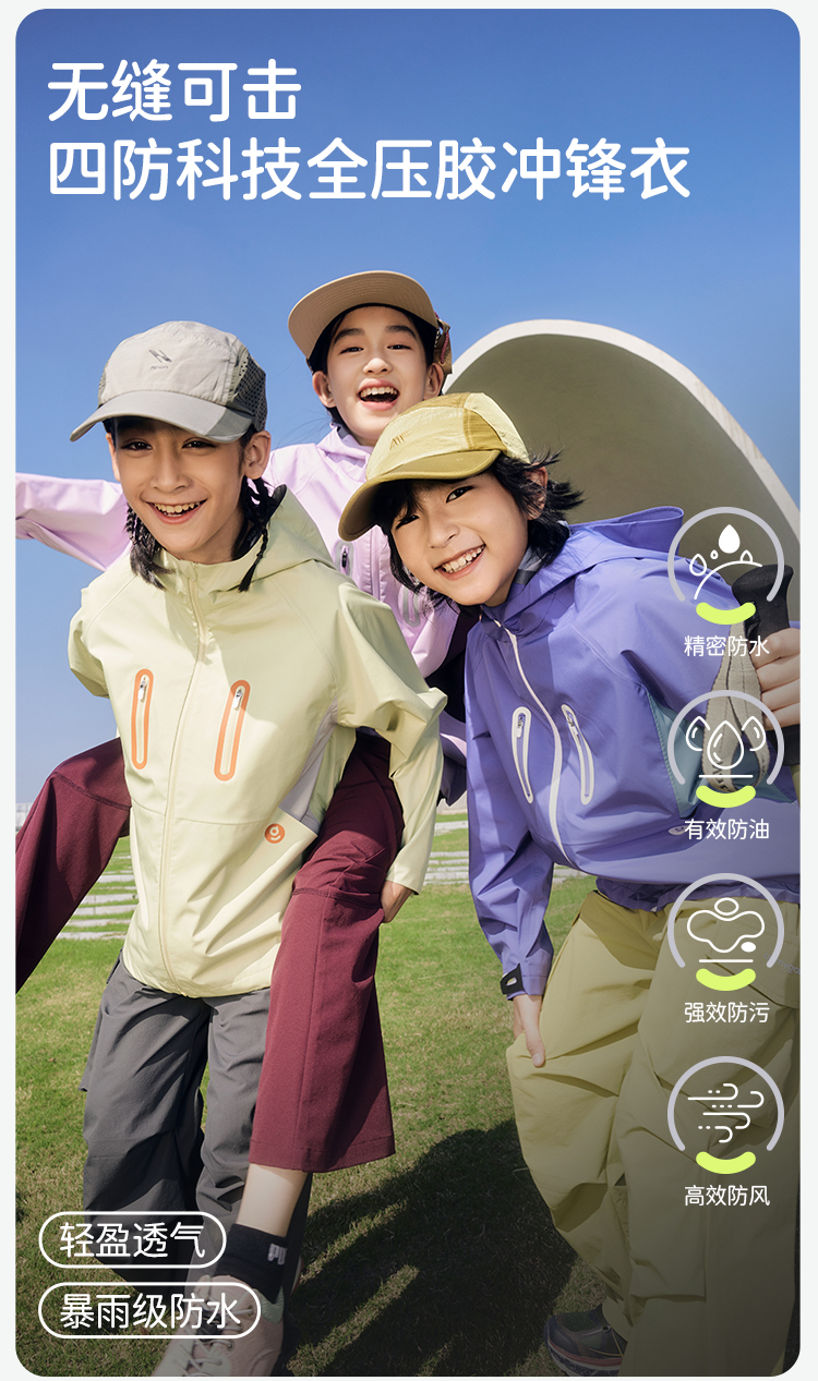 onmygame【无缝可击】男女童冲锋衣2025新款儿童三防运动春季外套