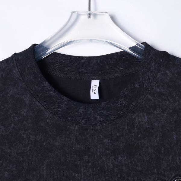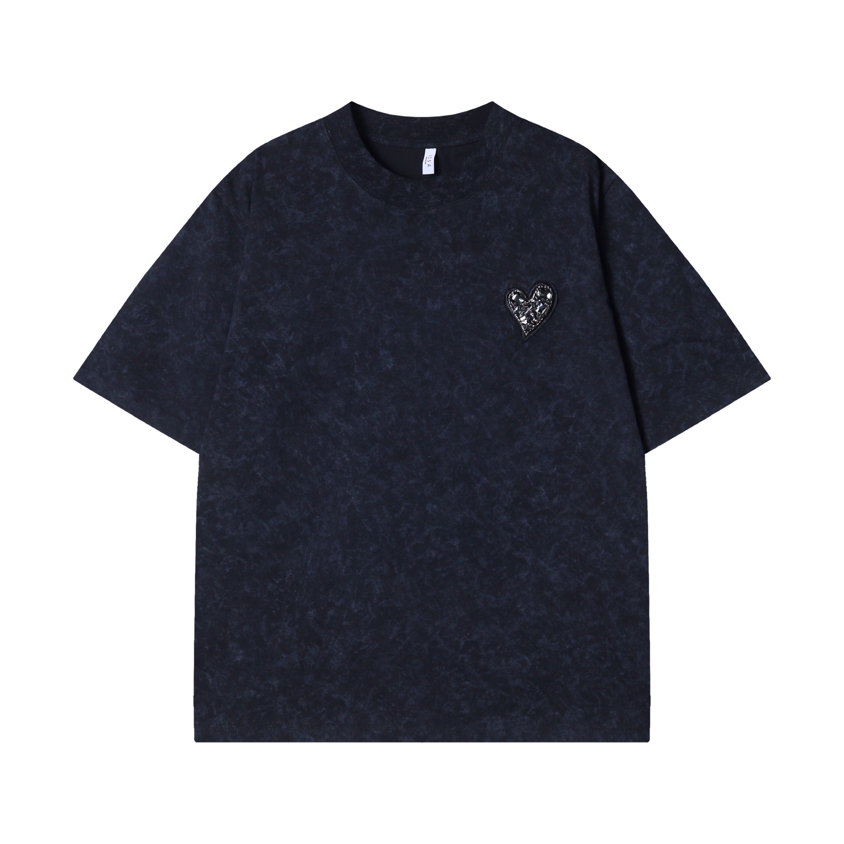 T2302早春新款时尚个性韩版扎染爱心烫钻圆领半袖T恤百搭情侣套头上衣