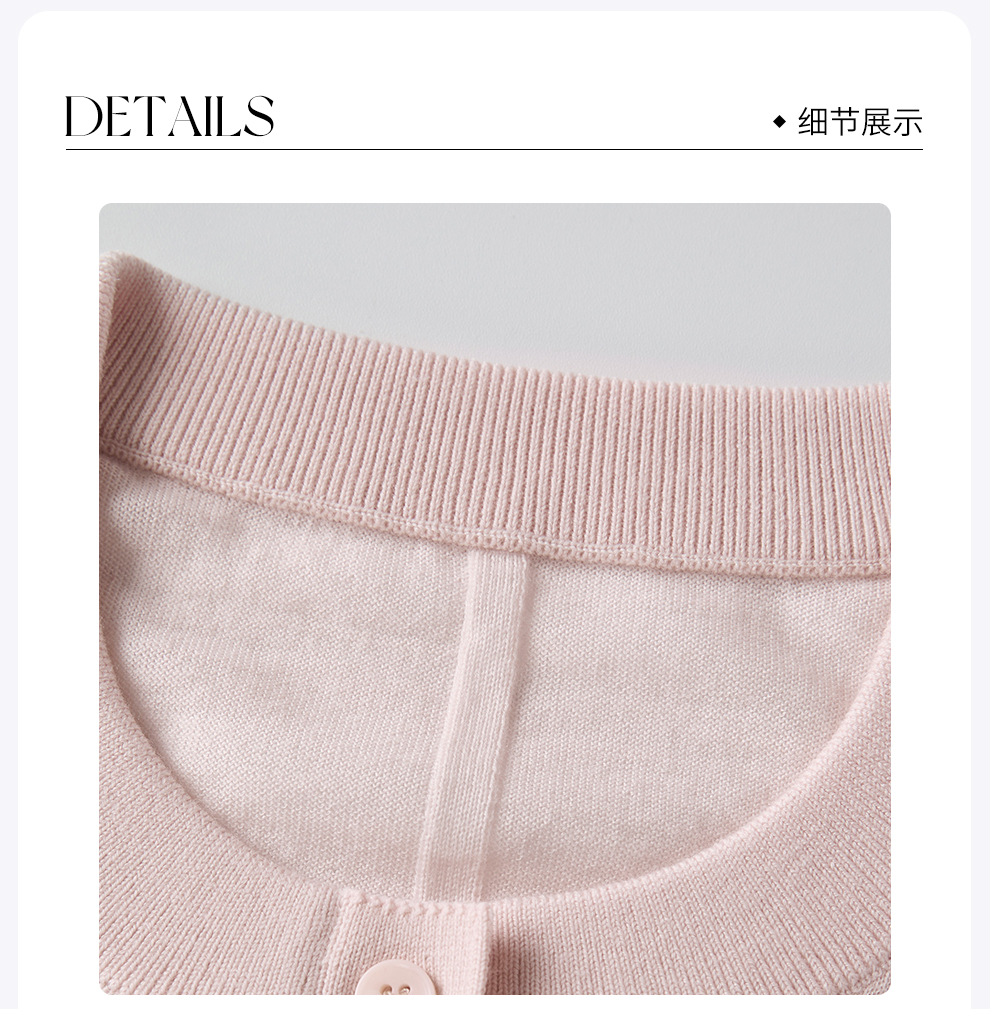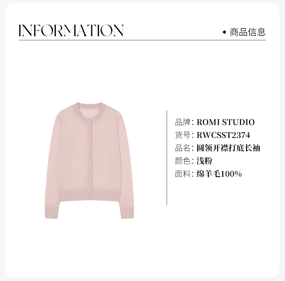 ROMI STUDIO 100%可机洗绵羊毛花纱粉色轻薄针织开衫 RWCSST2374