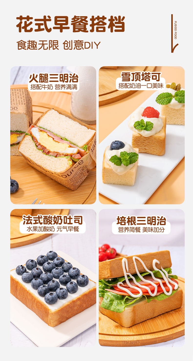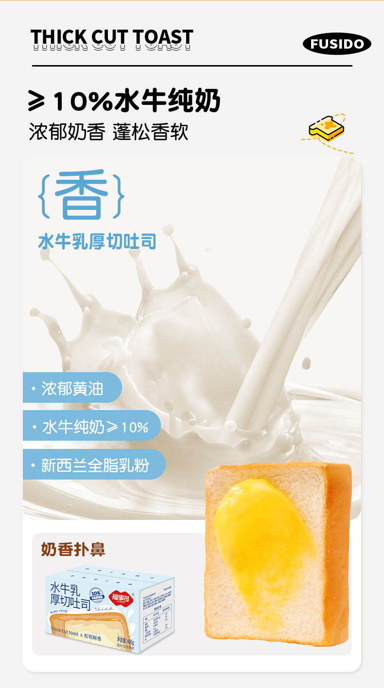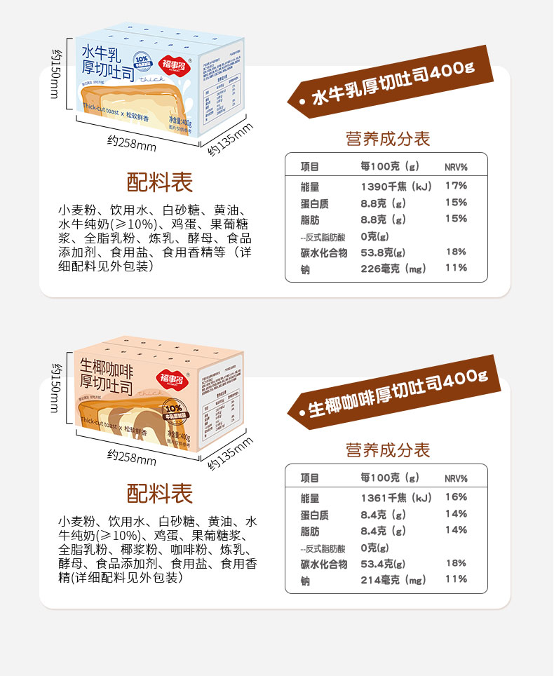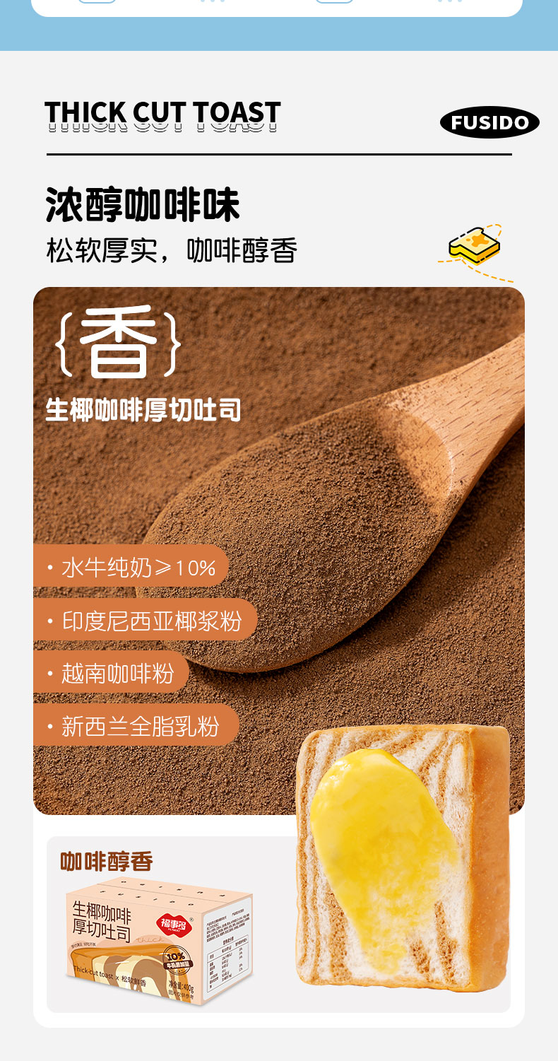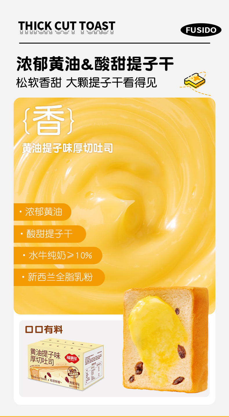 福事多水牛乳味+黄油提子味+生椰咖啡味厚切吐司400g*3箱