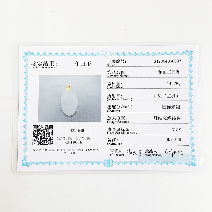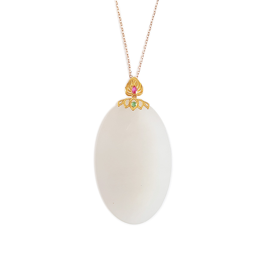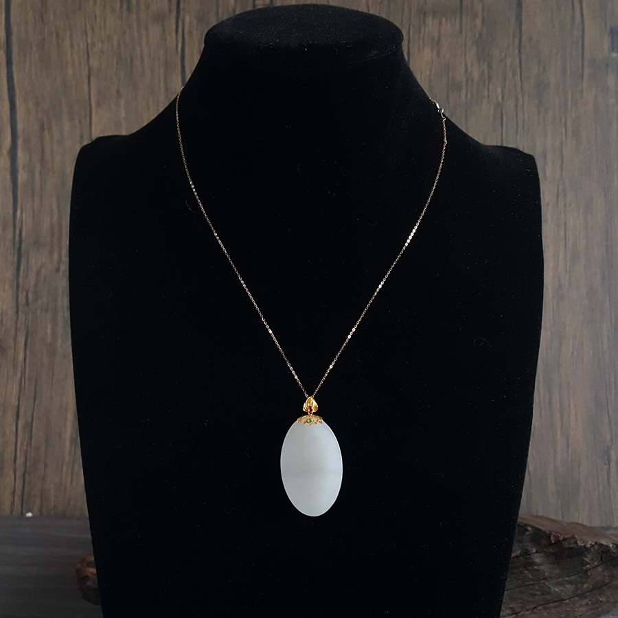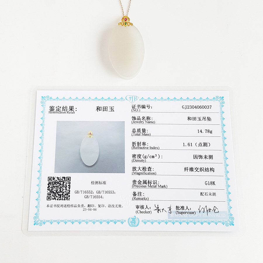 【天然正品】天然青海料椭圆型和田玉AU750黄金吊坠项链46.2*24.5*6.7MM(皆取最大值)160124XY26特价