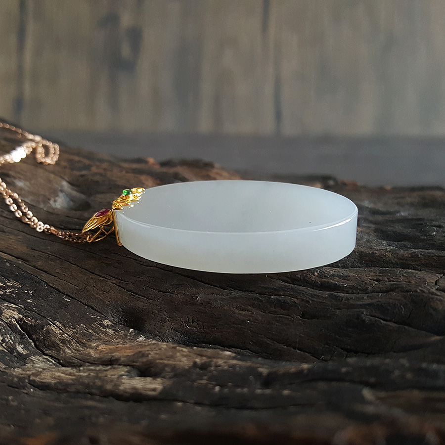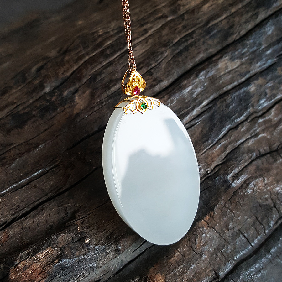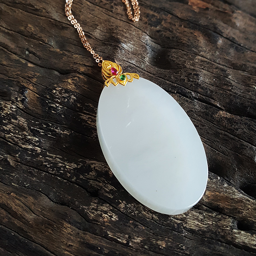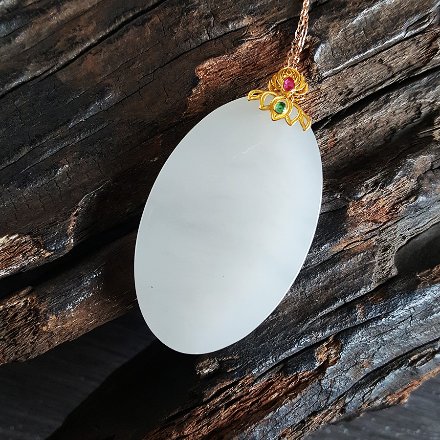 【天然正品】天然青海料椭圆型和田玉AU750黄金吊坠项链46.2*24.5*6.7MM(皆取最大值)160124XY26特价