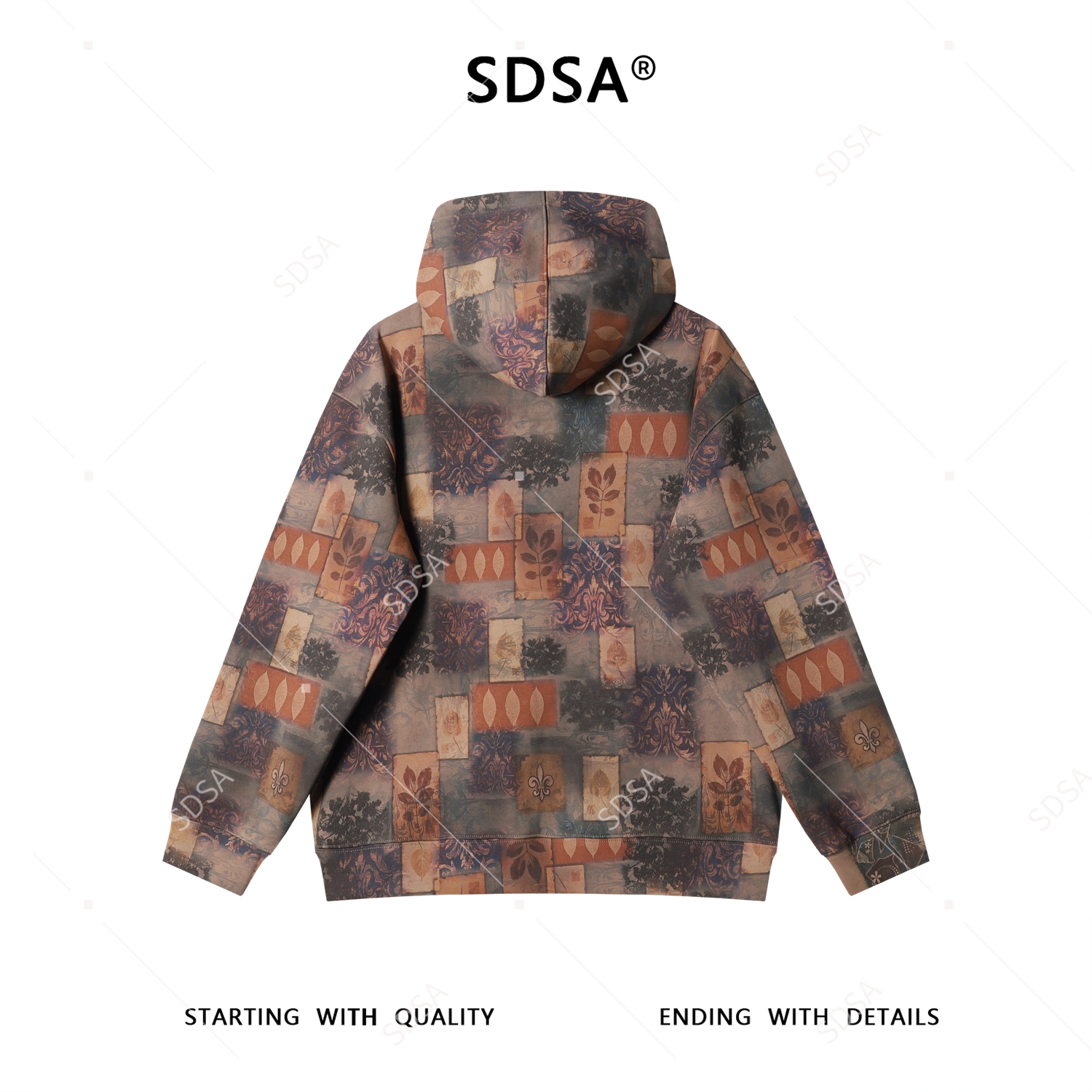 SDSA男士秋冬新款痞帅男装撞色扎染植物花卉连帽卫衣宽松百搭上衣