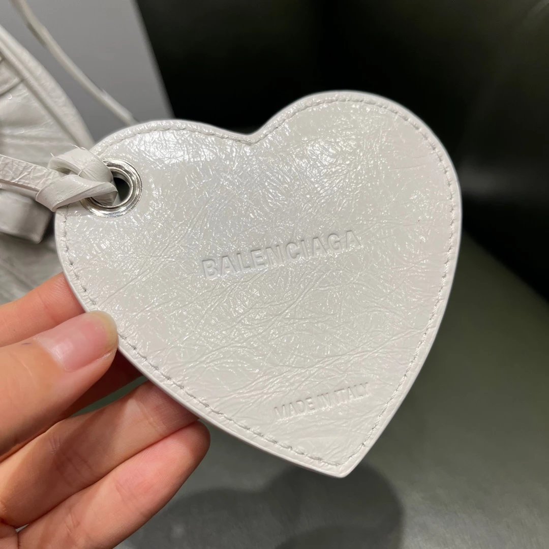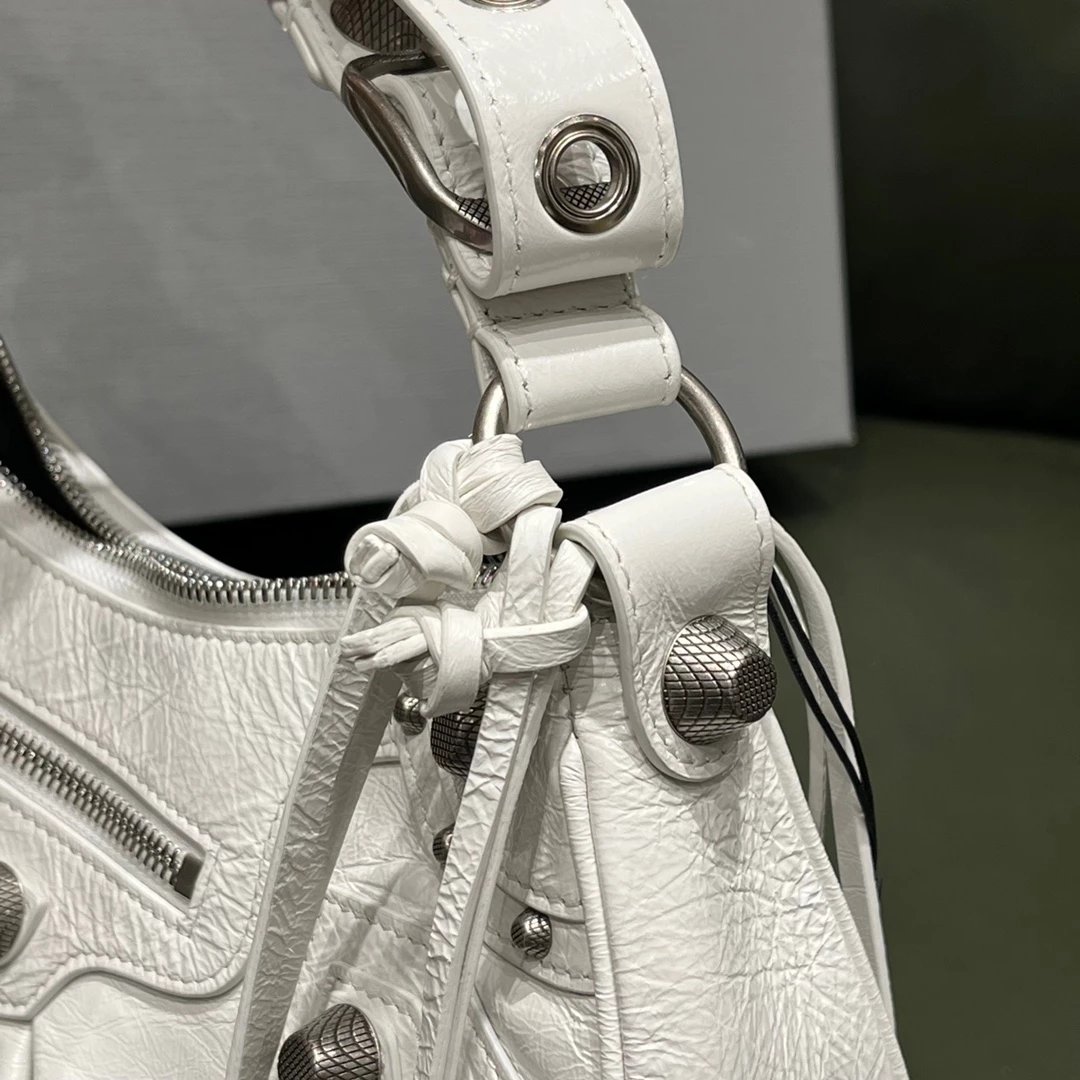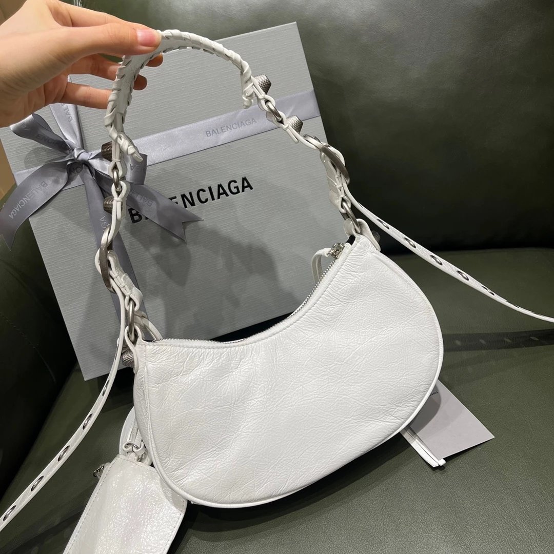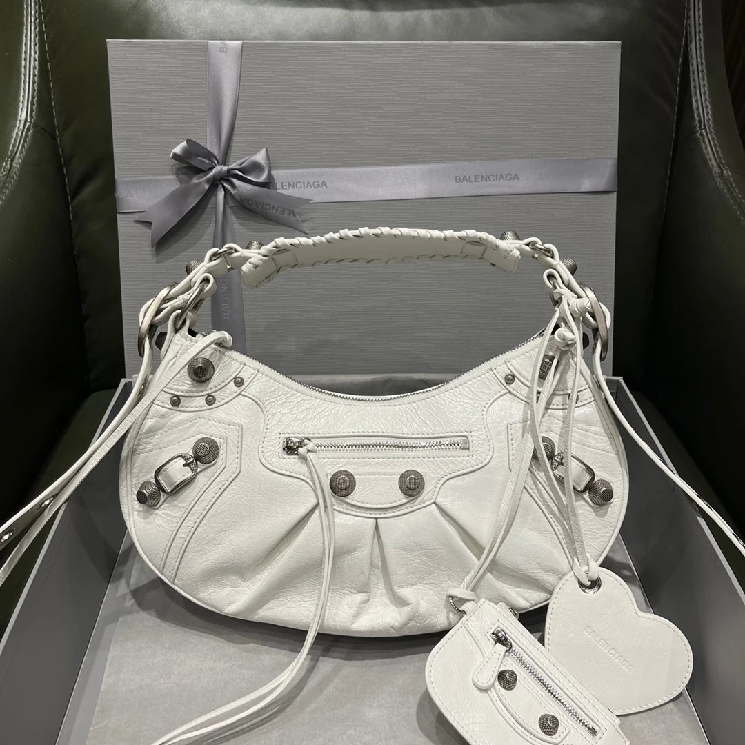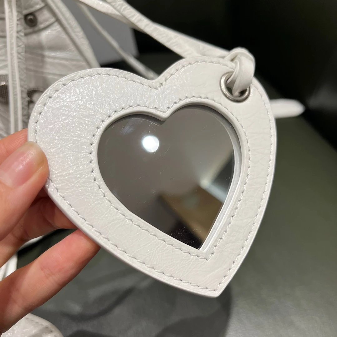 B家Le Cagole S做旧银配件心形化妆镜羊皮饺子包机车包半月包月牙包单肩斜挎手提包 女款 白色