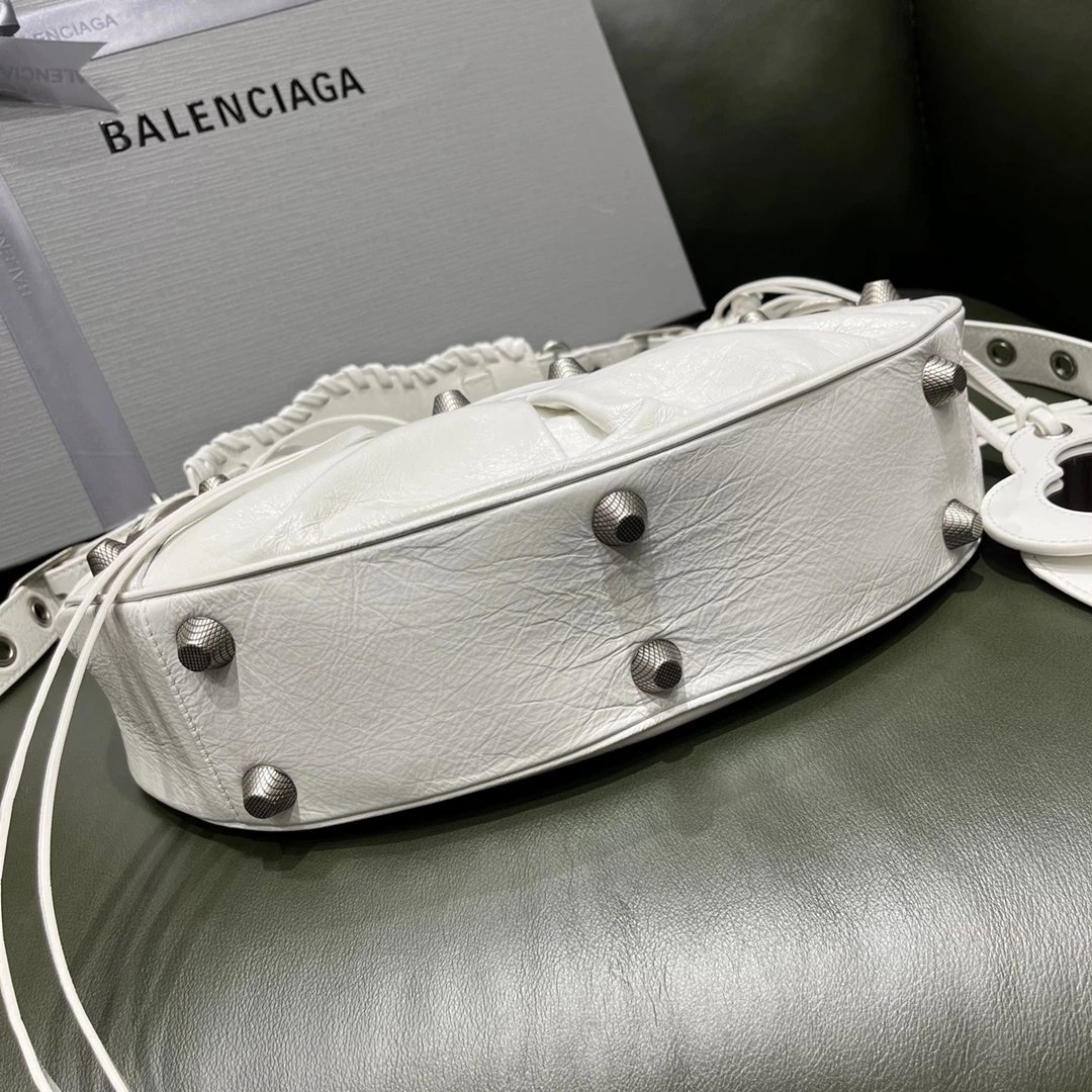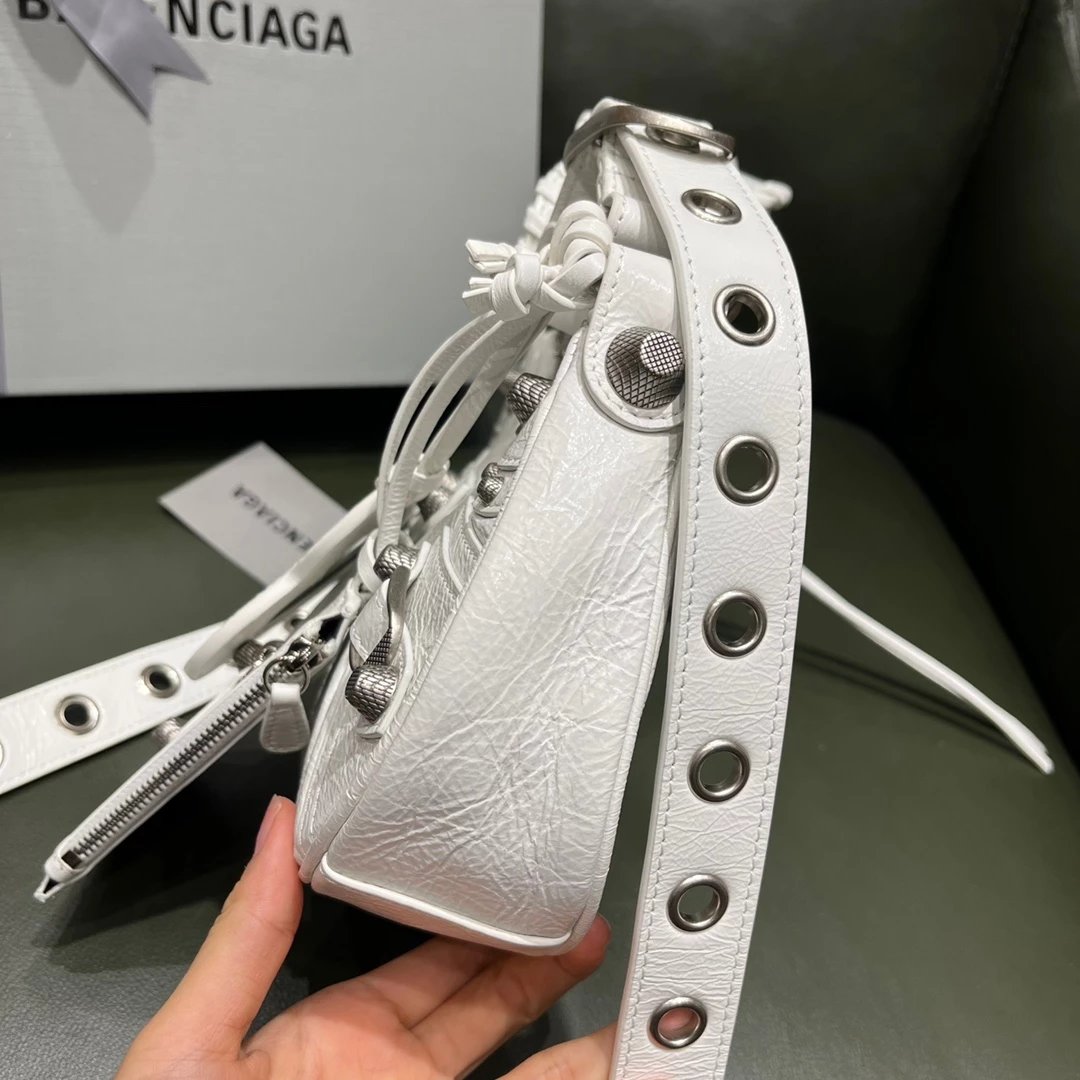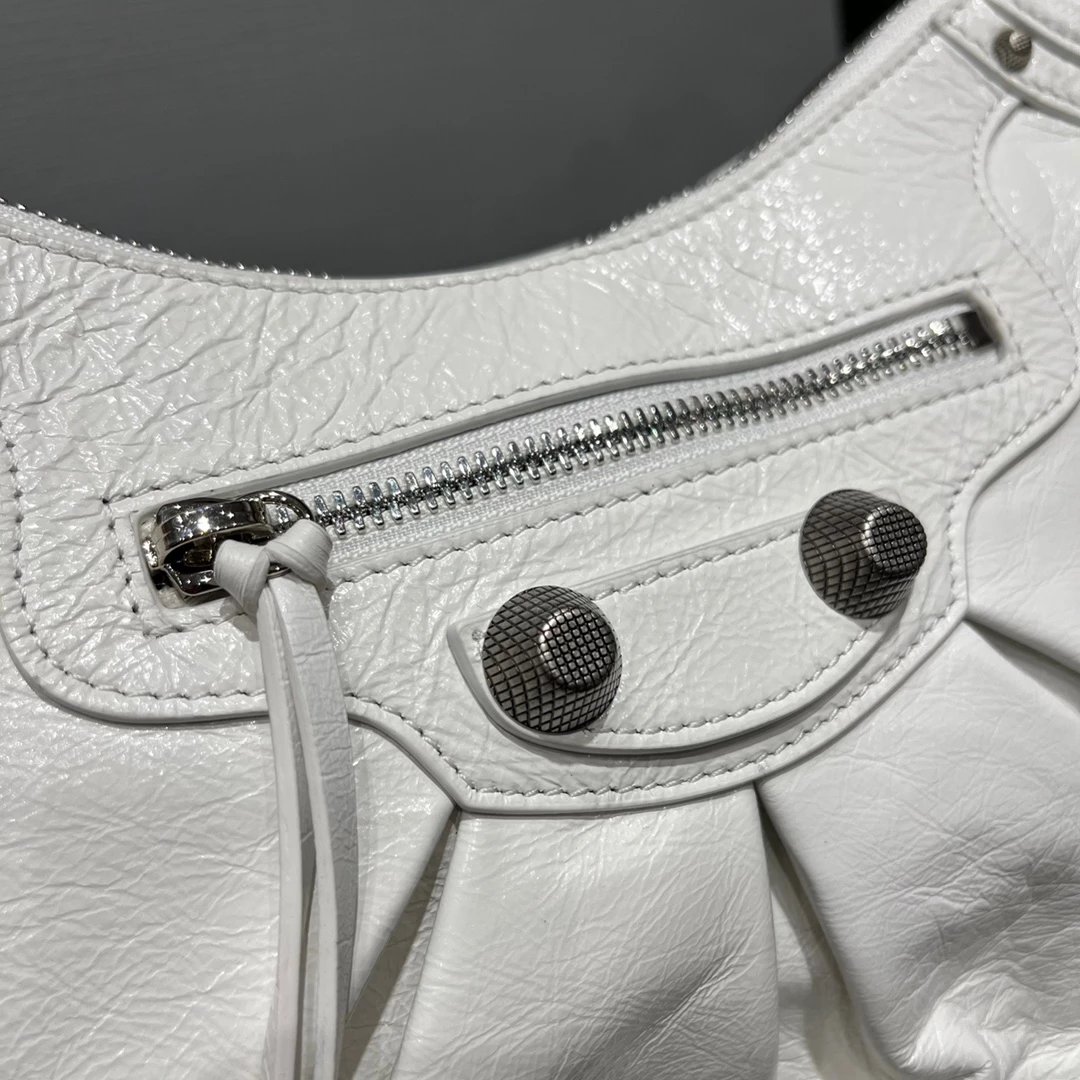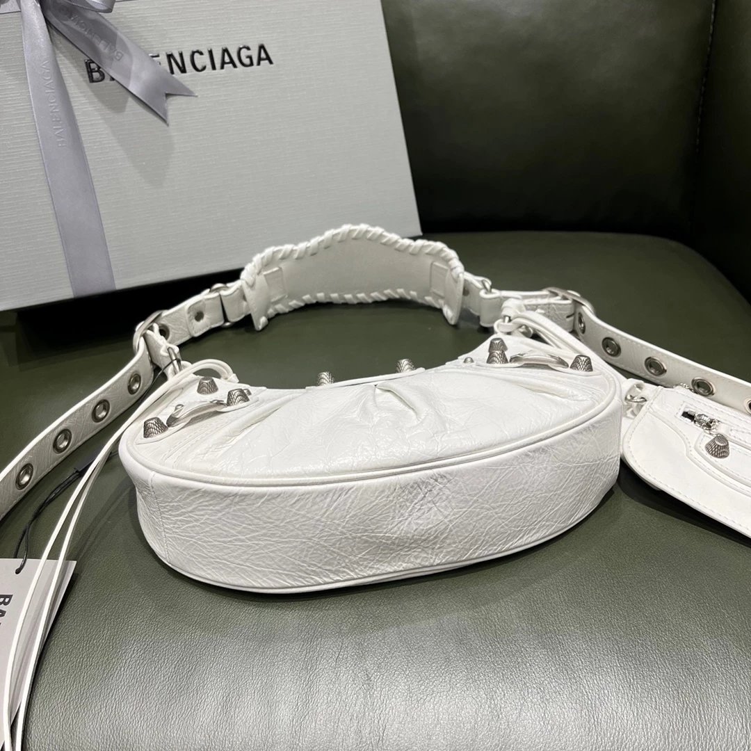 B家Le Cagole S做旧银配件心形化妆镜羊皮饺子包机车包半月包月牙包单肩斜挎手提包 女款 白色