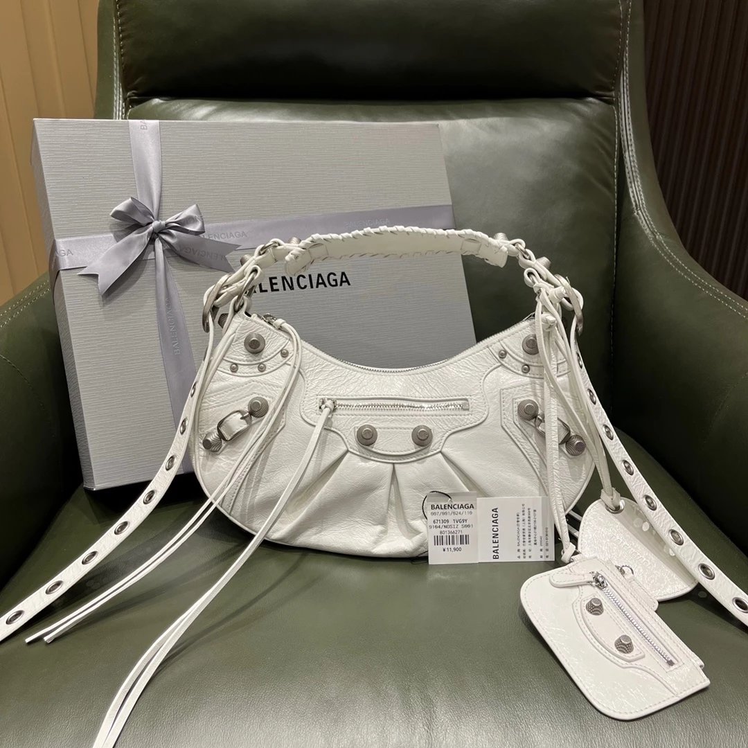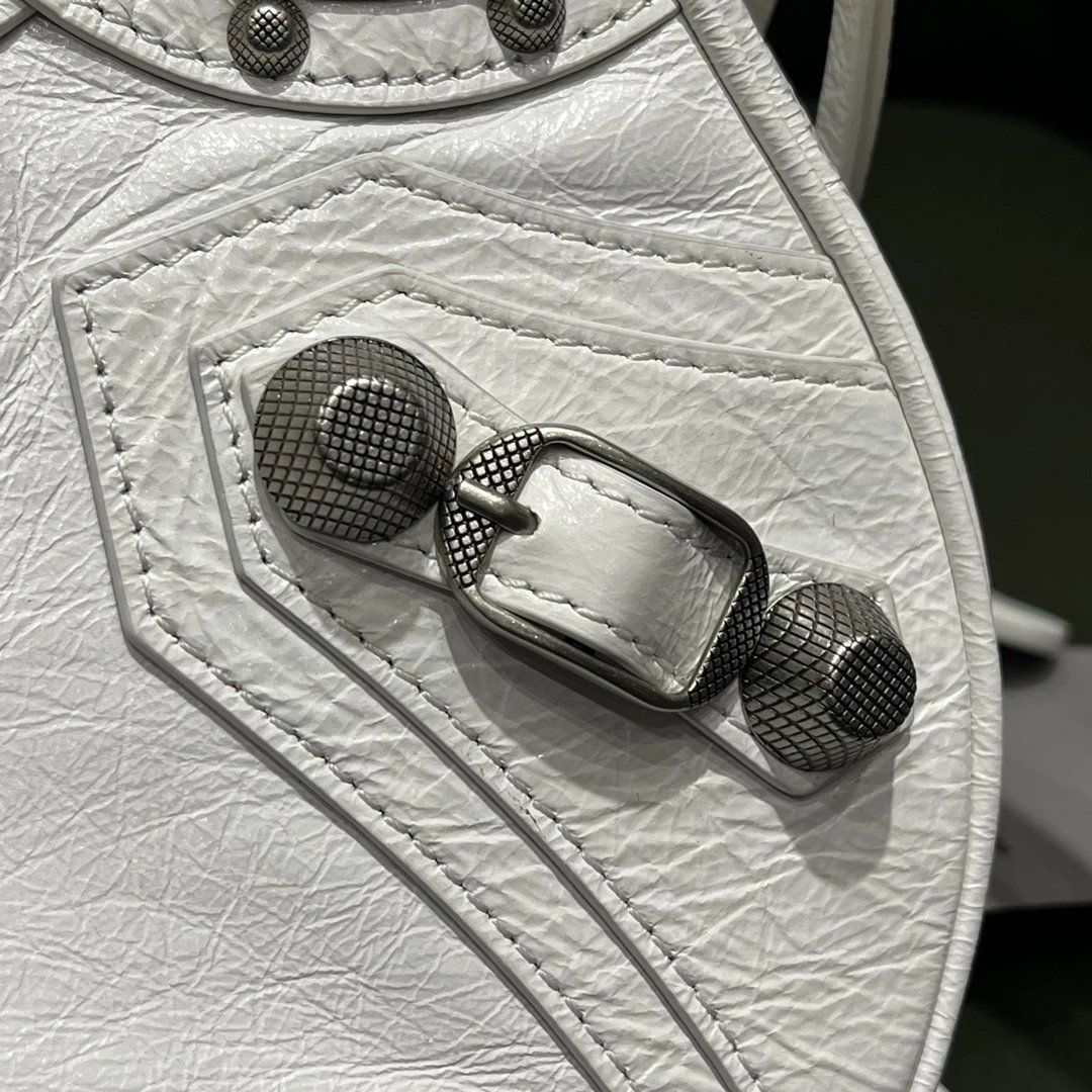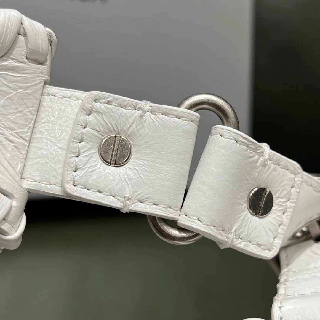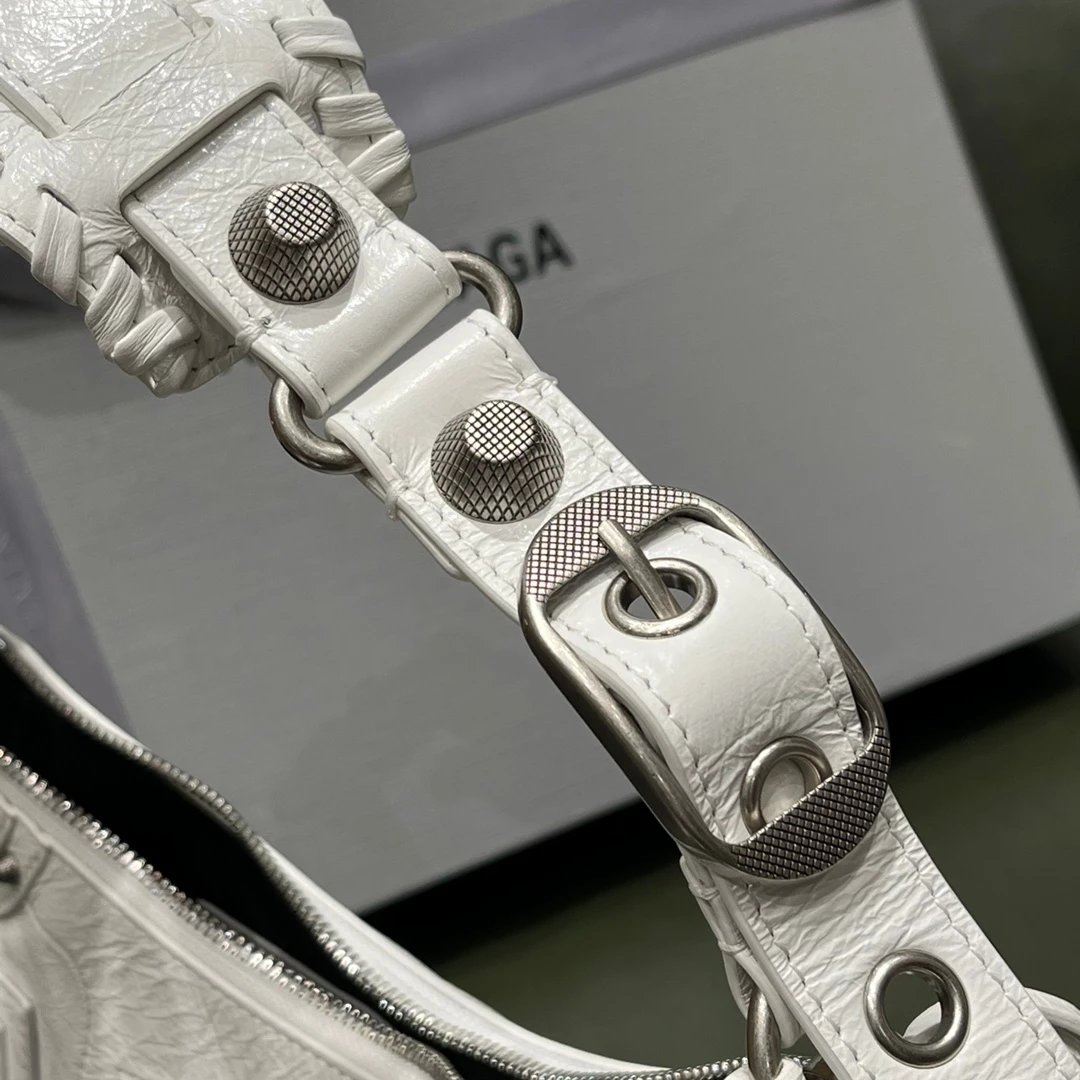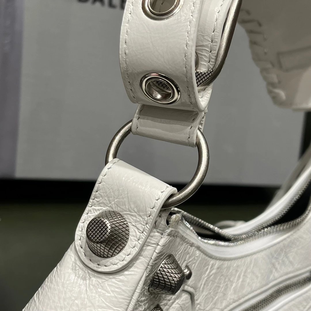B家Le Cagole S做旧银配件心形化妆镜羊皮饺子包机车包半月包月牙包单肩斜挎手提包 女款 白色