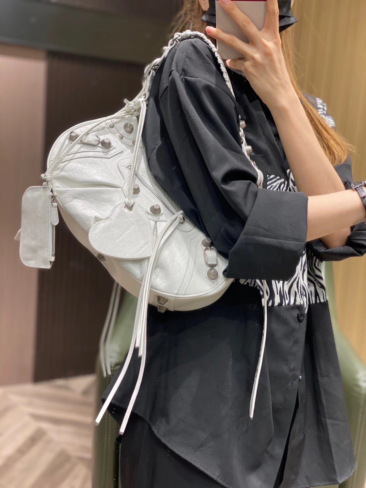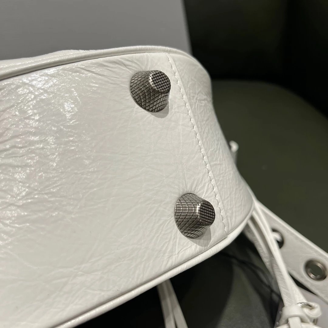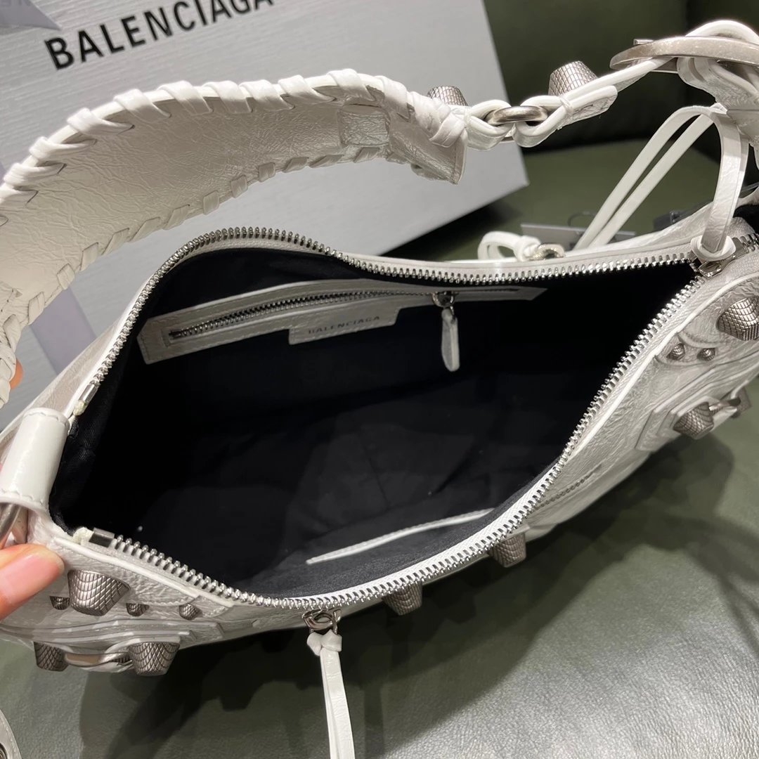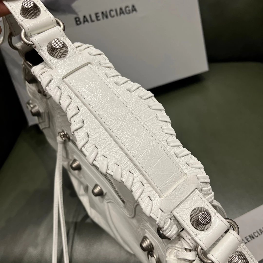 B家Le Cagole S做旧银配件心形化妆镜羊皮饺子包机车包半月包月牙包单肩斜挎手提包 女款 白色