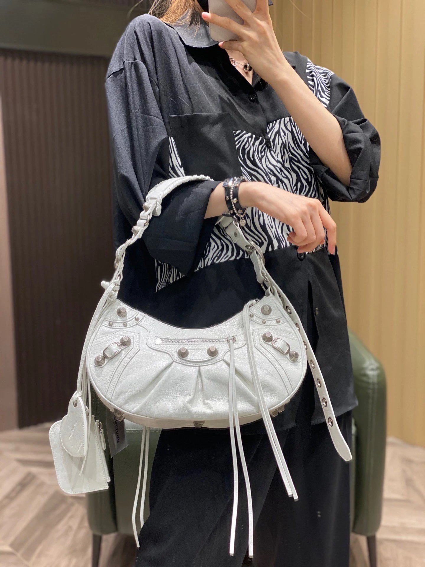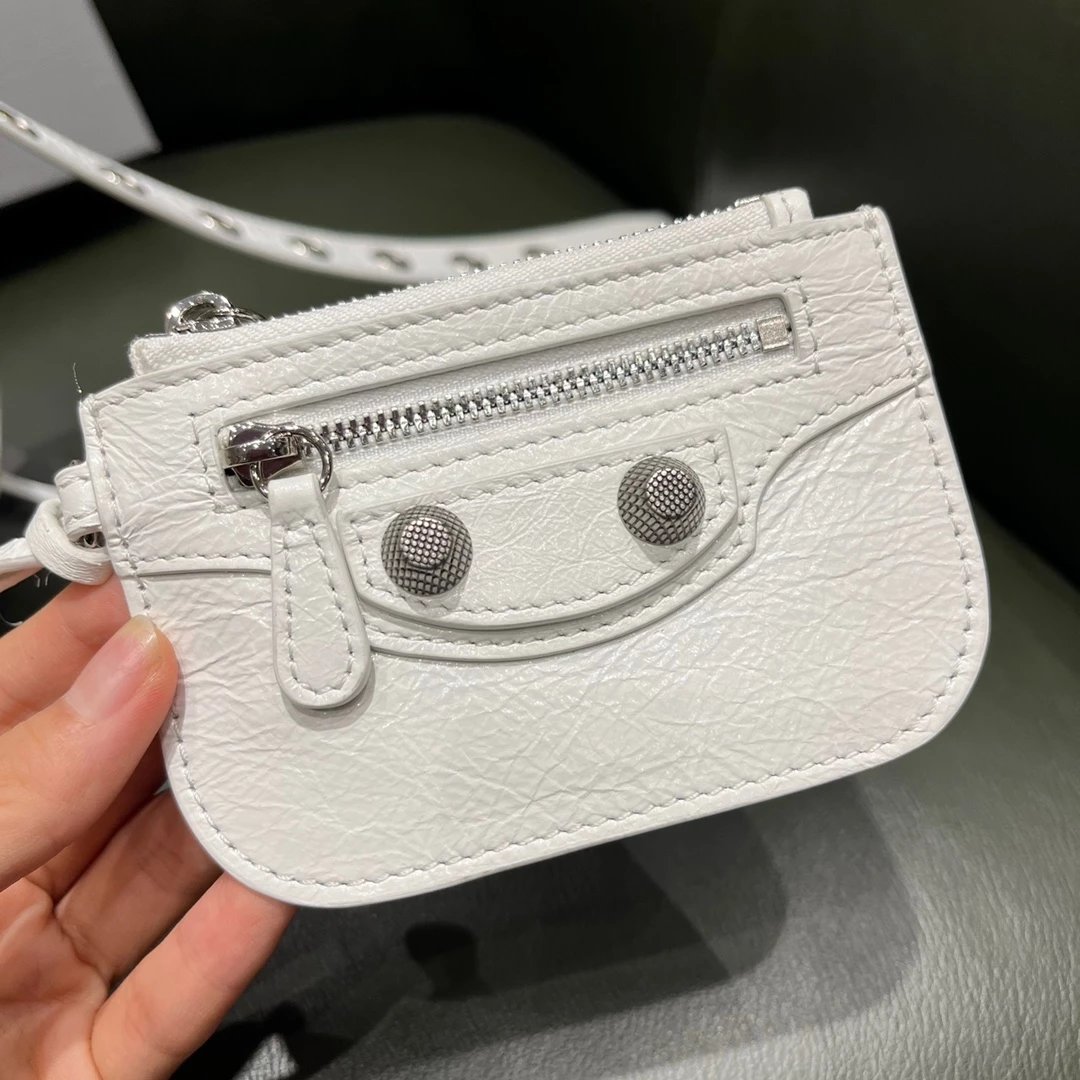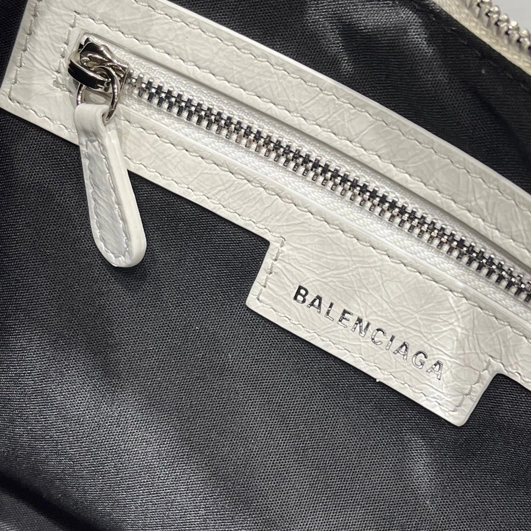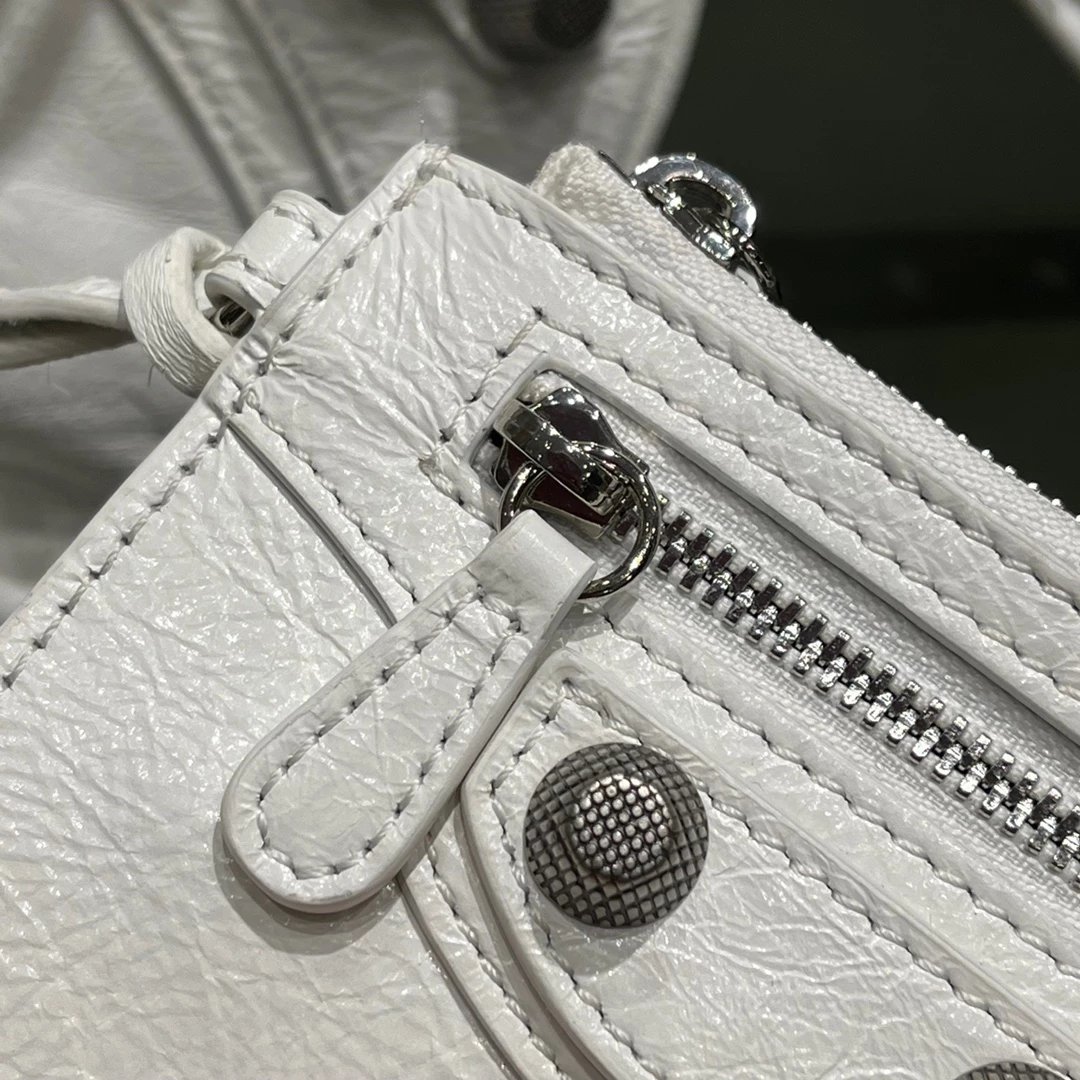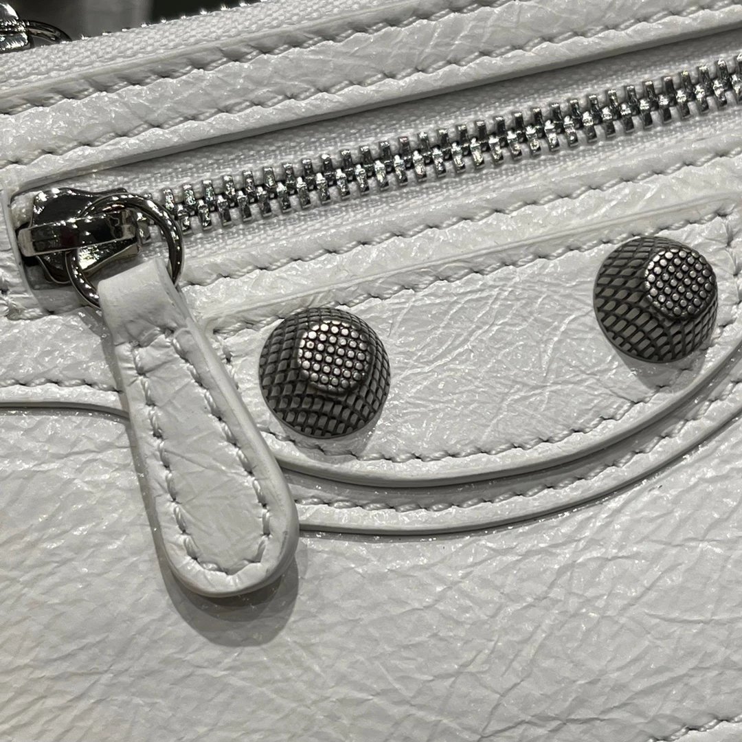 B家Le Cagole S做旧银配件心形化妆镜羊皮饺子包机车包半月包月牙包单肩斜挎手提包 女款 白色