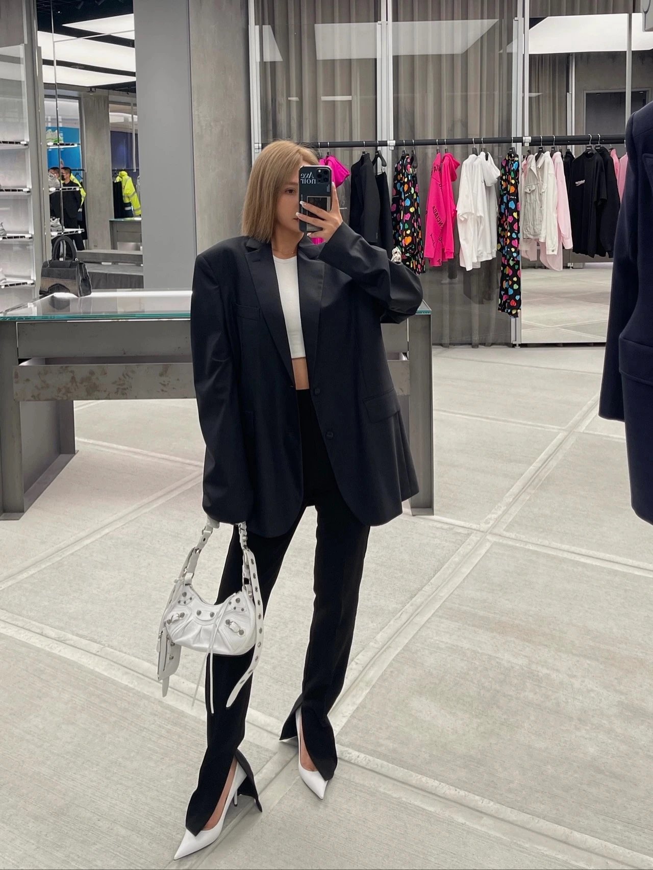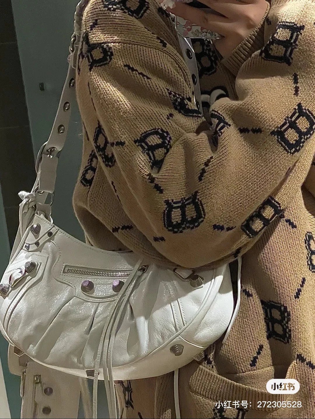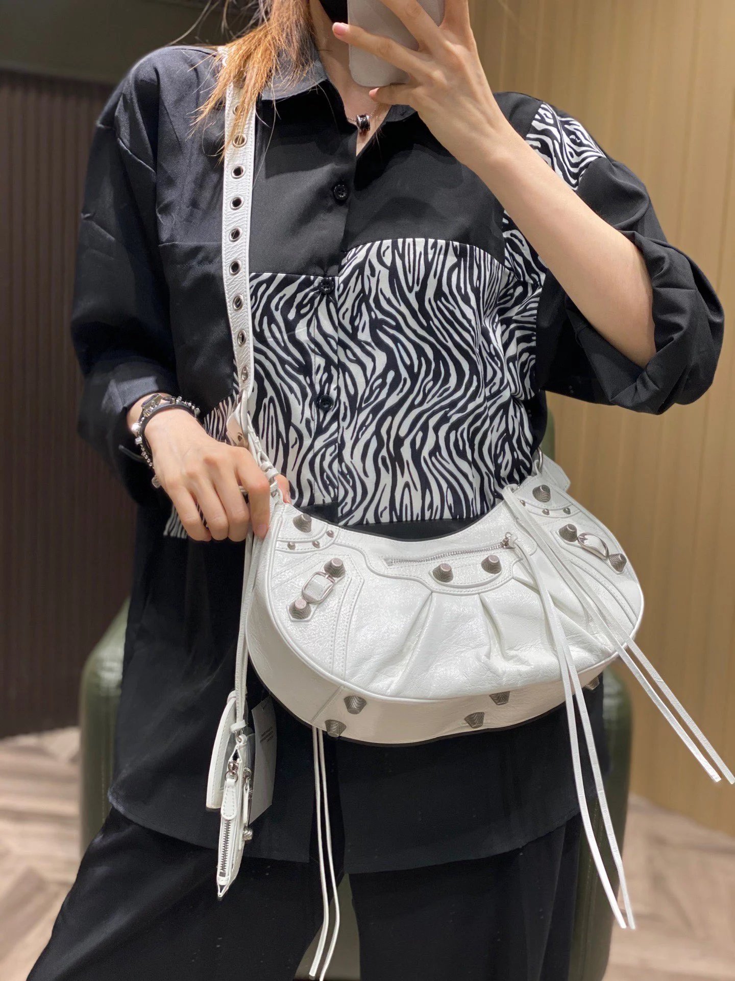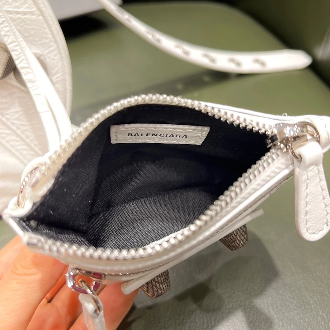 B家Le Cagole S做旧银配件心形化妆镜羊皮饺子包机车包半月包月牙包单肩斜挎手提包 女款 白色