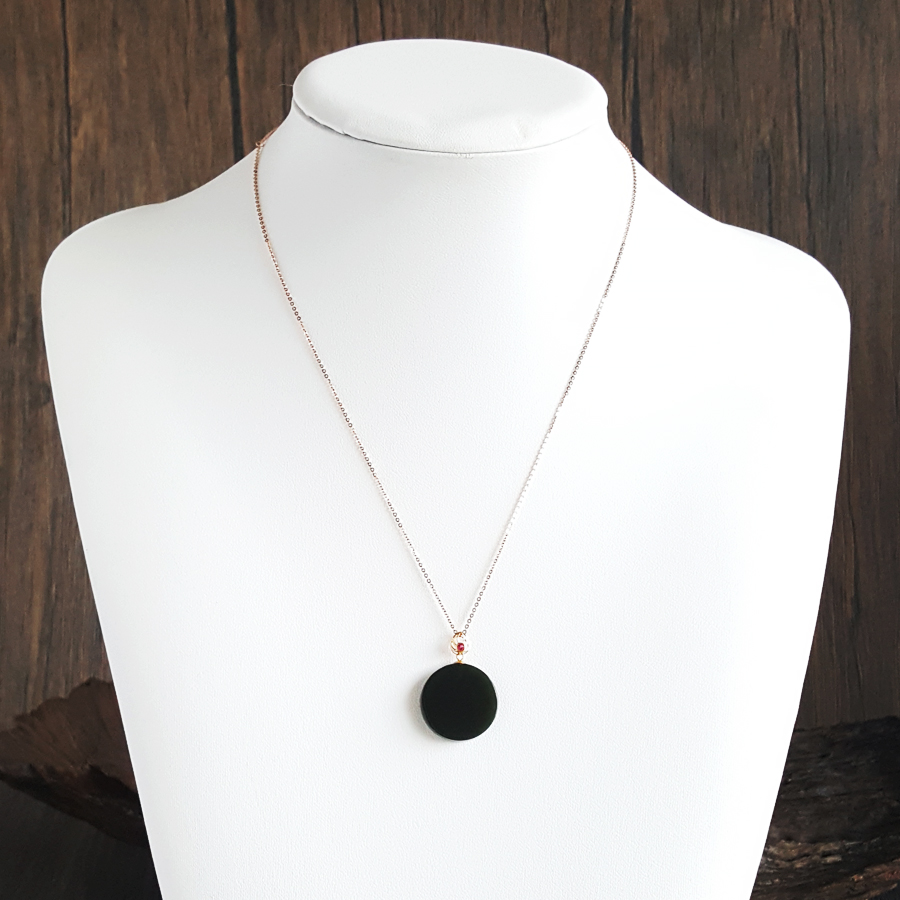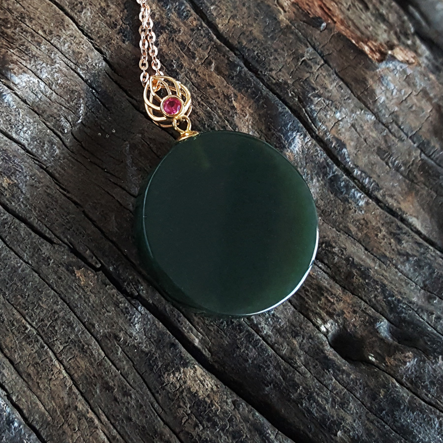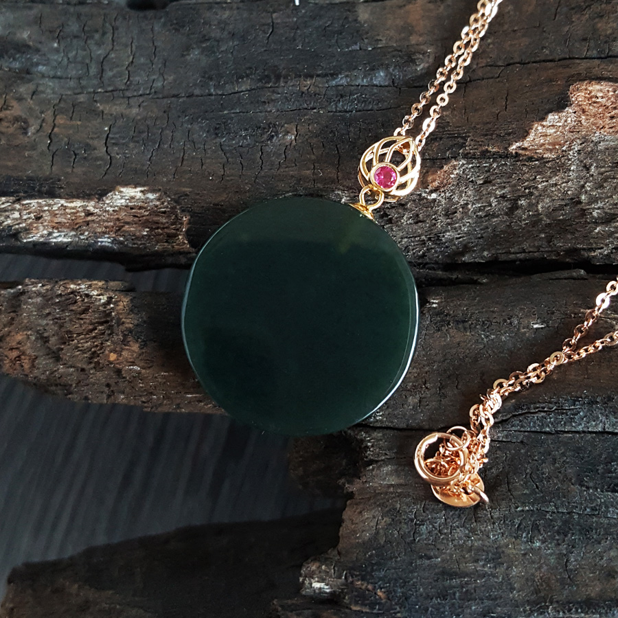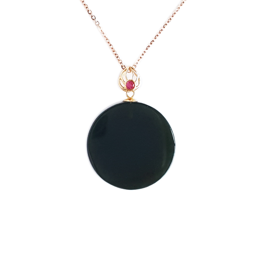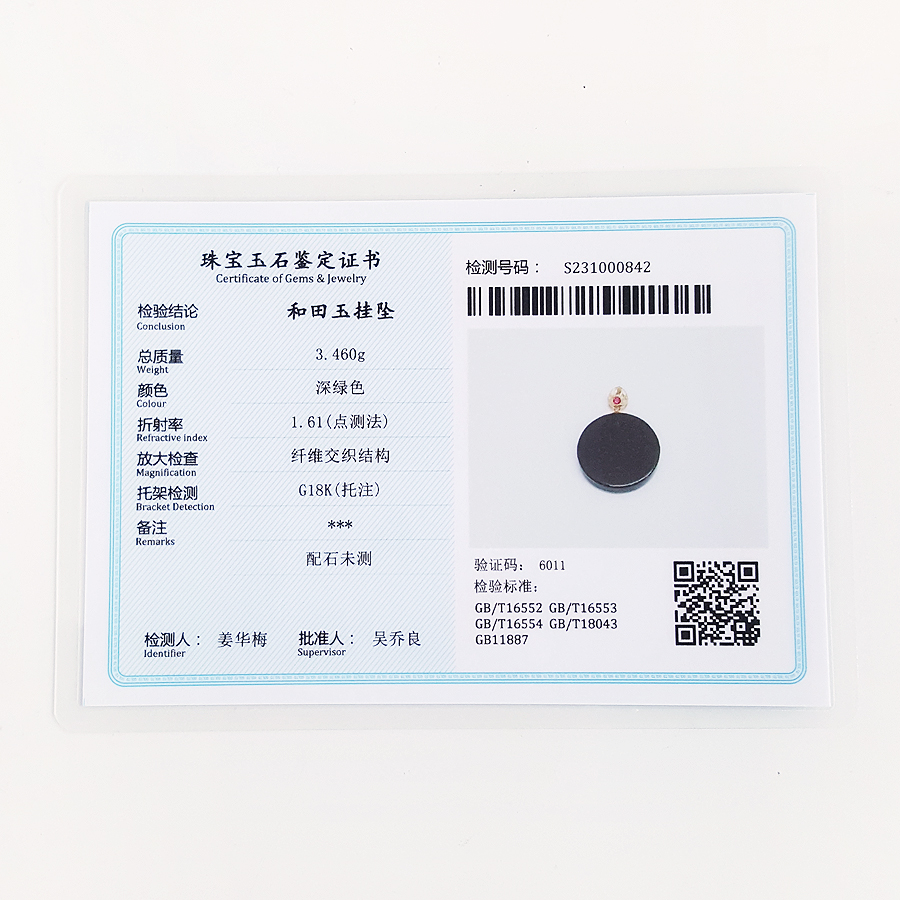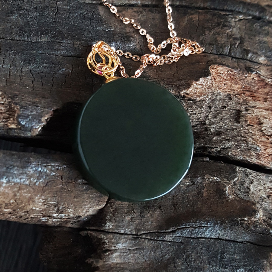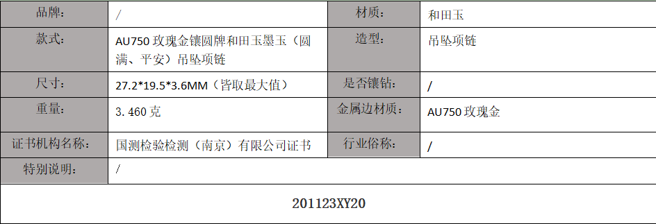 【天然正品】圆牌和田玉墨玉AU750玫瑰金吊坠项链27.2*19.5*3.6MM(皆取最大值)201123XY20现售价:980 特价