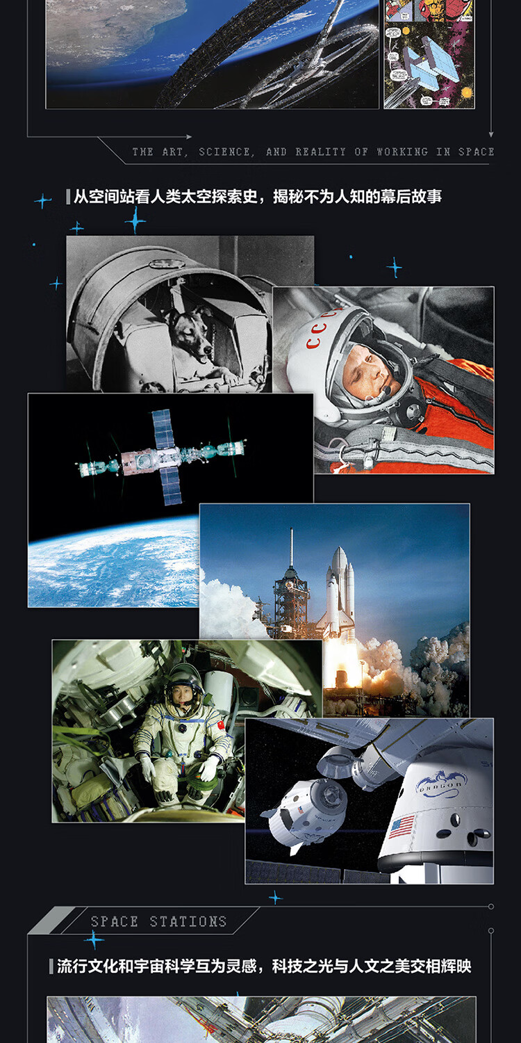 书中有大量震撼的照片、手稿、漫画、设计图纸等图片,清晰而直观地为你呈现空间站的发展历程。同时,本书还展示了空间站中的流行文化,从各种儿童玩具、漫画、科幻小说到电视剧和好莱坞电影,流行文化影响着空间站的发展。