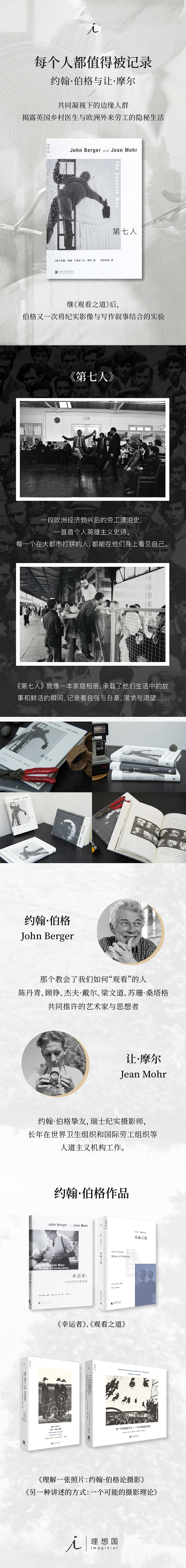 《第七人》是不同类别的故事的混合,书中有诗歌、统计数据,也有“他”,即一位移民工人的叙事。作者想通过这本书展示一个shiwuqianli的移民时代——欧洲的经济强国是何等地依赖欠发达国家的劳动力。