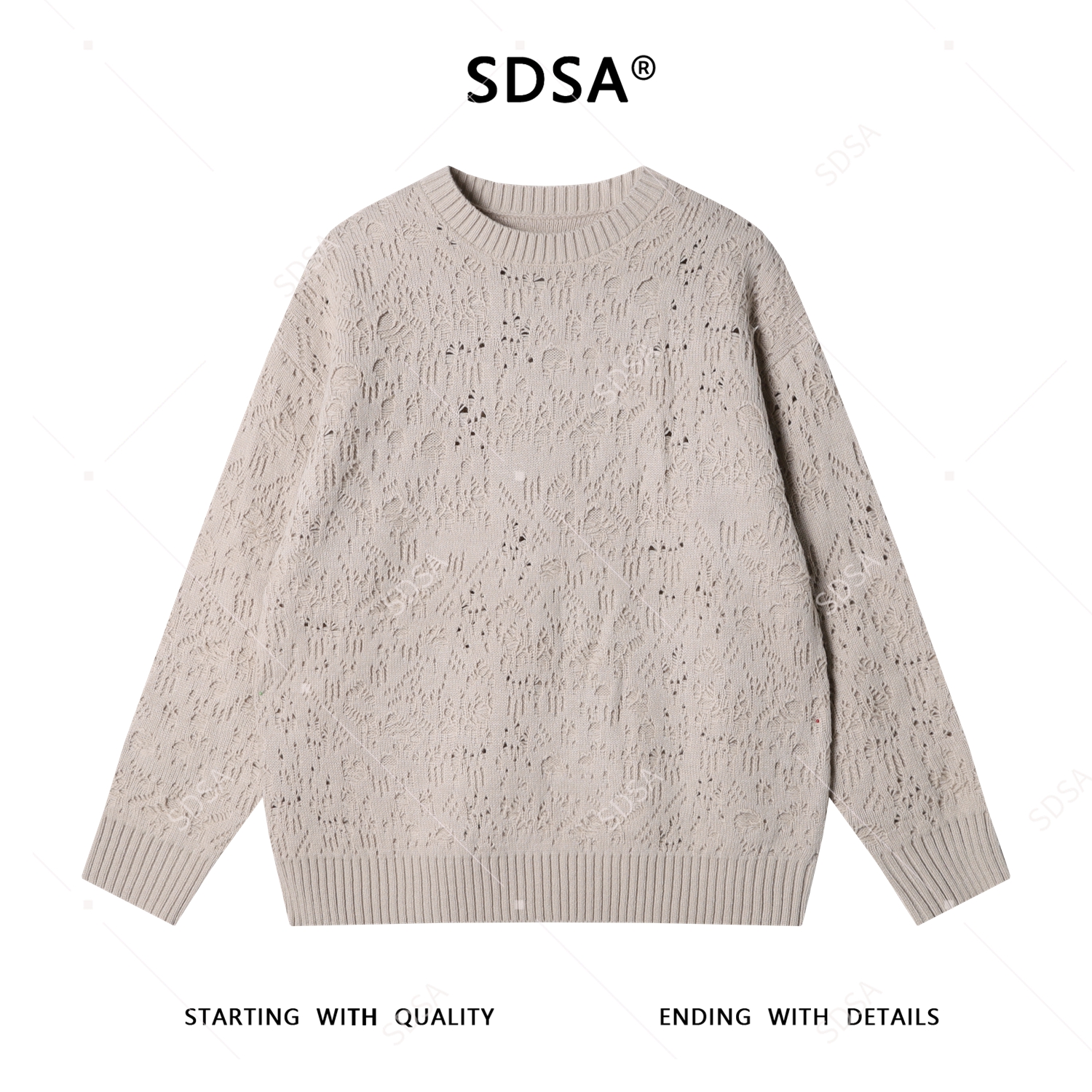 24309SDSA男士秋冬新款痞帅男装潮牌简约纯色勾破圆领毛衣慵懒风针织衫