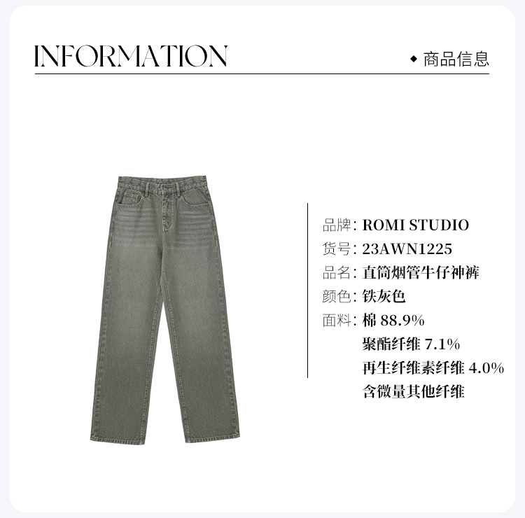 ROMI STUDIO“美式复古”高腰直筒水洗做旧牛仔裤 23AWN1225