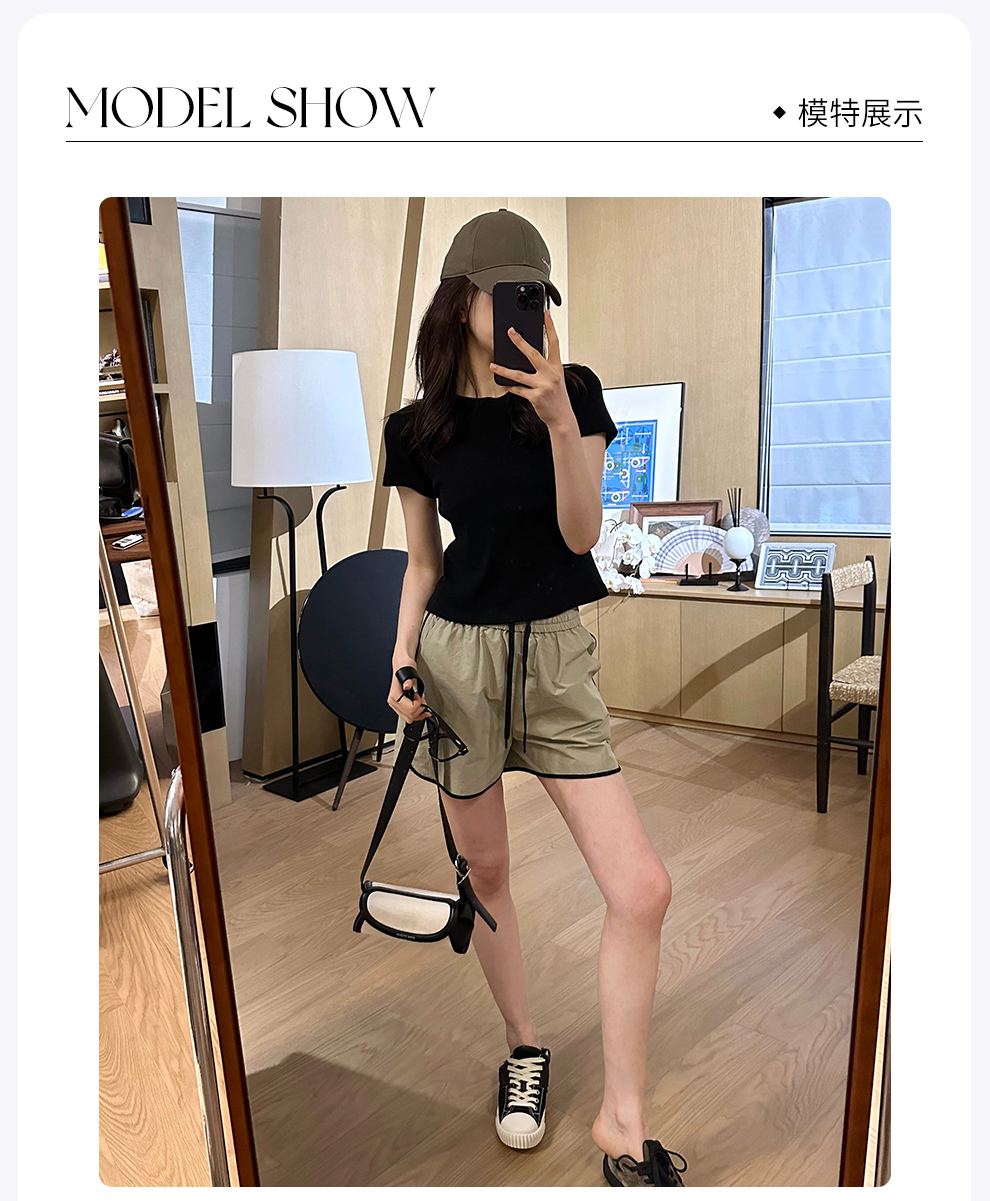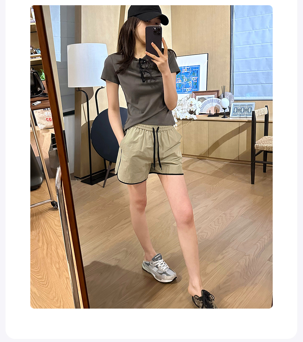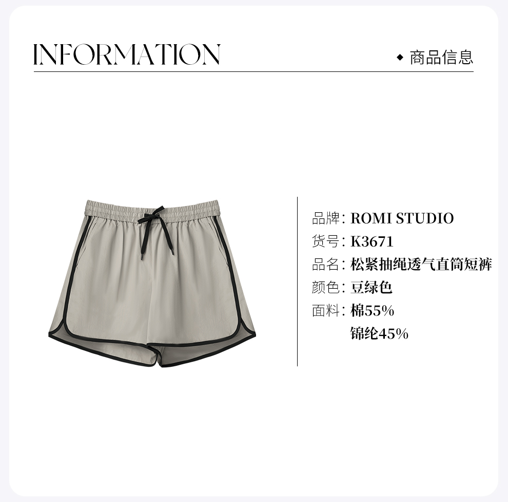 ROMI STUDIO“运动”复古撞色高腰松紧抽绳透气直筒短裤K3671