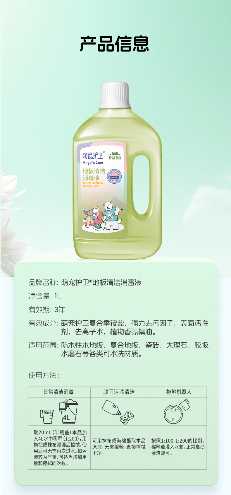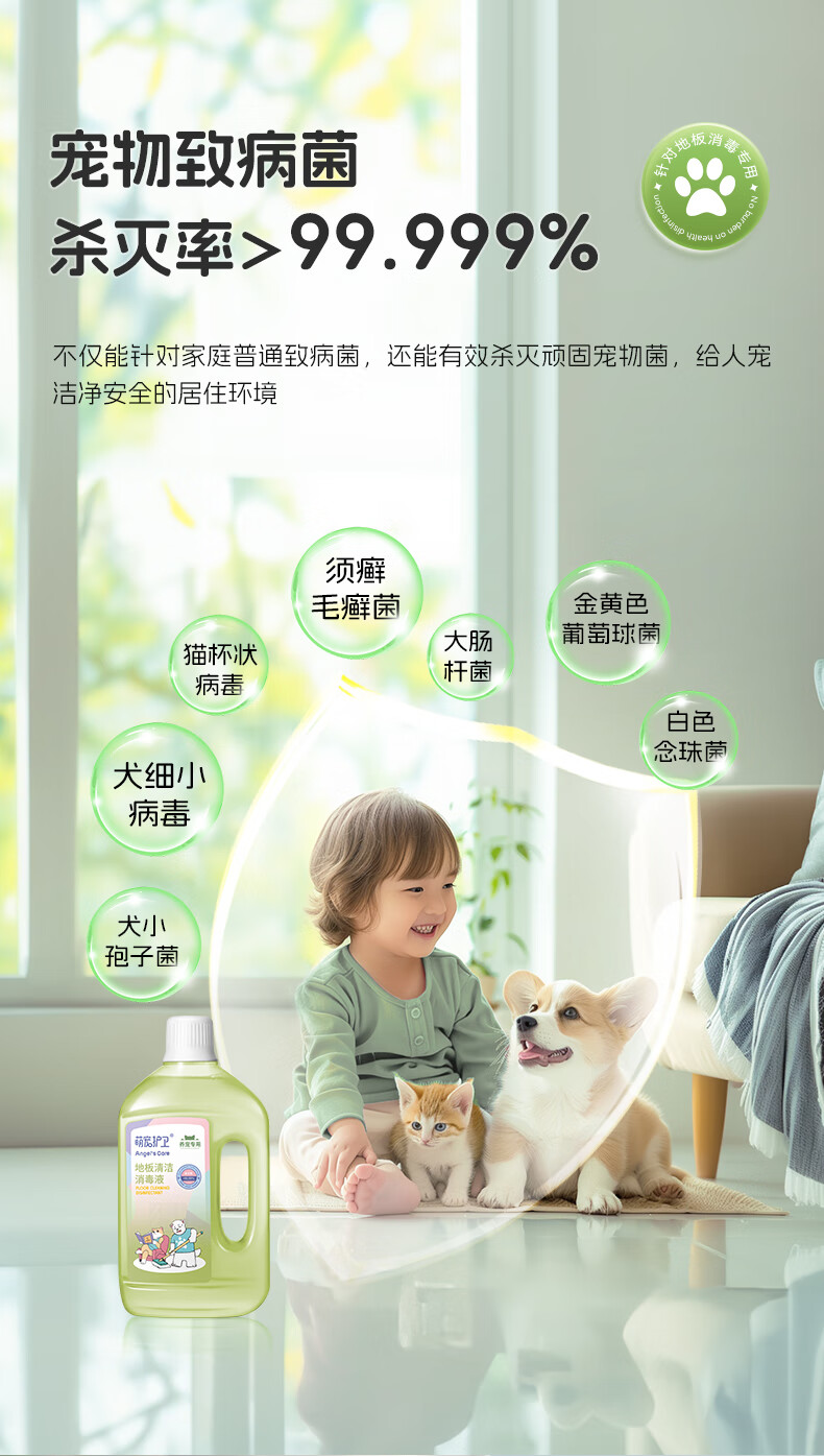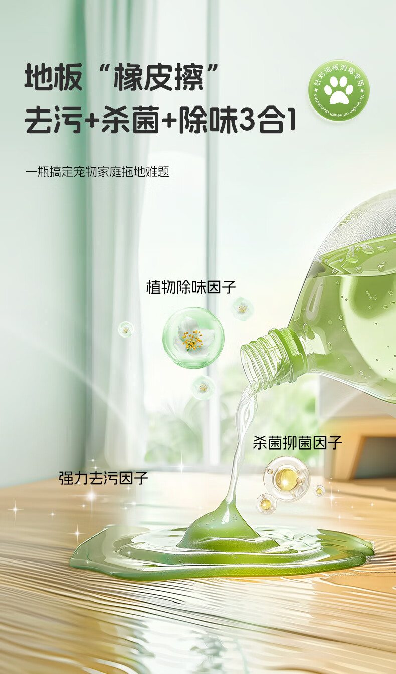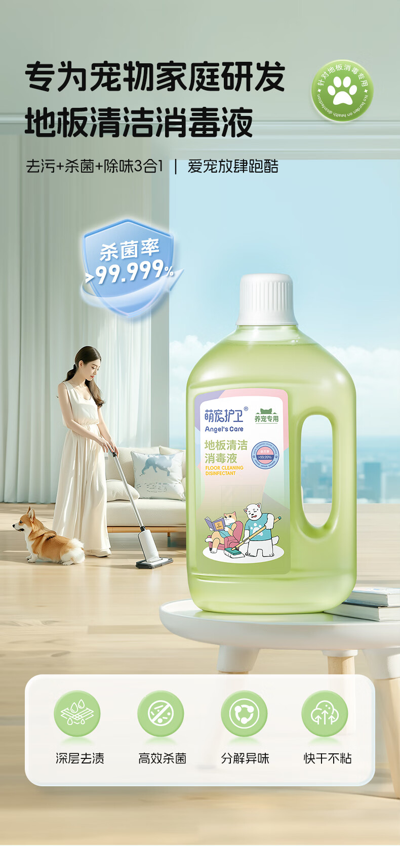 萌宠护卫地板清洁消毒液拖地宠物专用去污杀菌除臭猫咪狗狗除味无毒 【清洁祛味消毒 洗地机可用】地板消毒液-1升