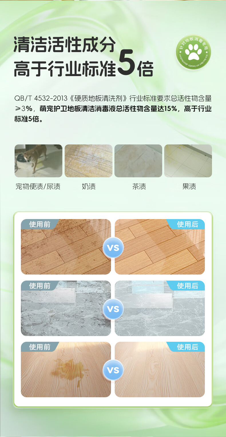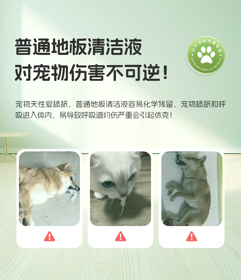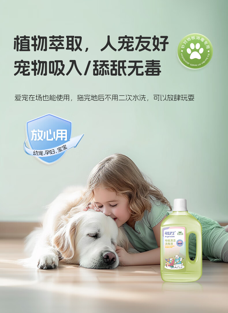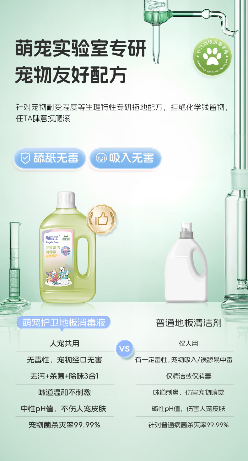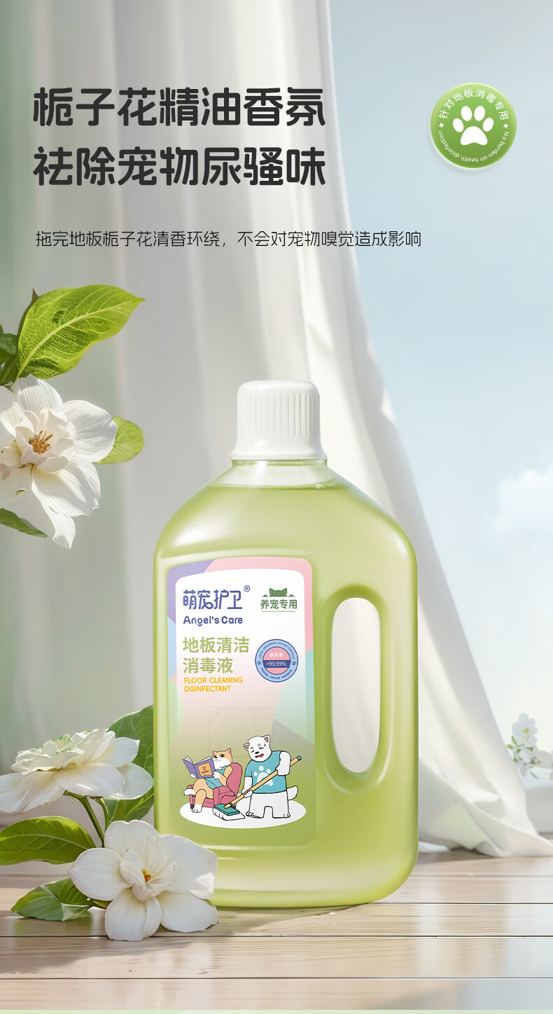 萌宠护卫地板清洁消毒液拖地宠物专用去污杀菌除臭猫咪狗狗除味无毒 【清洁祛味消毒 洗地机可用】地板消毒液-1升