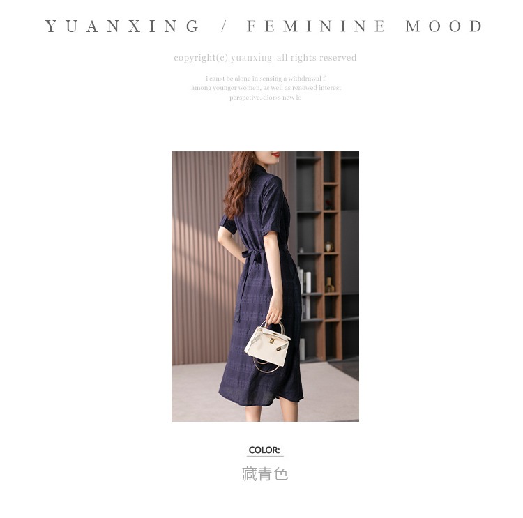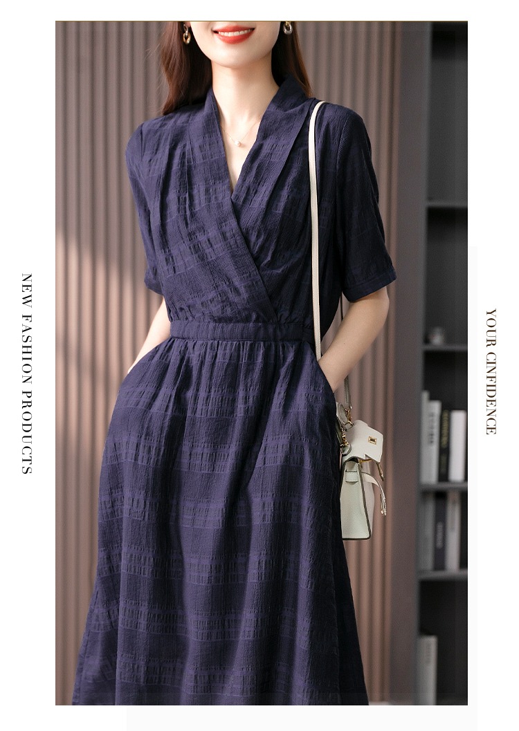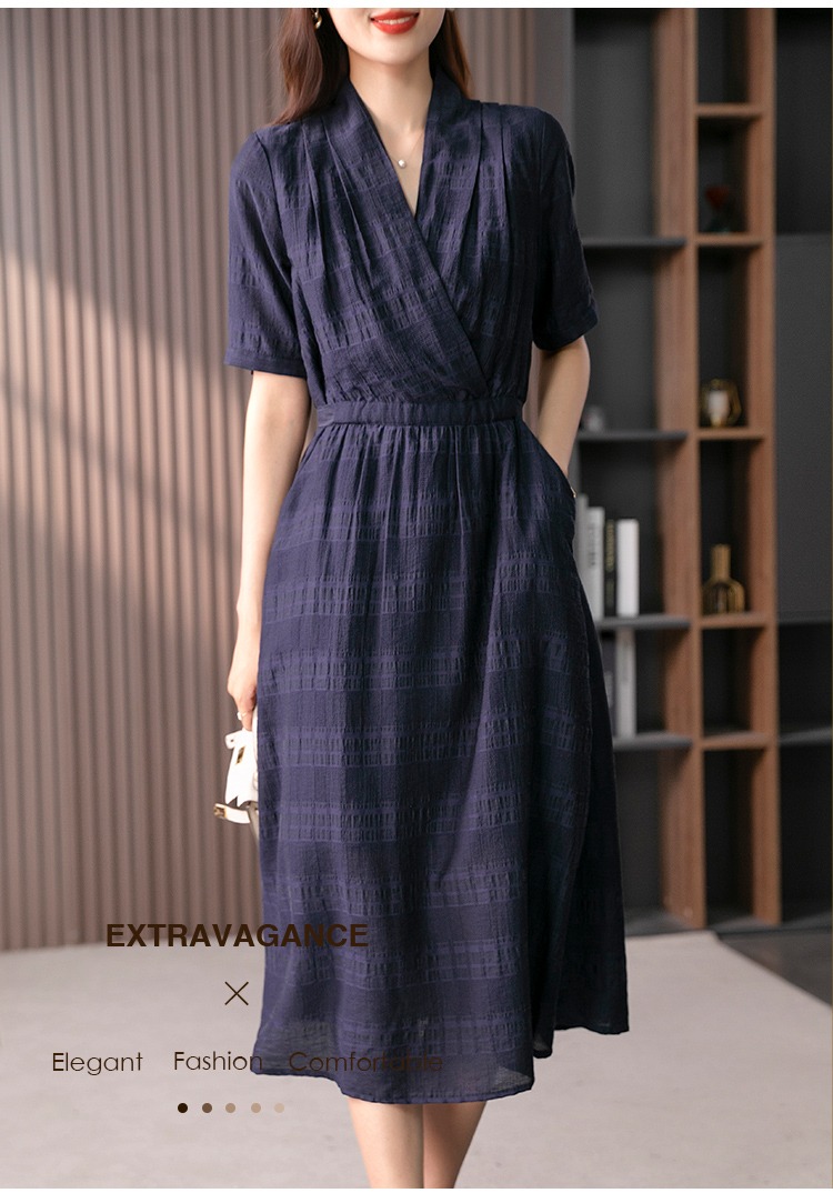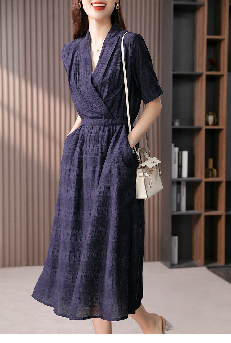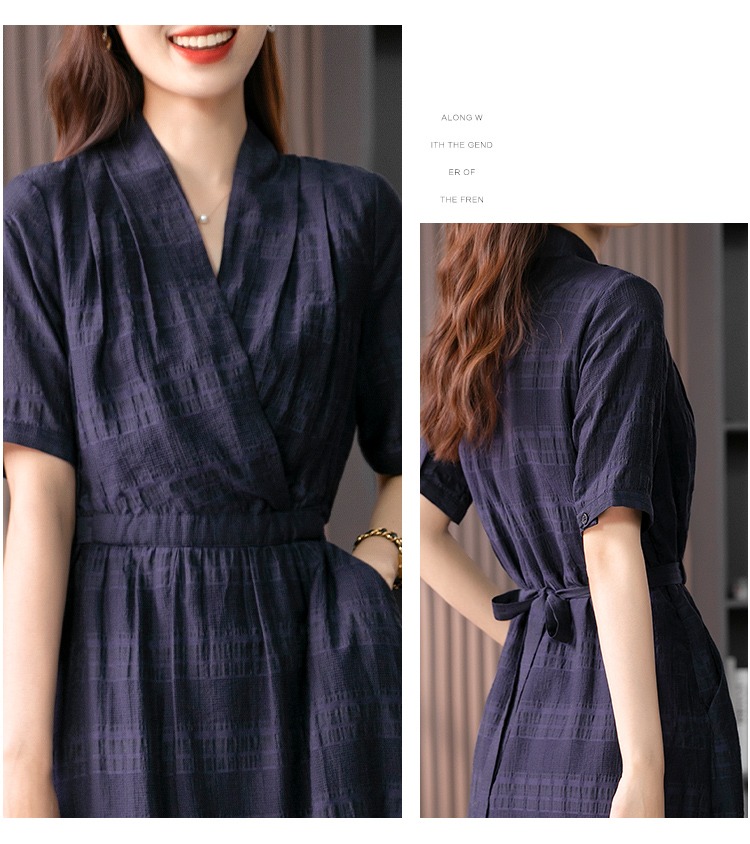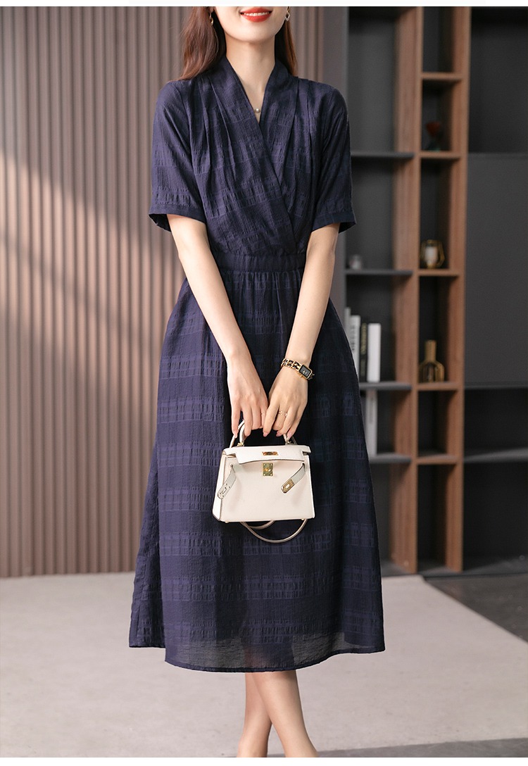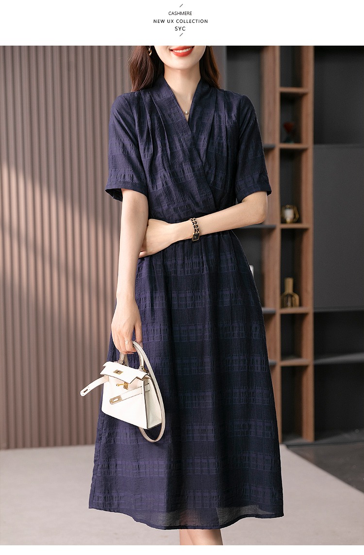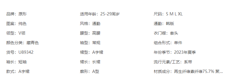 89342原形V领短袖连衣裙女2024春夏季新款高级感气质收腰A字裙长裙子