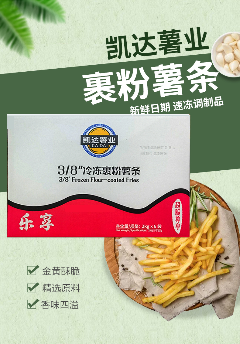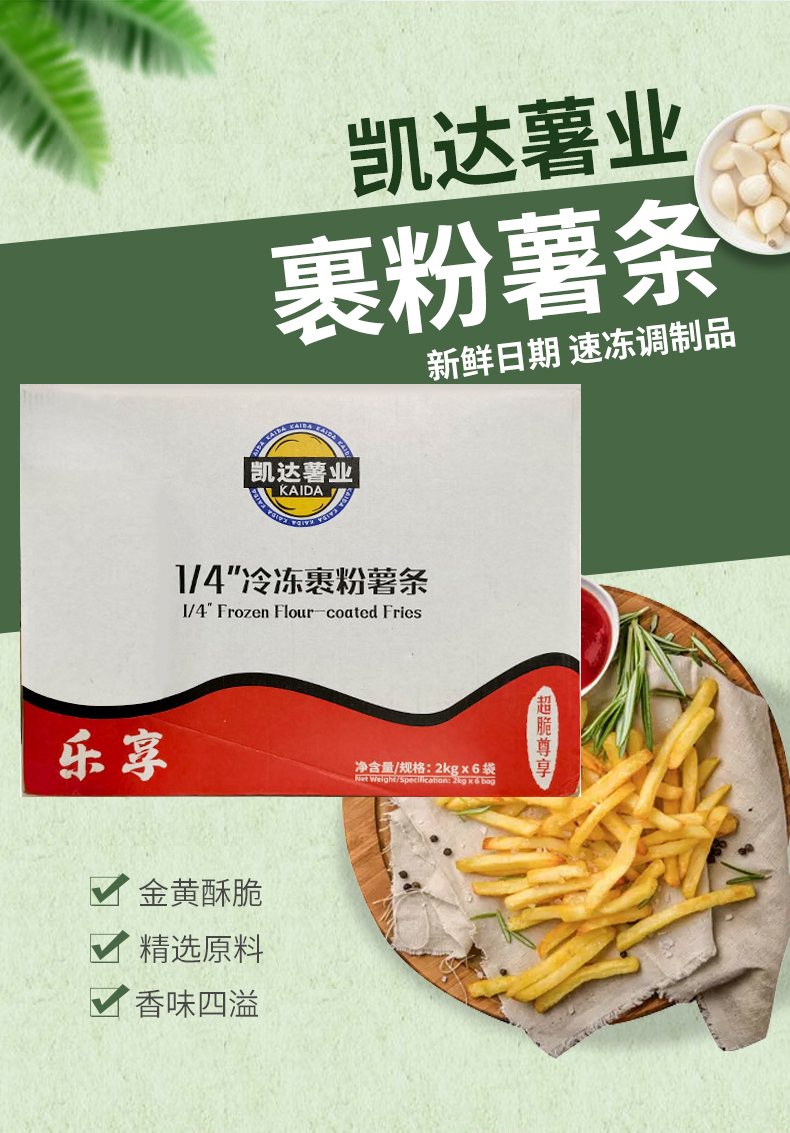 凯达薯业冷冻裹粉薯条系列 2kg*6 【287 374 细薯条 粗薯条】