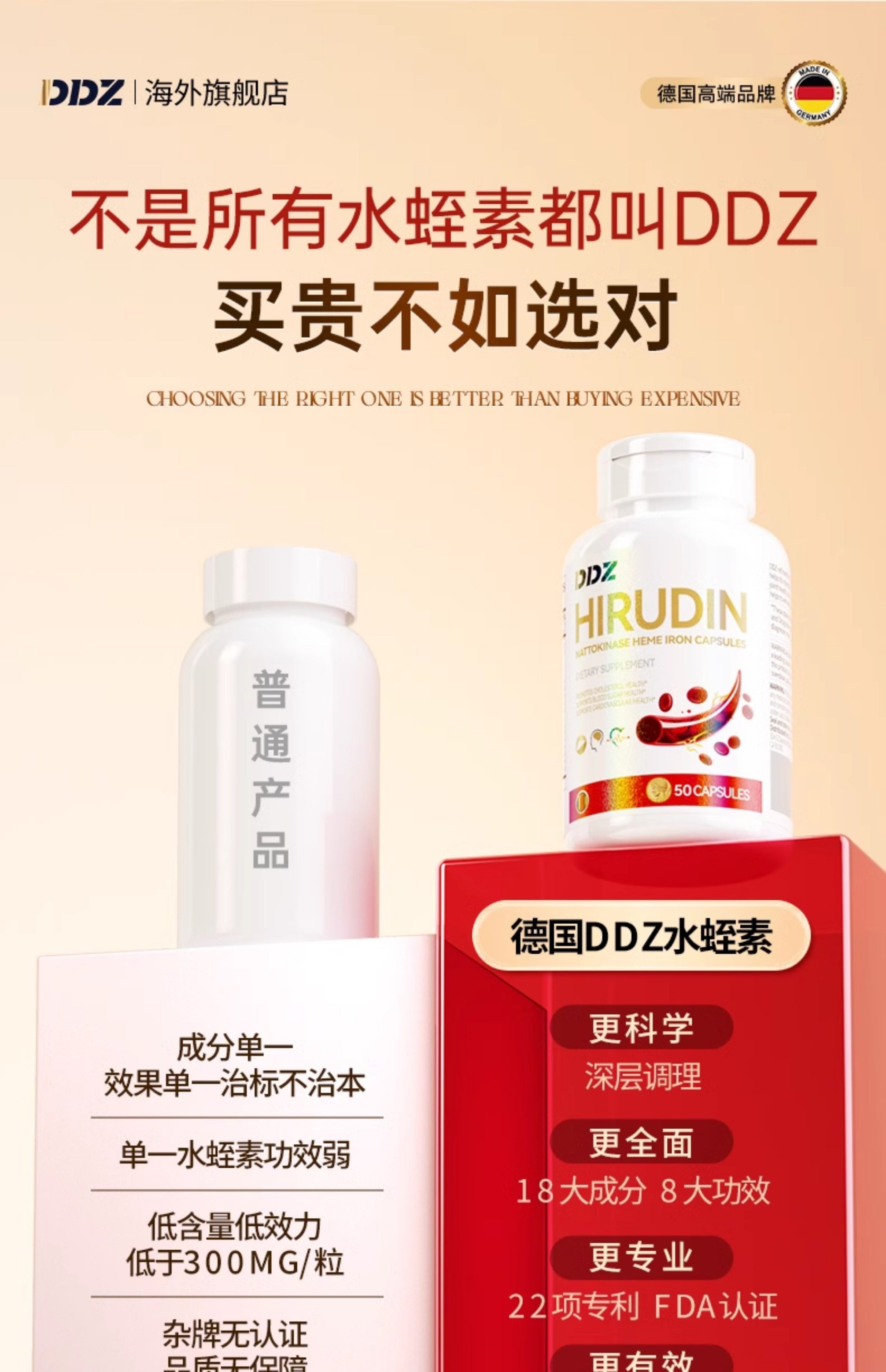 DDZ进口德国品牌水蛭素进口纳豆激酶提取物中老年心脑血管正品