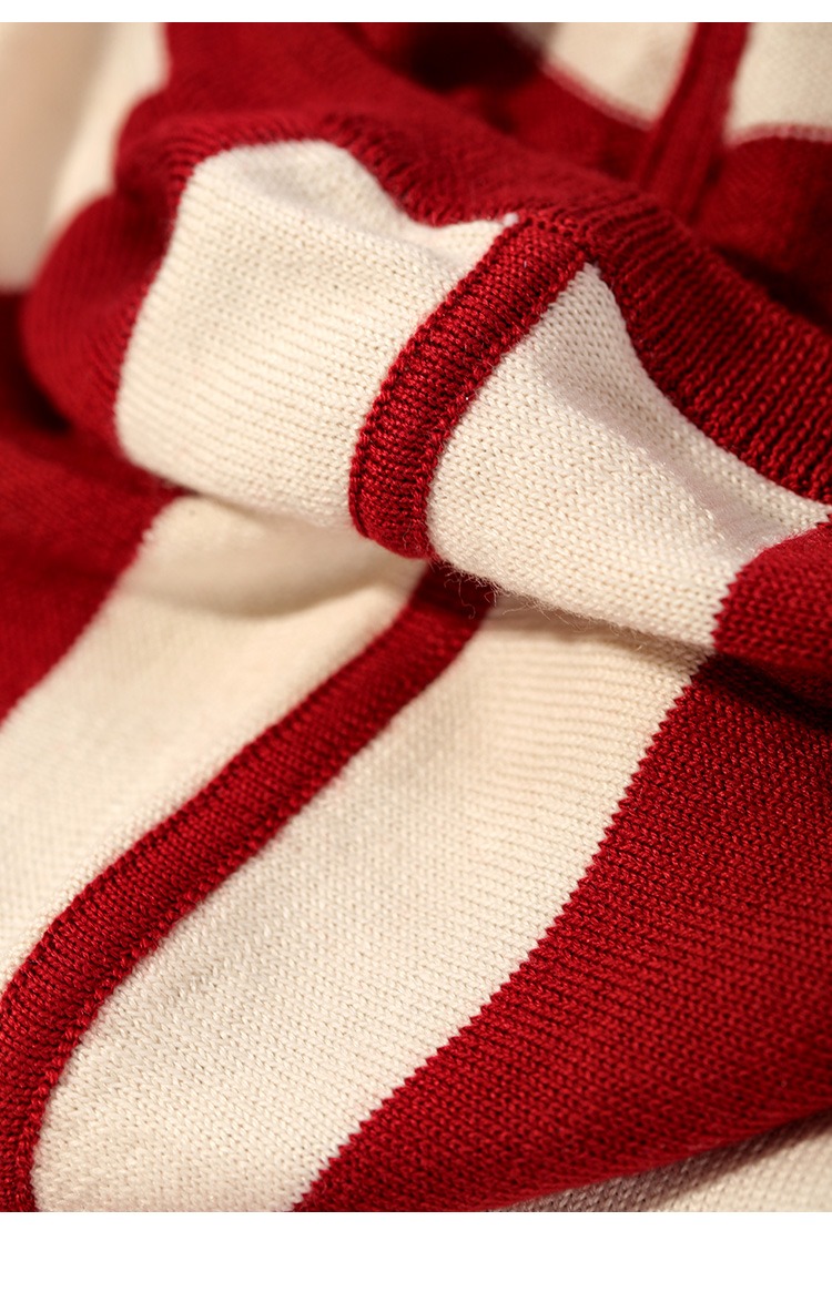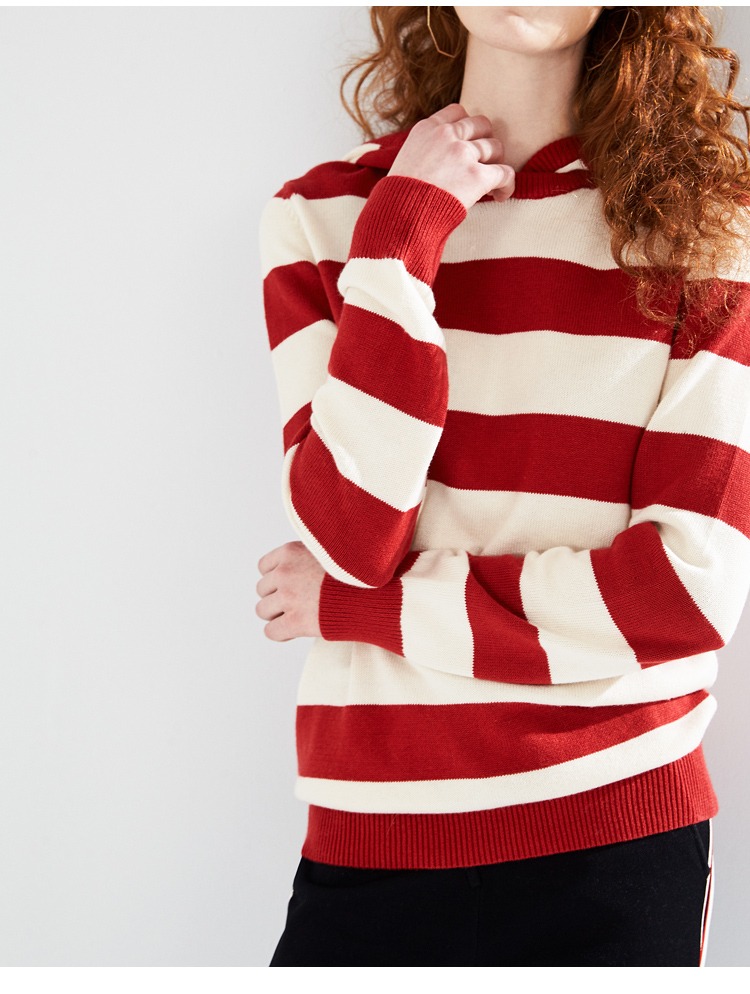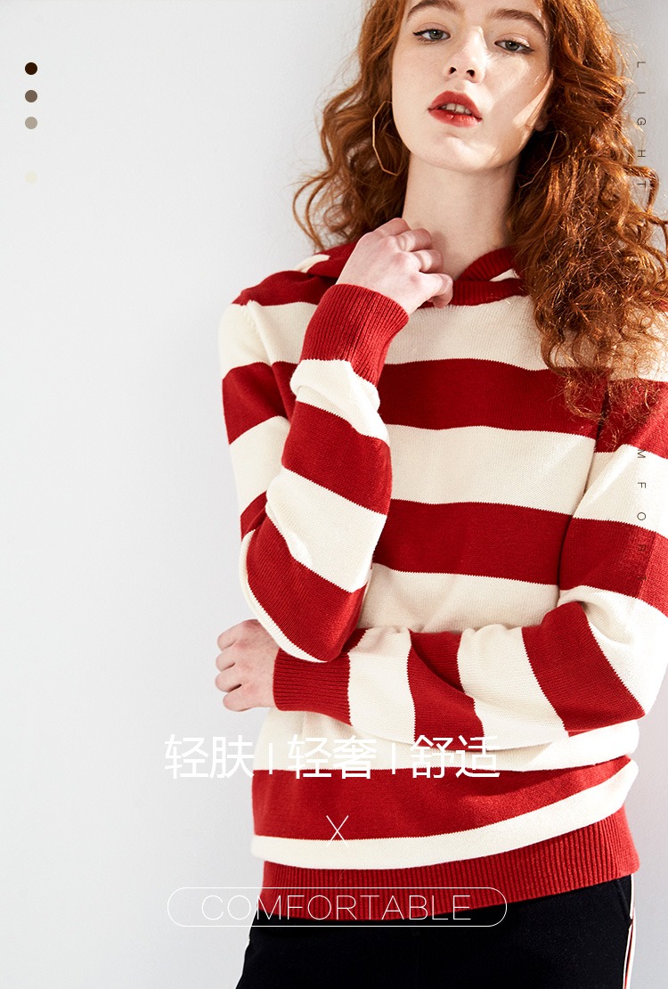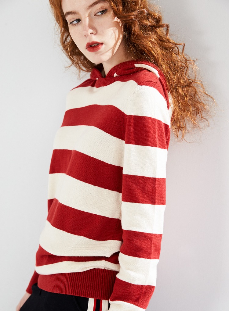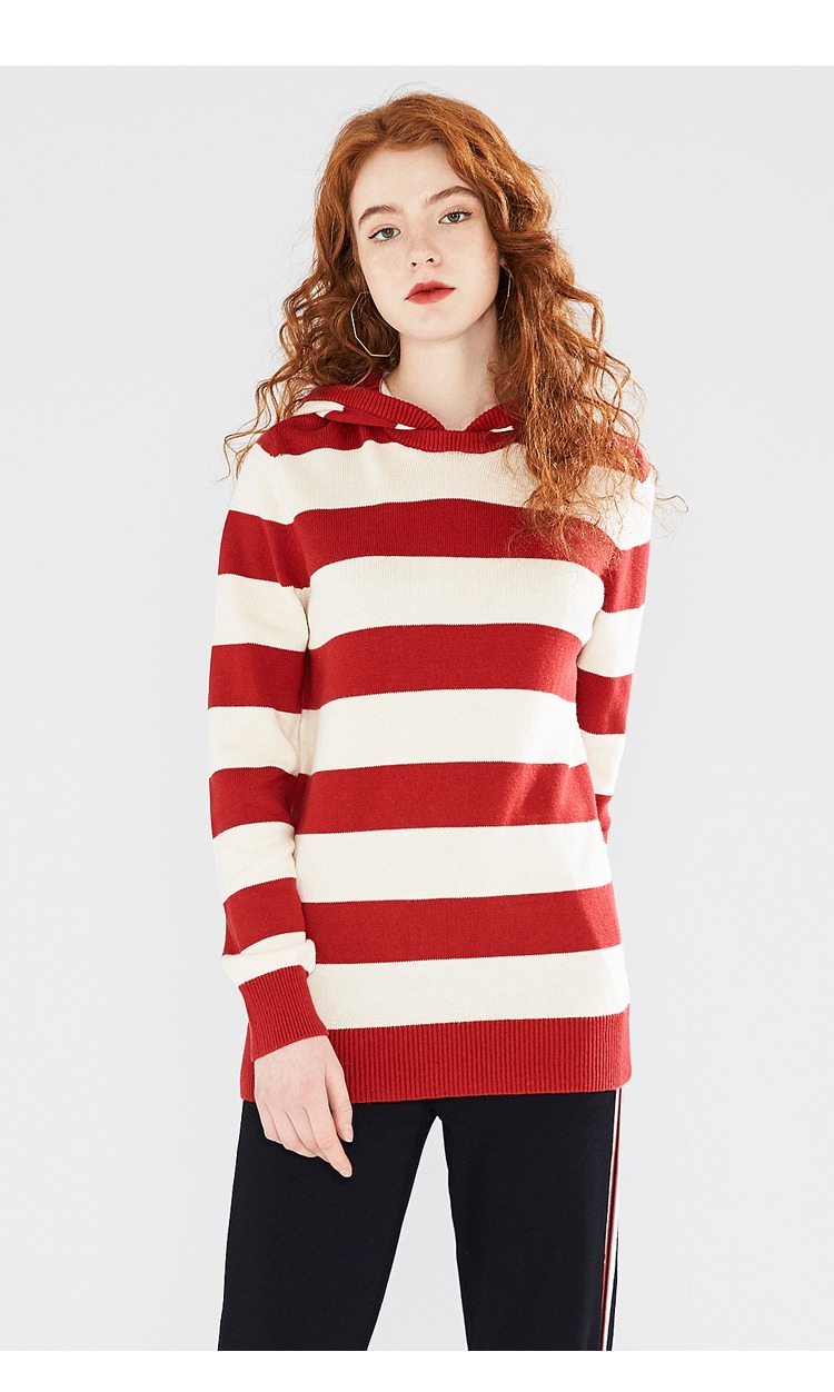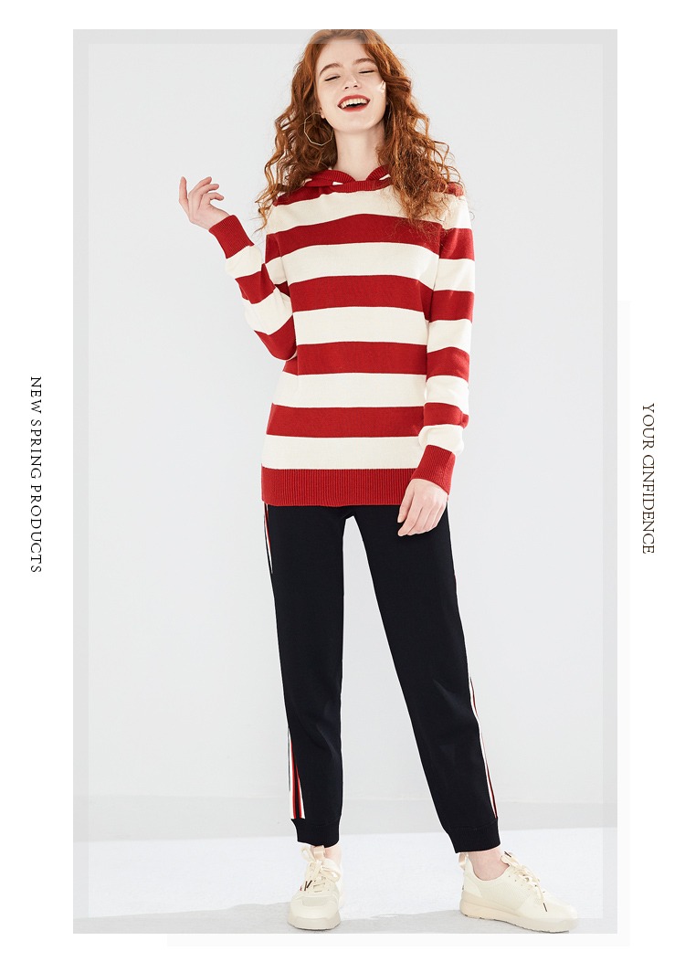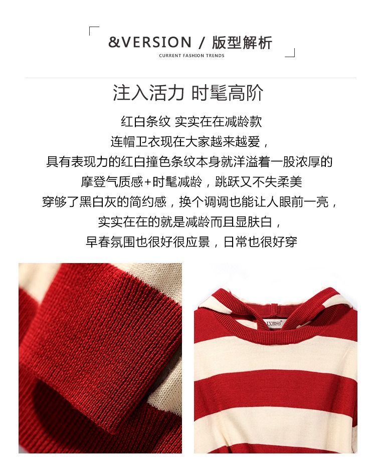 【现货7天】2023春季新款韩版超火cec外套连帽套头宽松针织衫条纹卫衣女