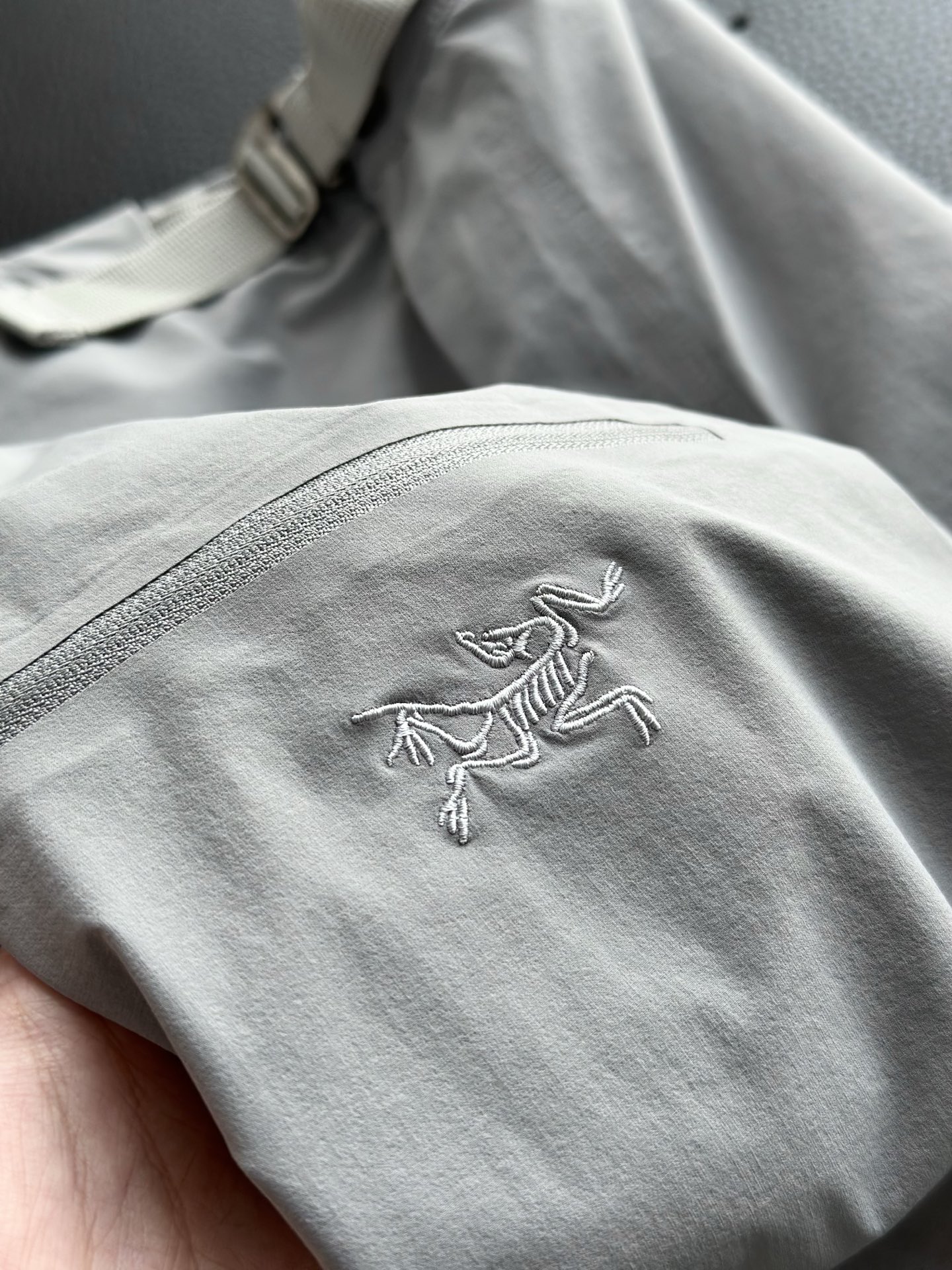 万针刺绣logo,工艺精致,线条流畅细腻,紧密规整,牢固耐穿,微微立体,低调间尽显高级与品牌辨识度