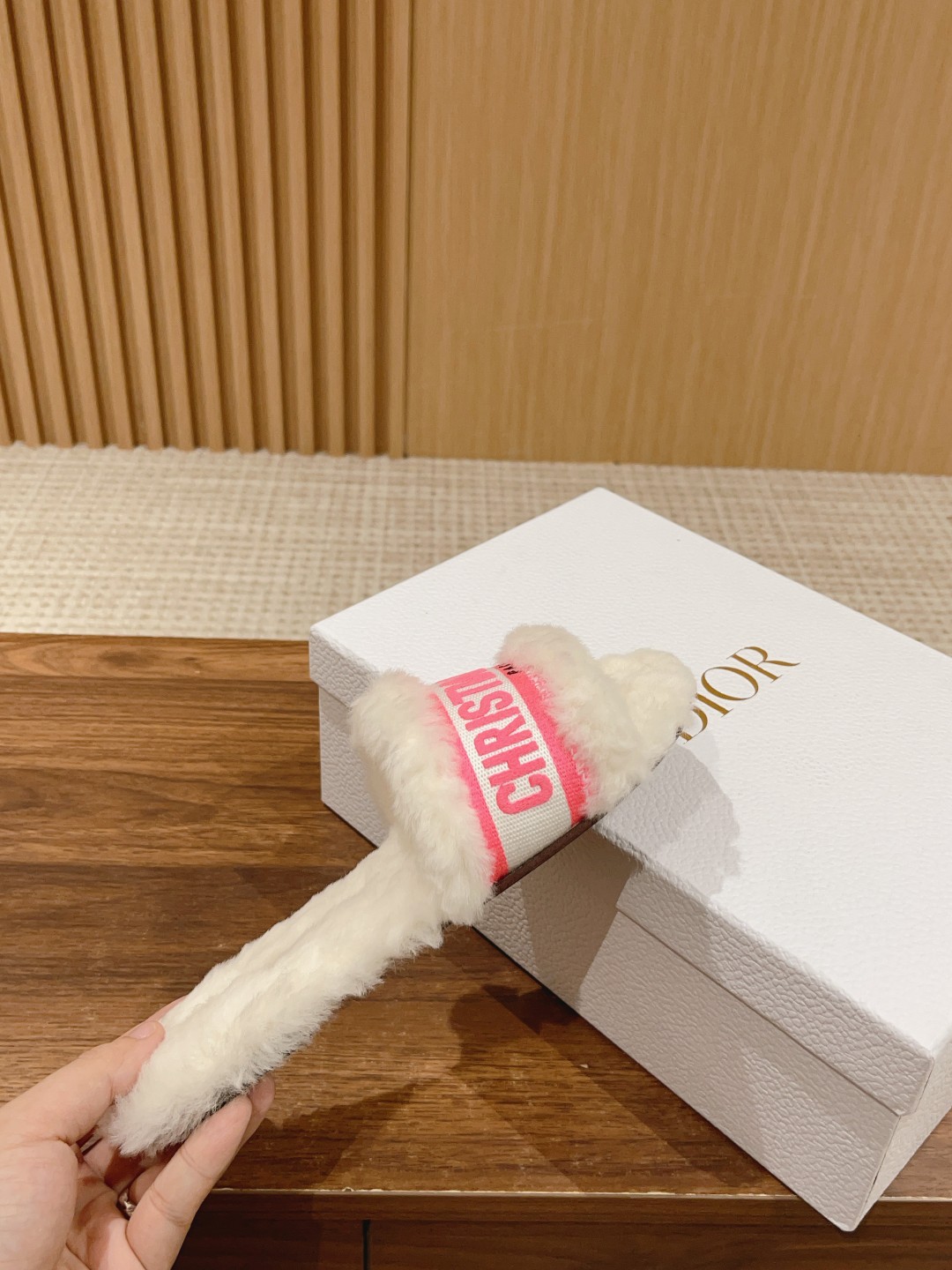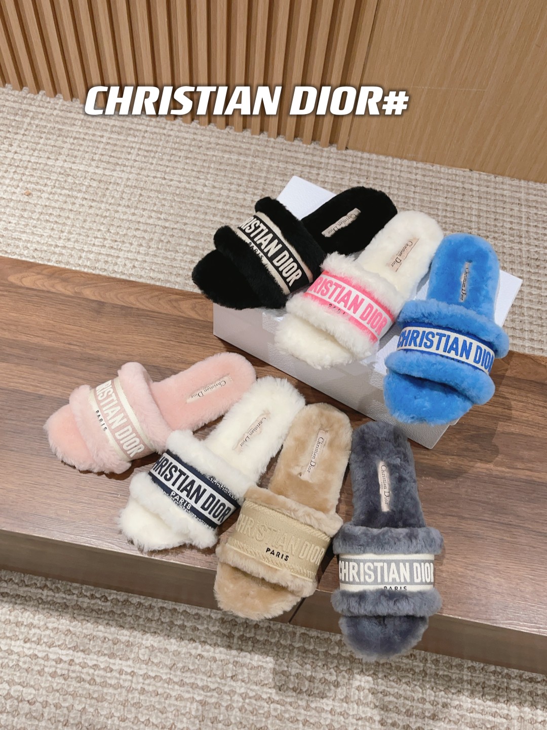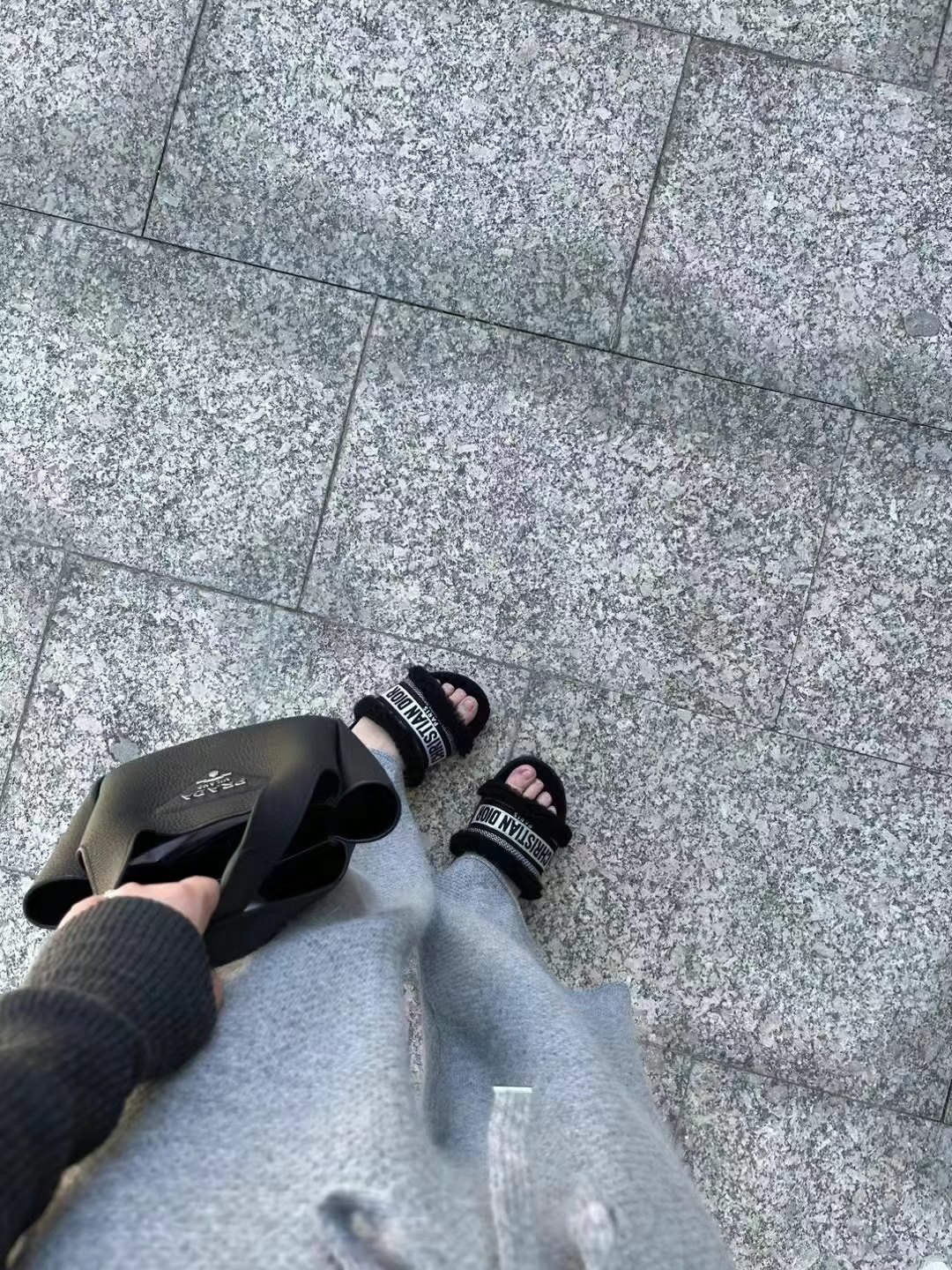 𝐂𝐡𝐫𝐢𝐬𝐭𝐢𝐚𝐧 𝐃𝐢𝐨𝐫 迪奥羊毛平底拖鞋 让我重新爱了它一次!这季节美鞋太多这款毛拖真的是让我无法自拔真太可爱了~ 原版真皮鞋底 Size:35-39(40/42可定制)
