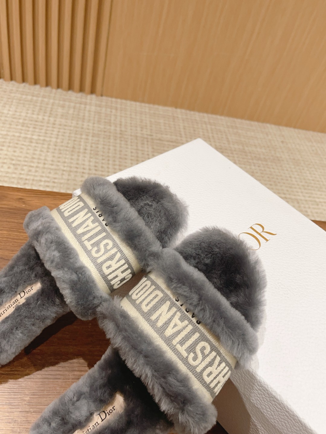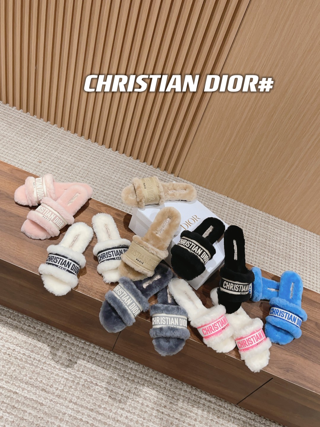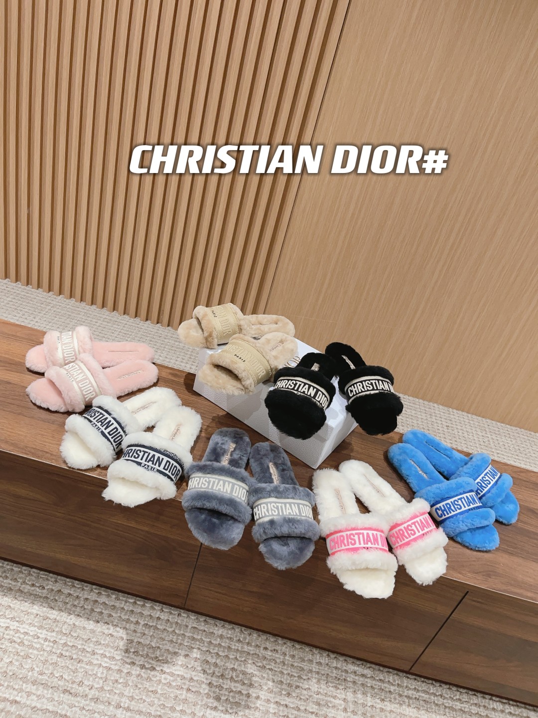 𝐂𝐡𝐫𝐢𝐬𝐭𝐢𝐚𝐧 𝐃𝐢𝐨𝐫 迪奥羊毛平底拖鞋 让我重新爱了它一次!这季节美鞋太多这款毛拖真的是让我无法自拔真太可爱了~ 原版真皮鞋底 Size:35-39(40/42可定制)