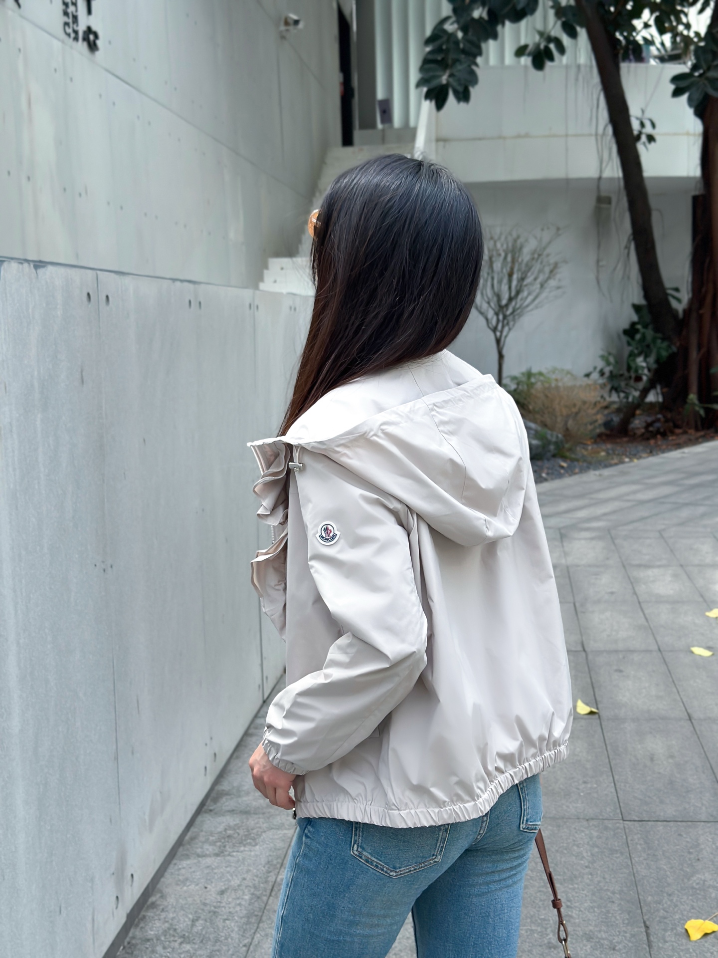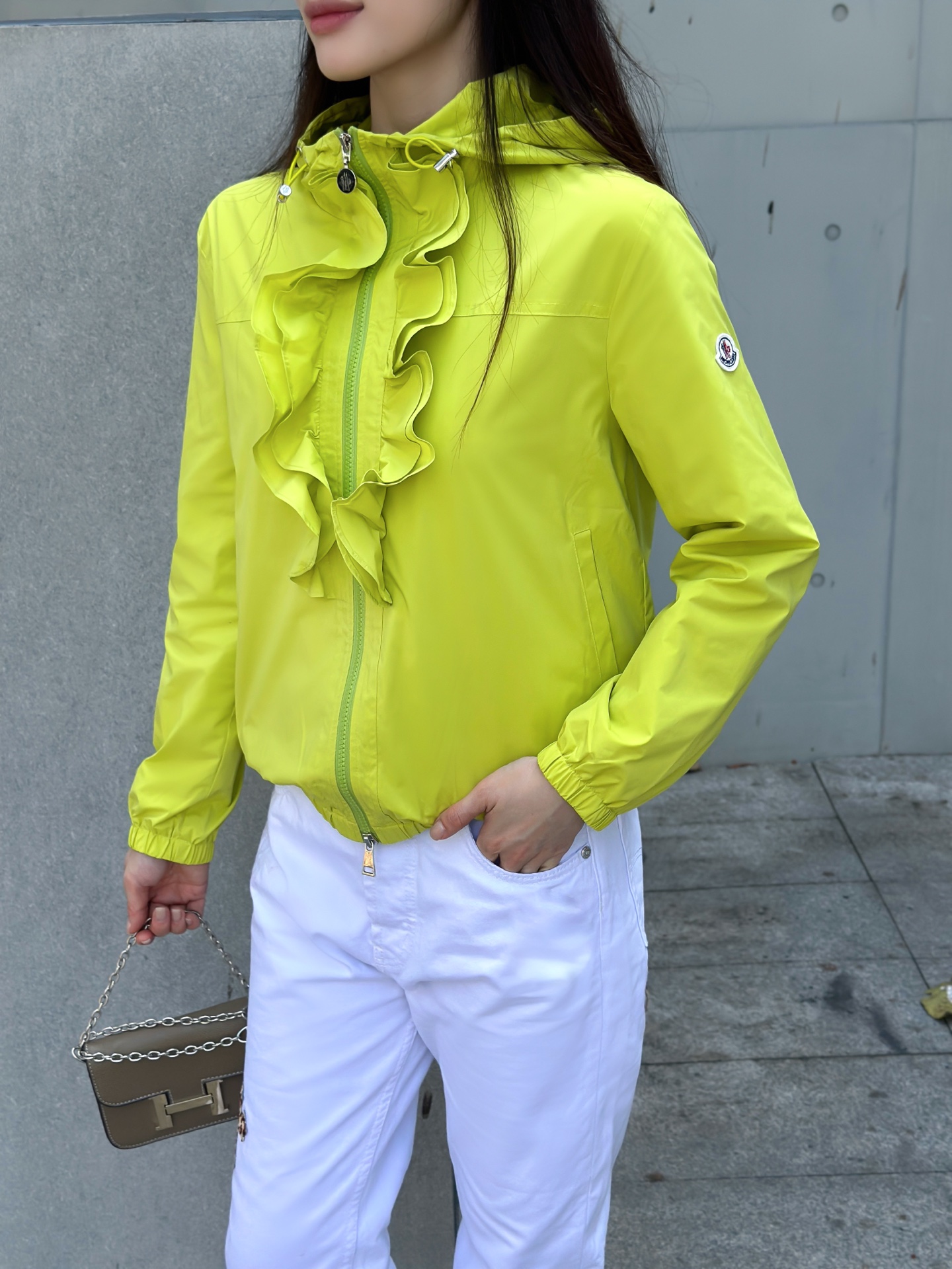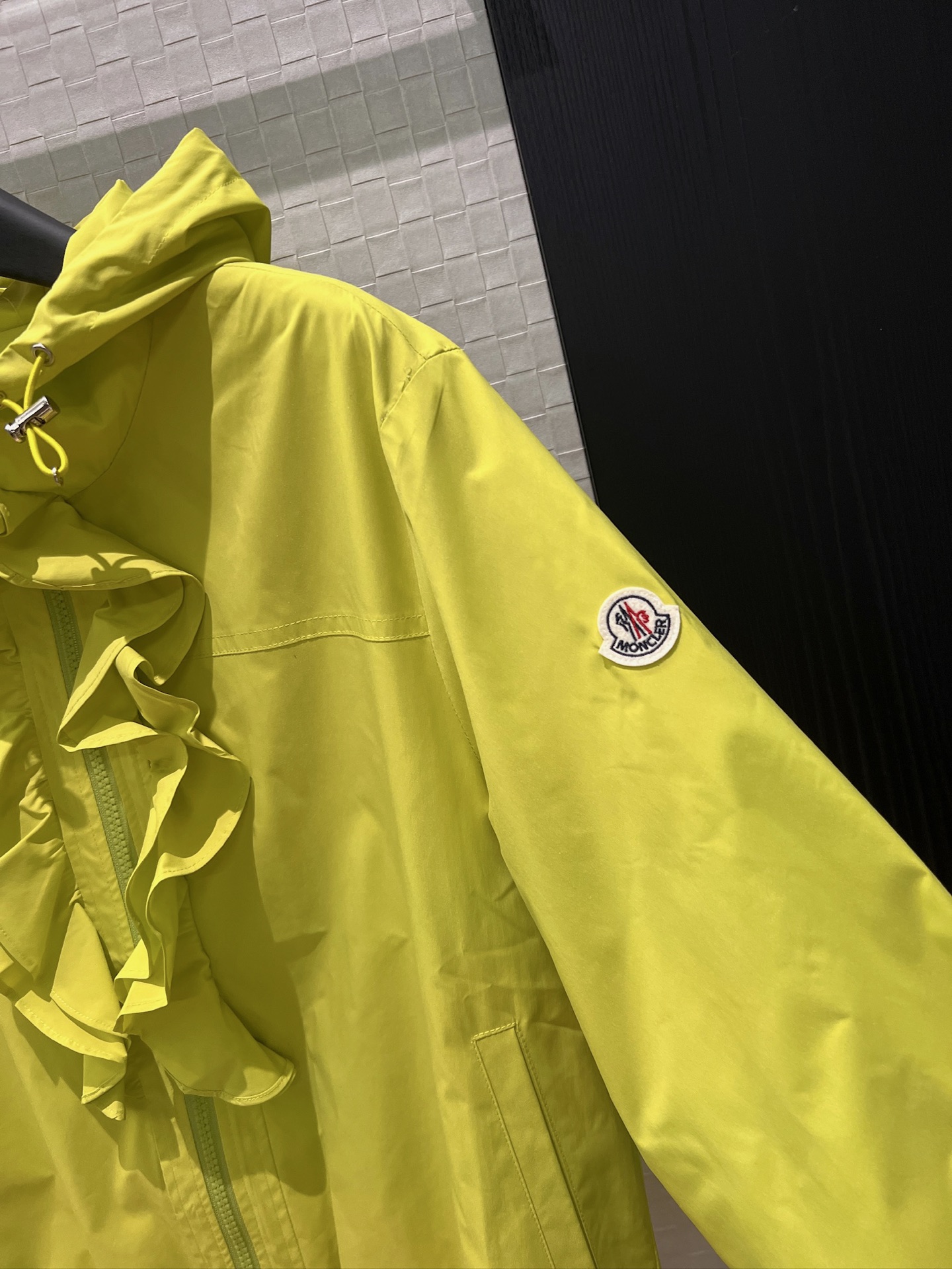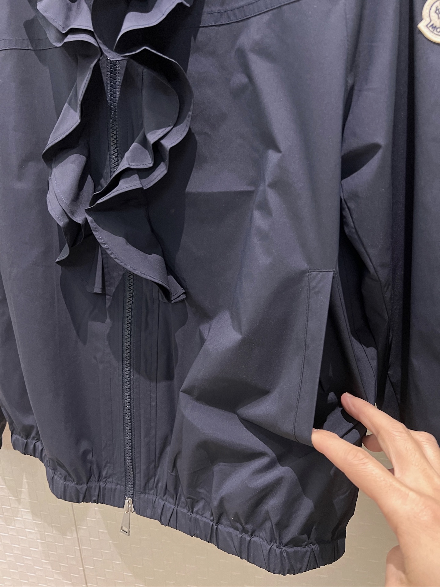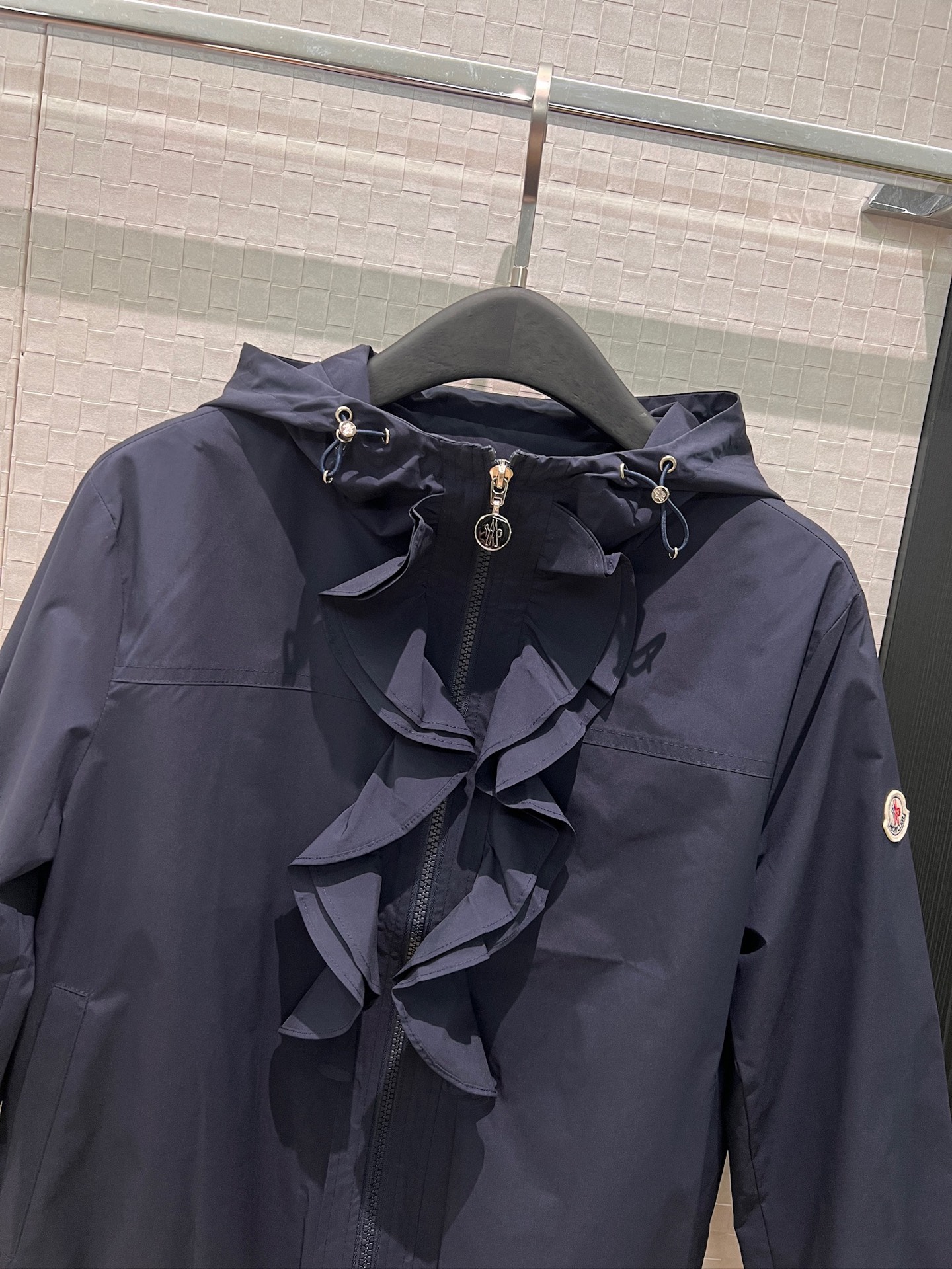 立体荷叶边连帽风衣外套 经典logo袖标装饰🌺下摆松紧收腰设计 袖口松紧 五金配件开模🌈宽松休闲 深蓝草绿杏色 S-XL