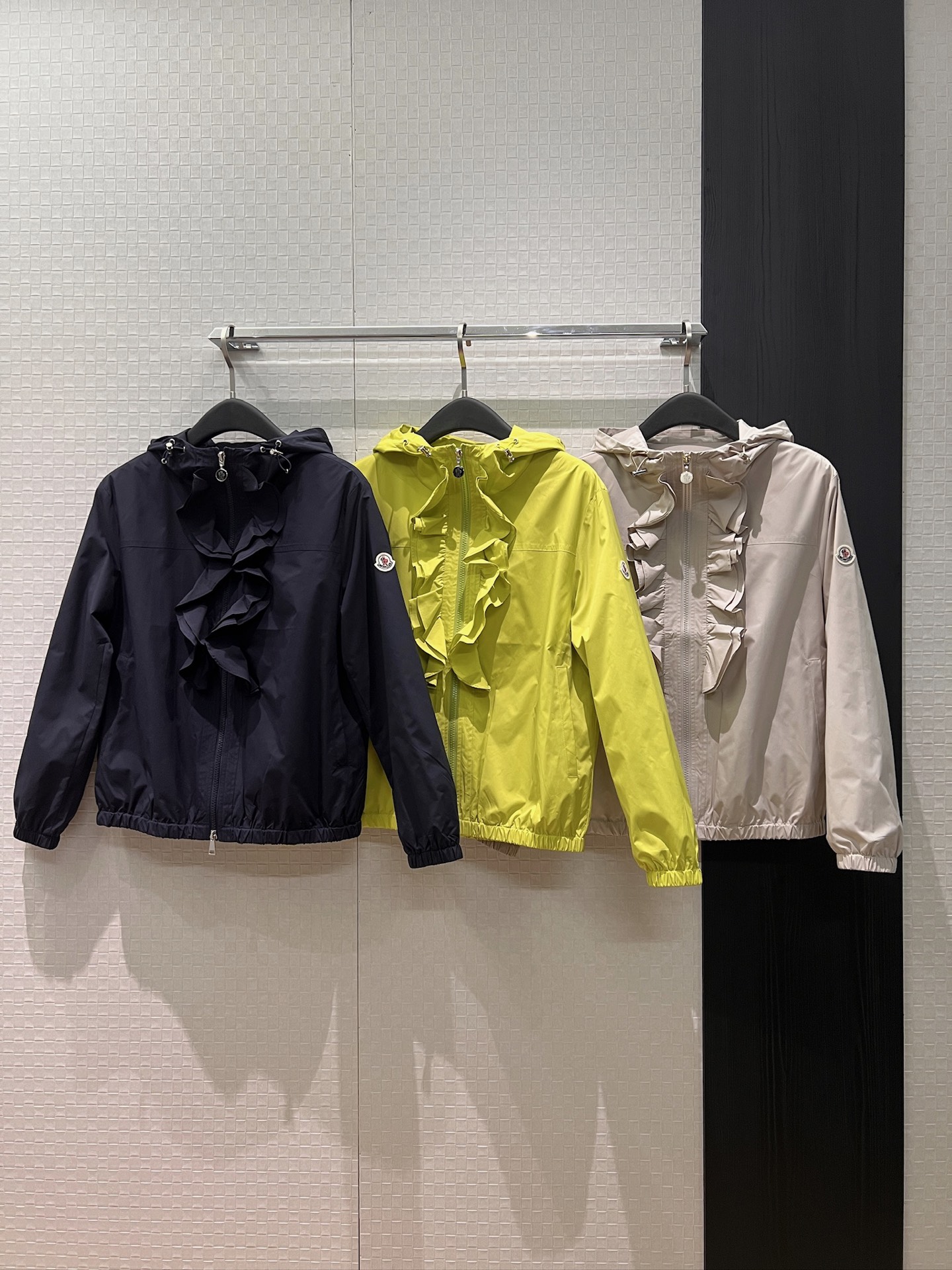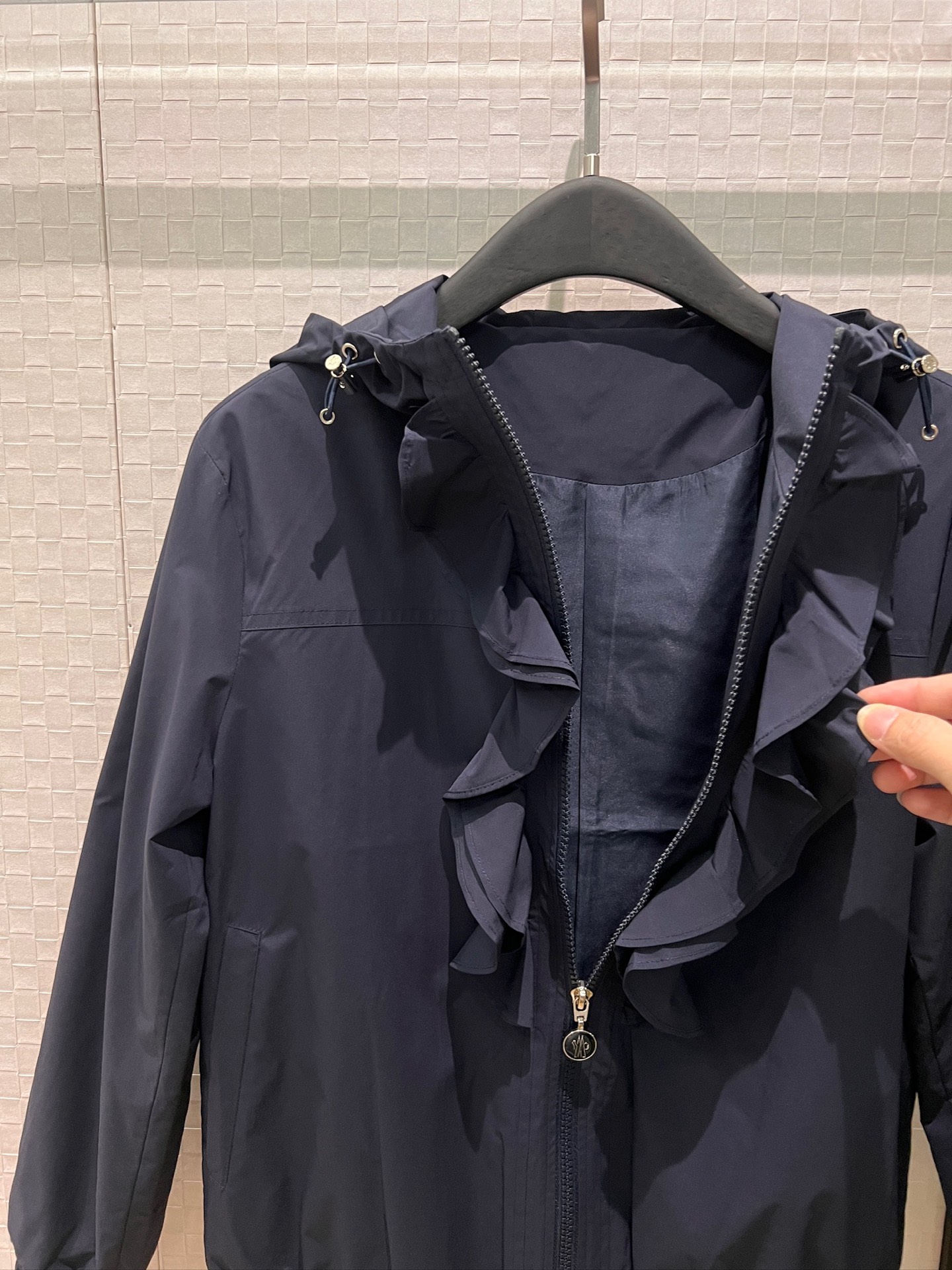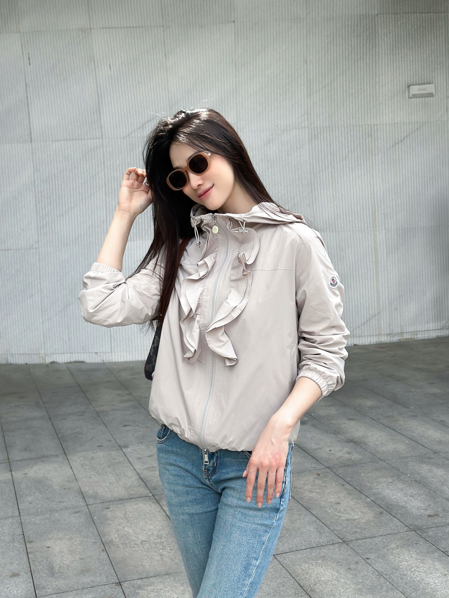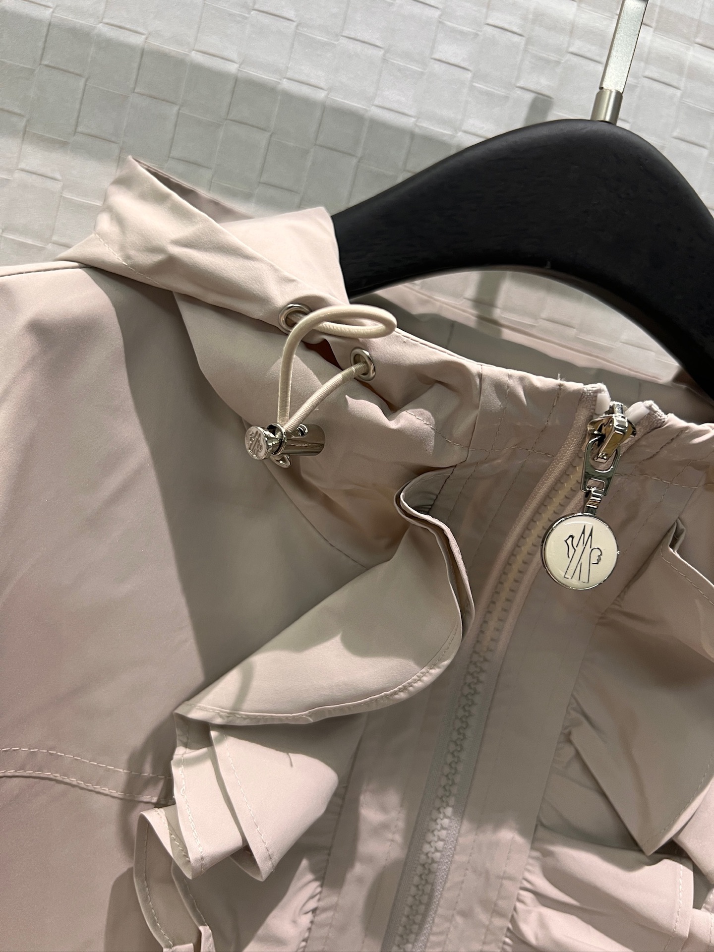立体荷叶边连帽风衣外套 经典logo袖标装饰🌺下摆松紧收腰设计 袖口松紧 五金配件开模🌈宽松休闲 深蓝草绿杏色 S-XL