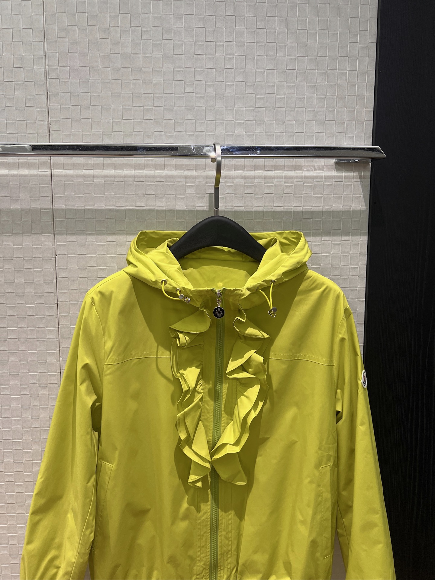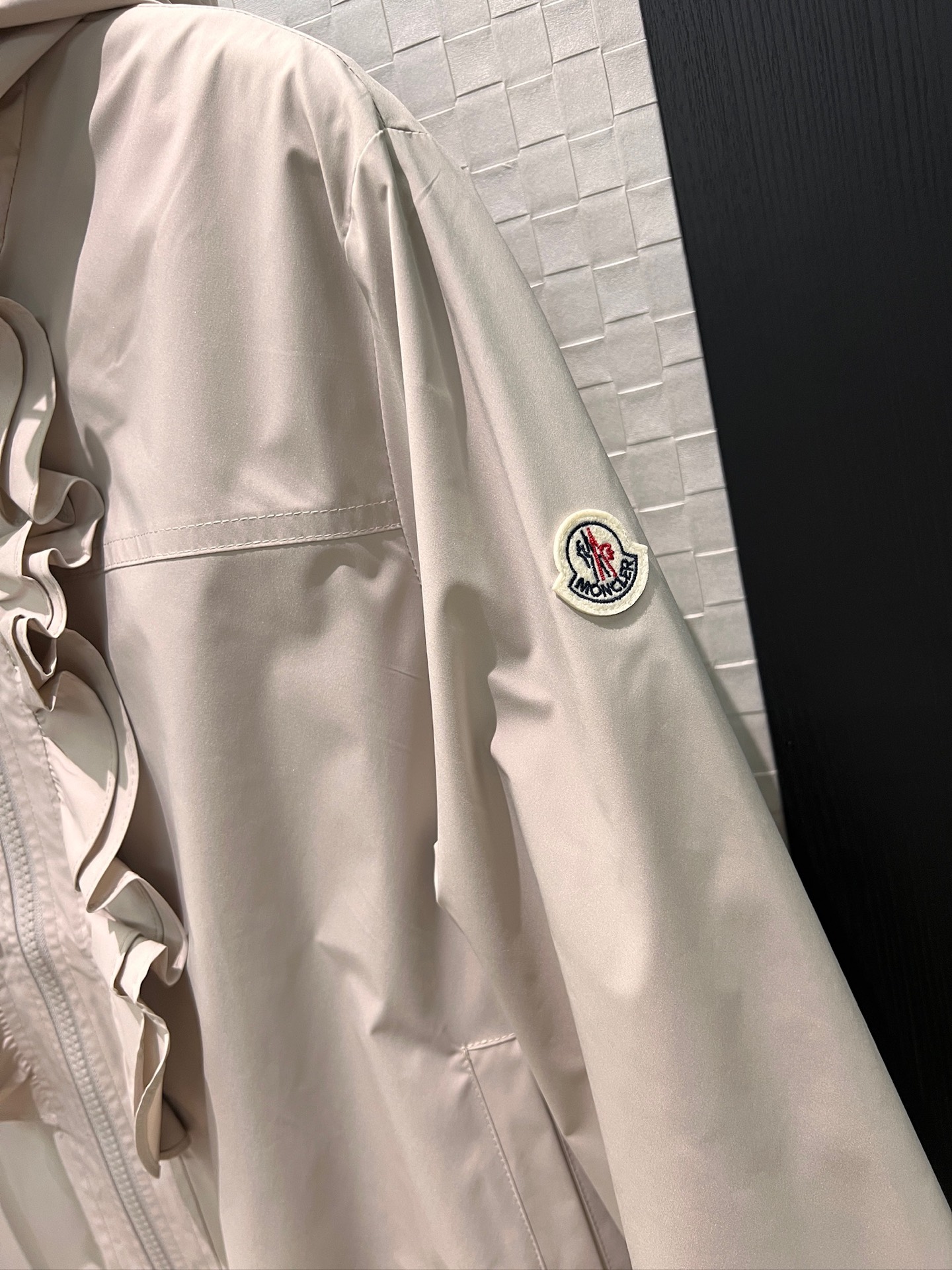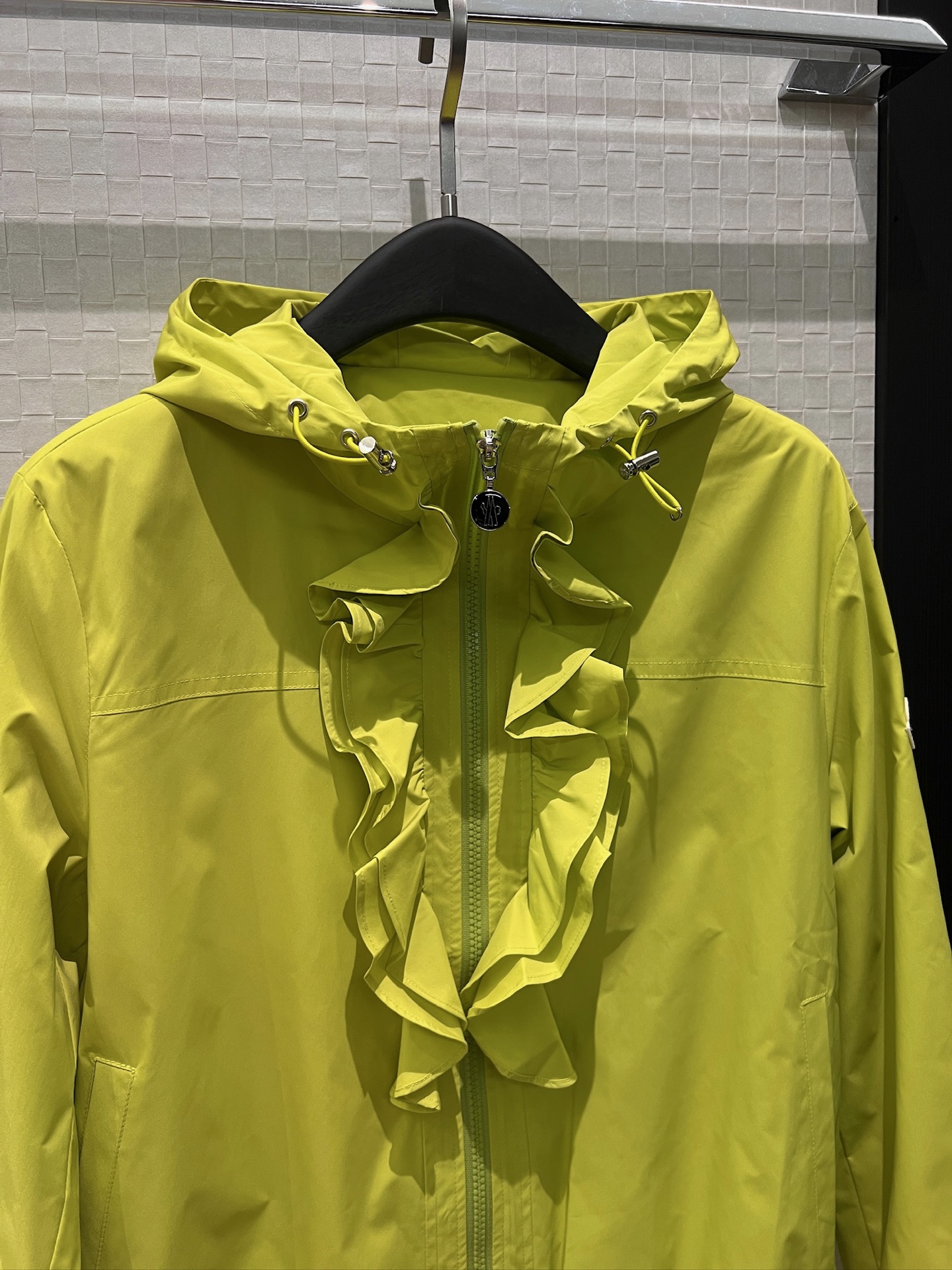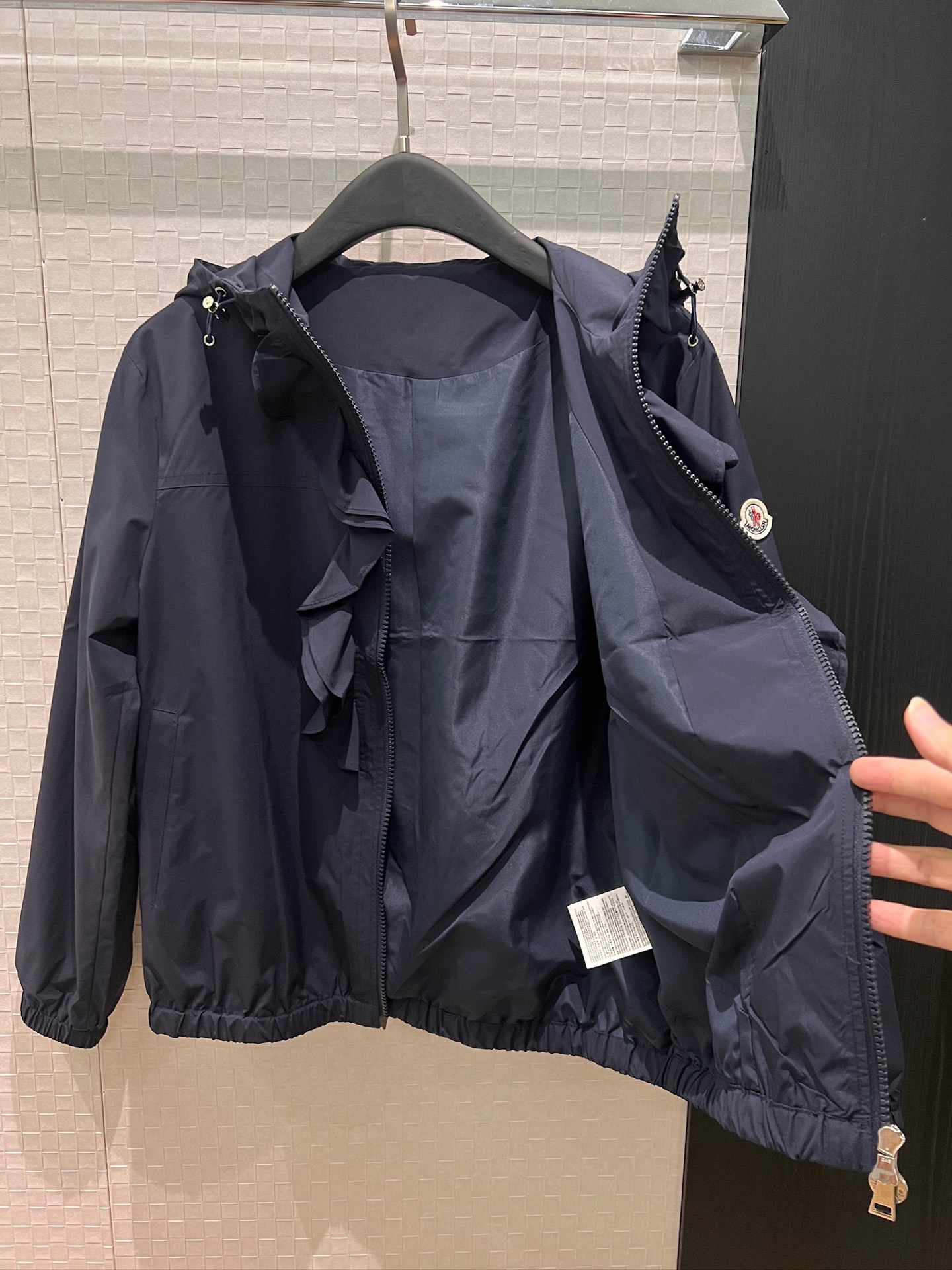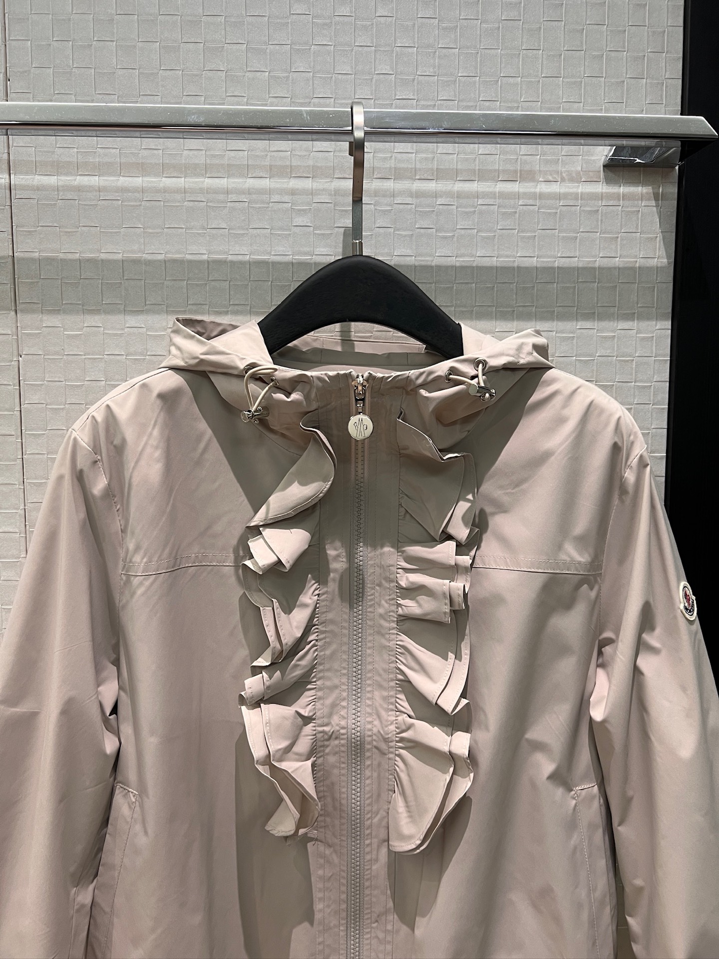 立体荷叶边连帽风衣外套 经典logo袖标装饰🌺下摆松紧收腰设计 袖口松紧 五金配件开模🌈宽松休闲 深蓝草绿杏色 S-XL