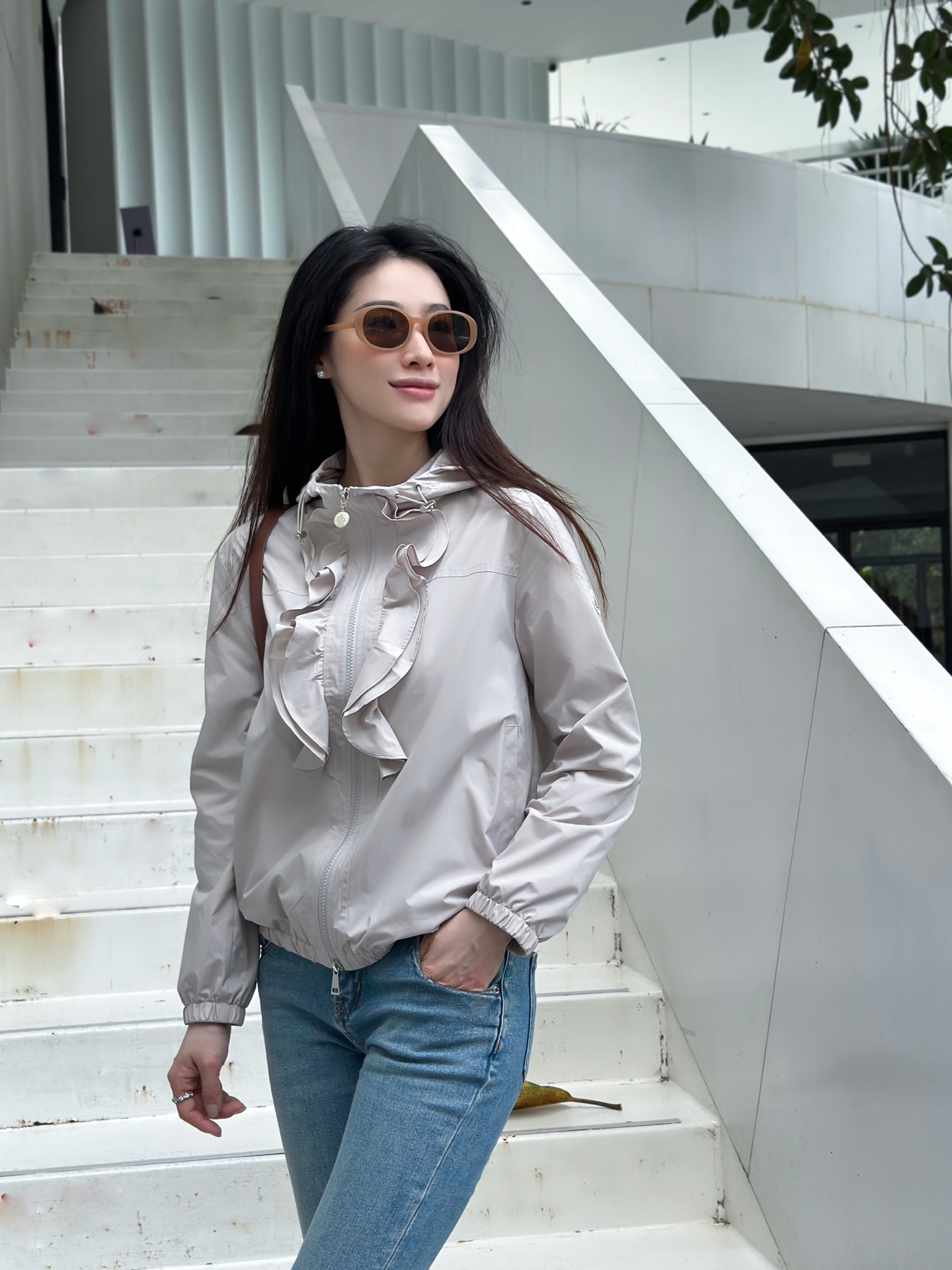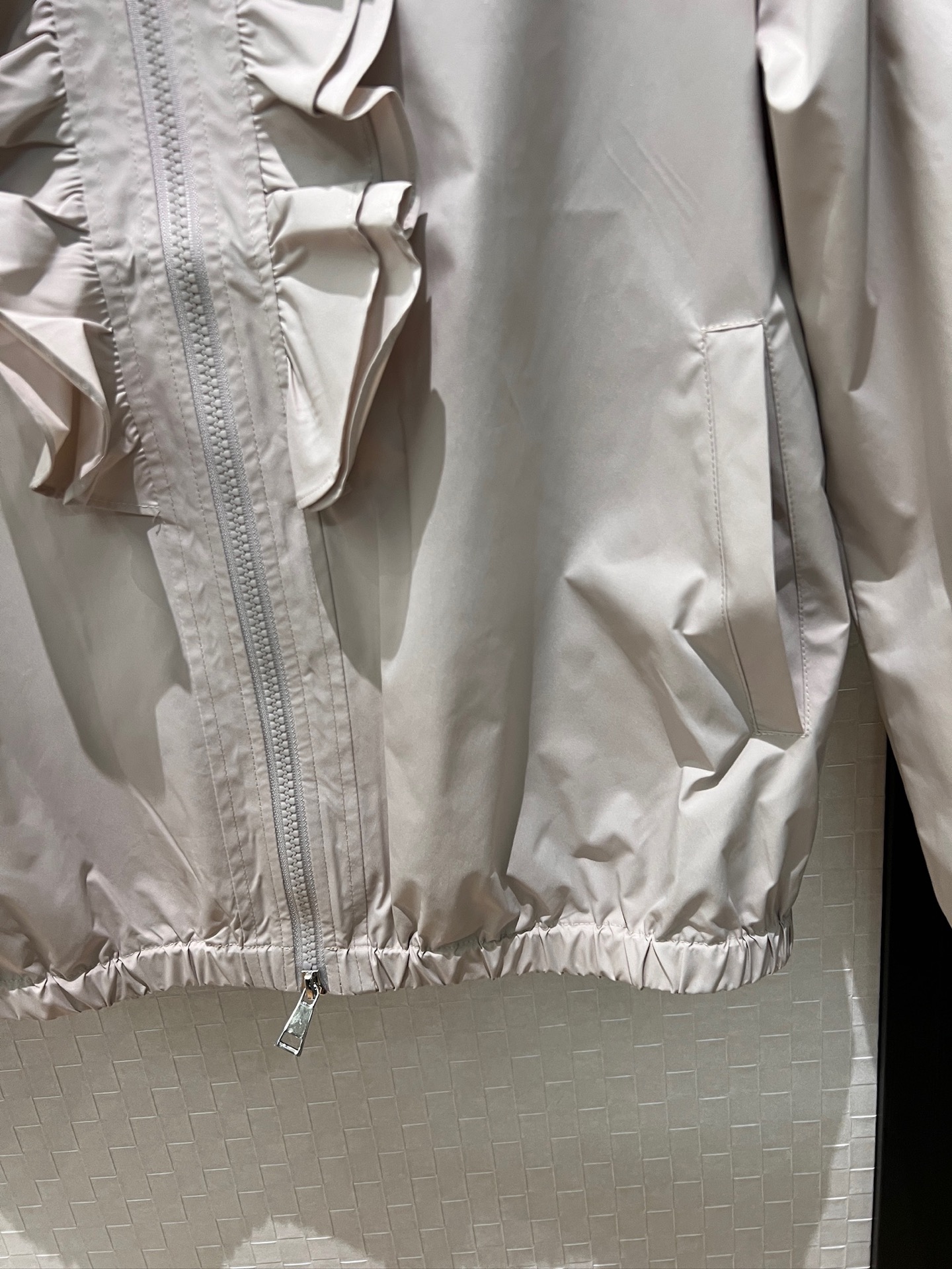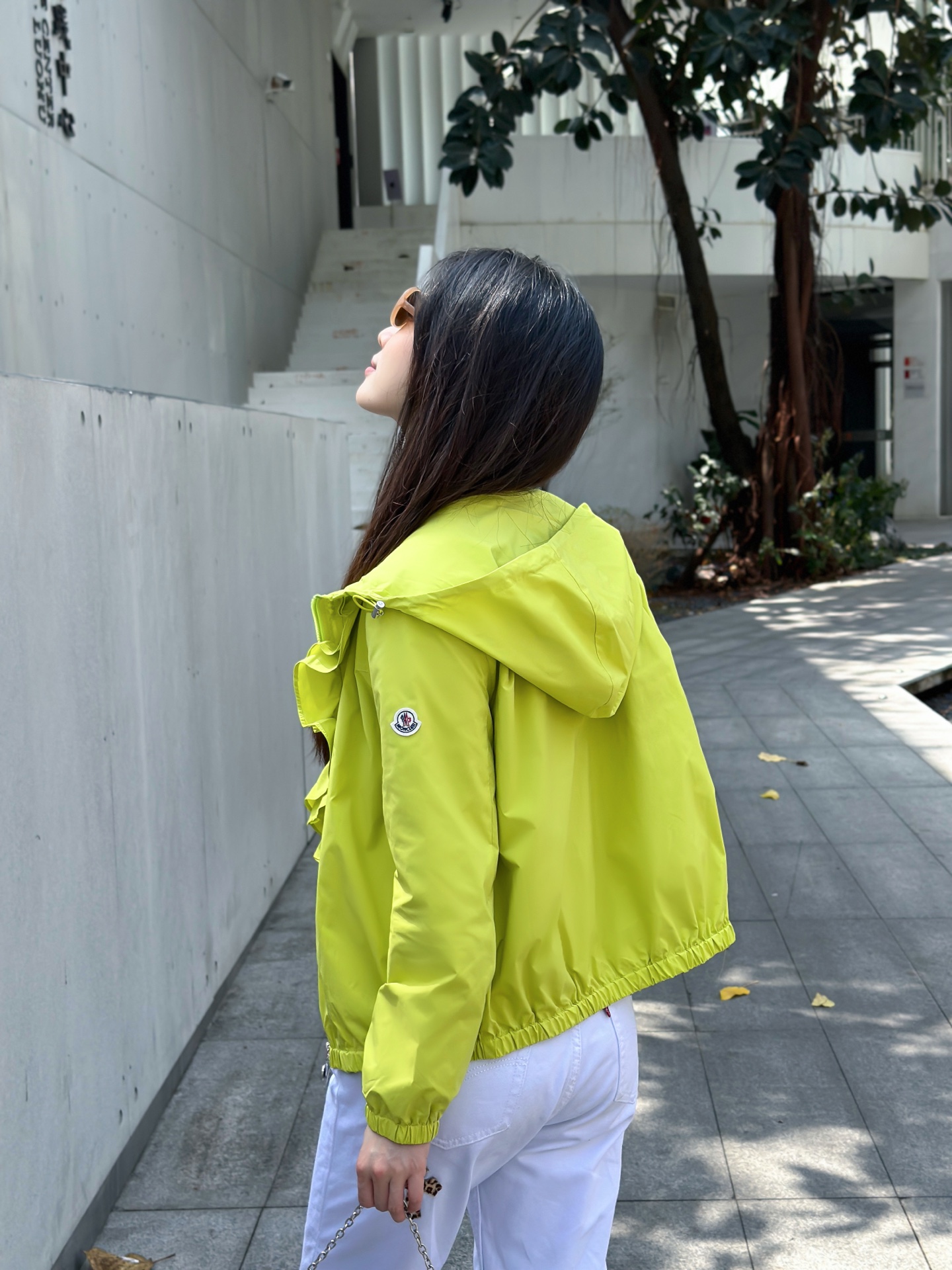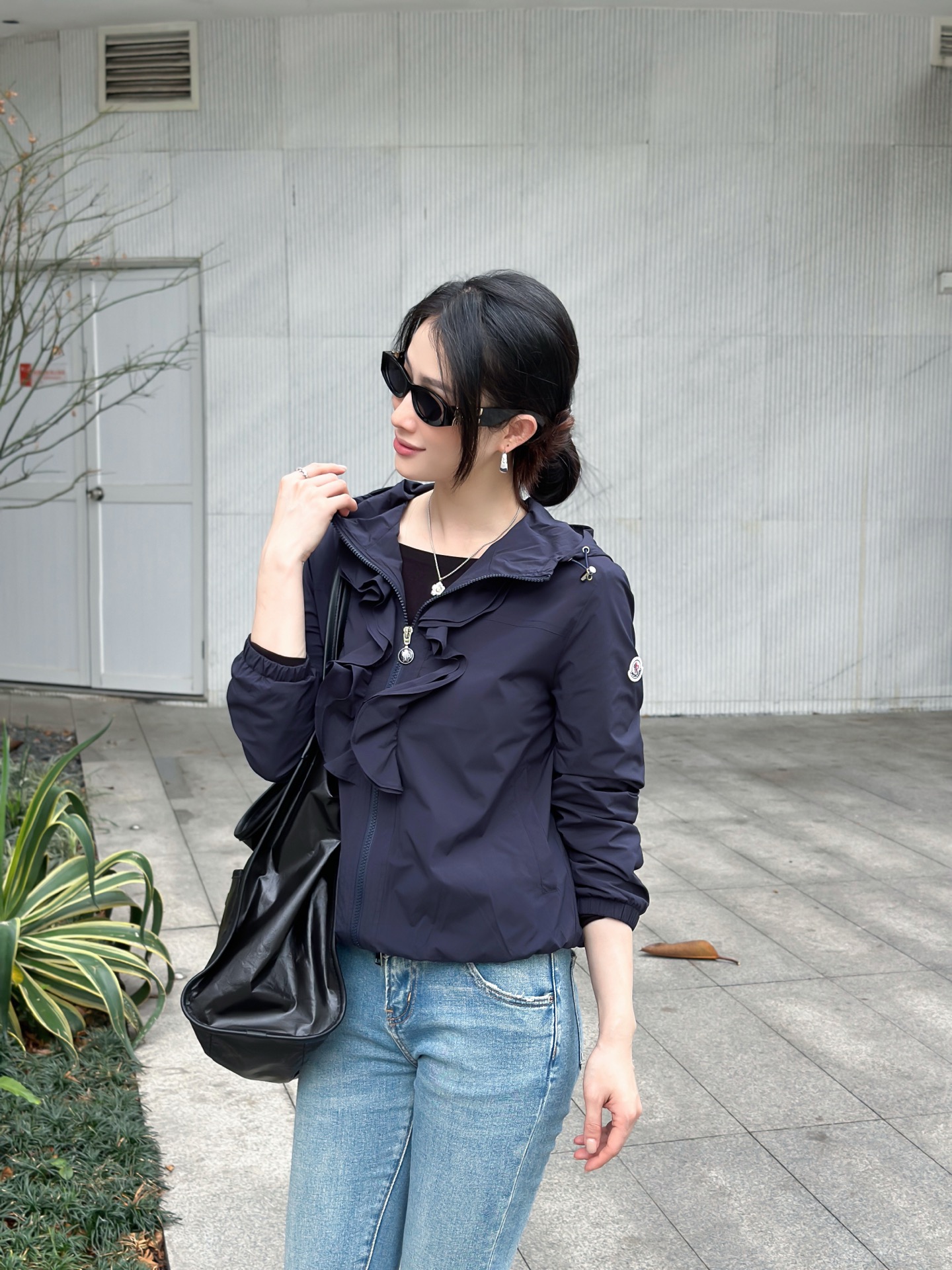 立体荷叶边连帽风衣外套 经典logo袖标装饰🌺下摆松紧收腰设计 袖口松紧 五金配件开模🌈宽松休闲 深蓝草绿杏色 S-XL