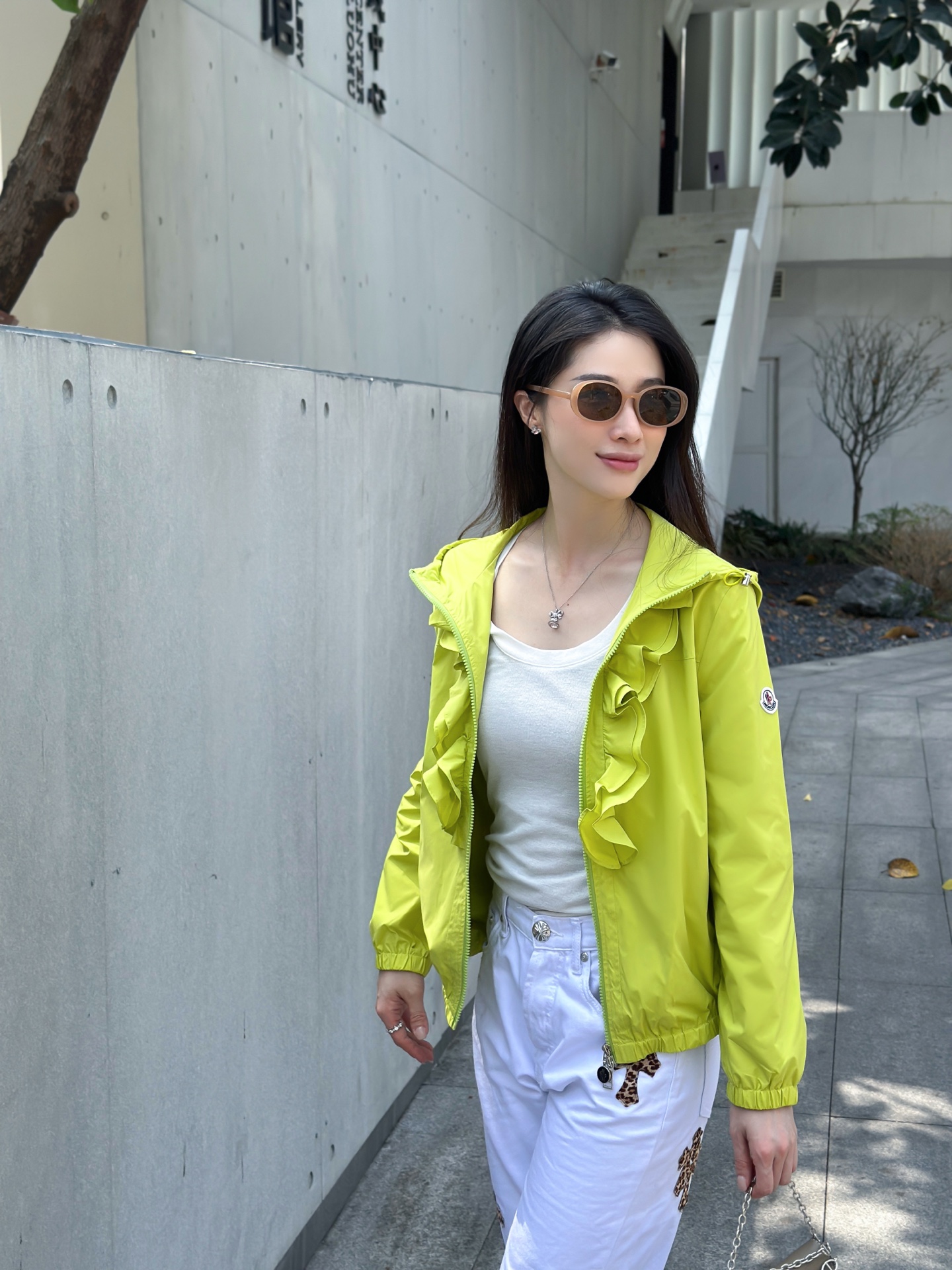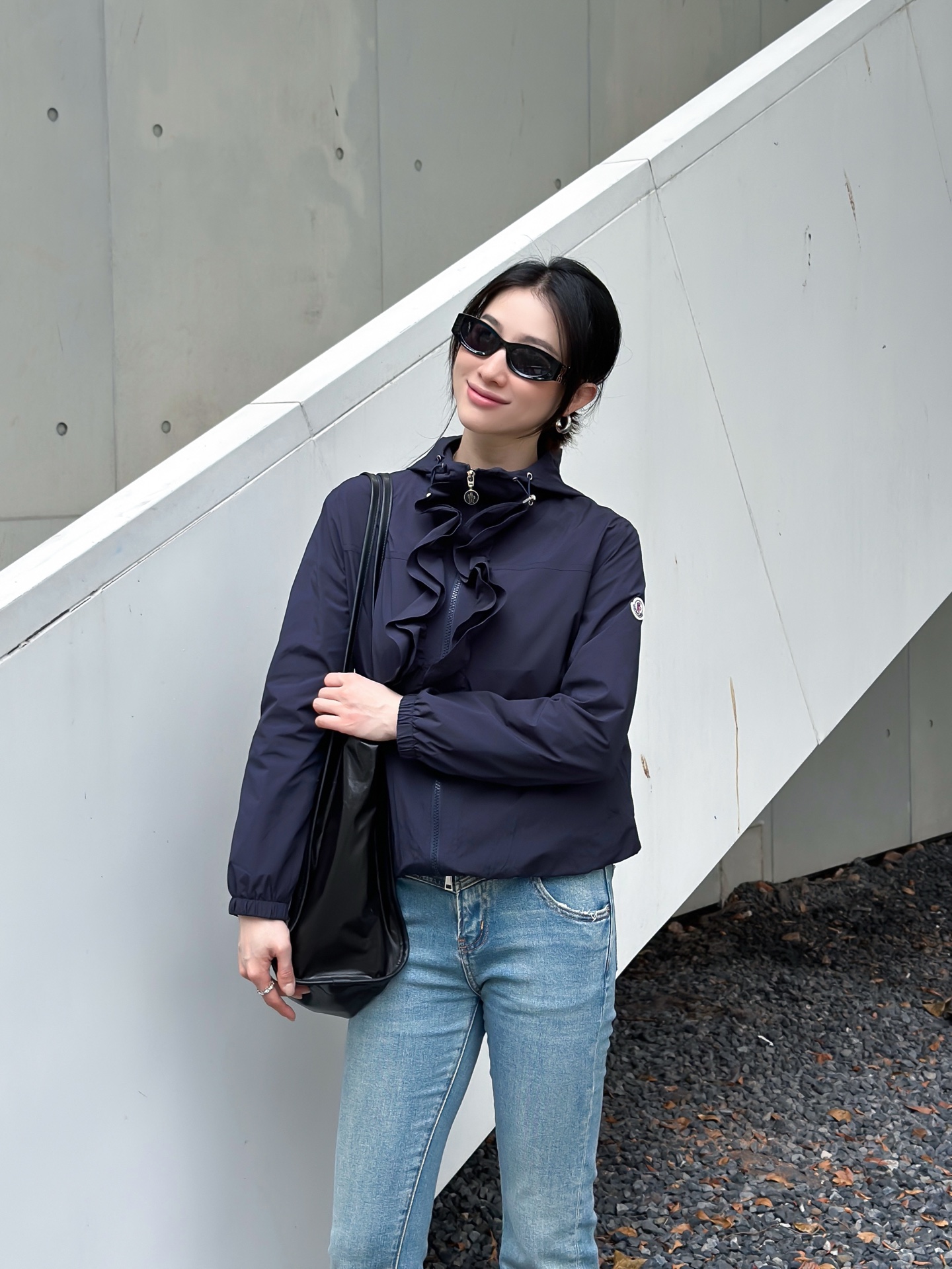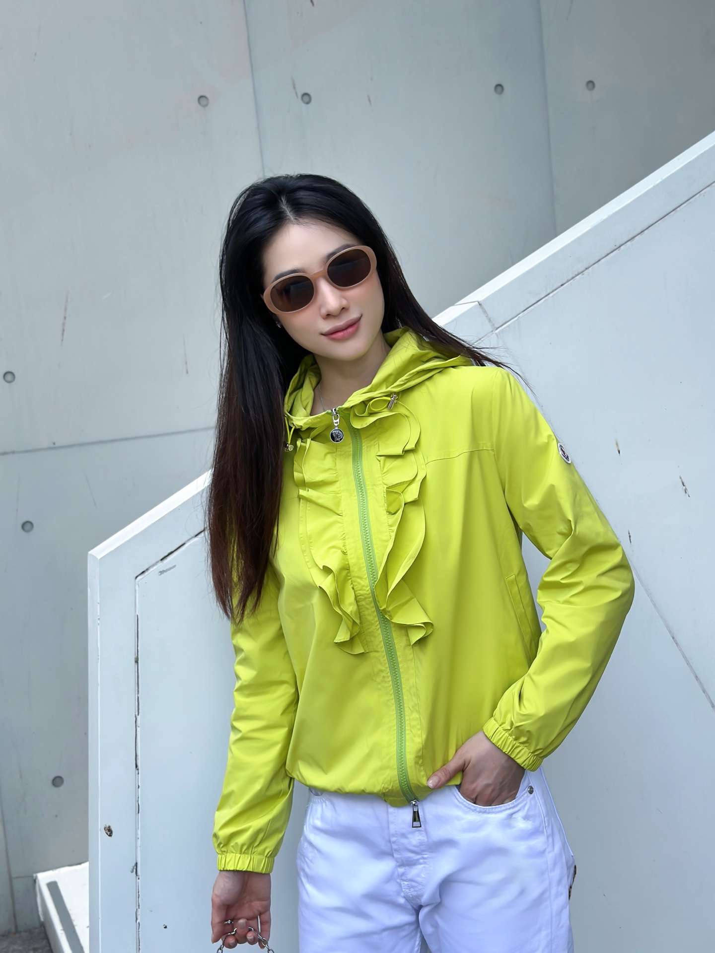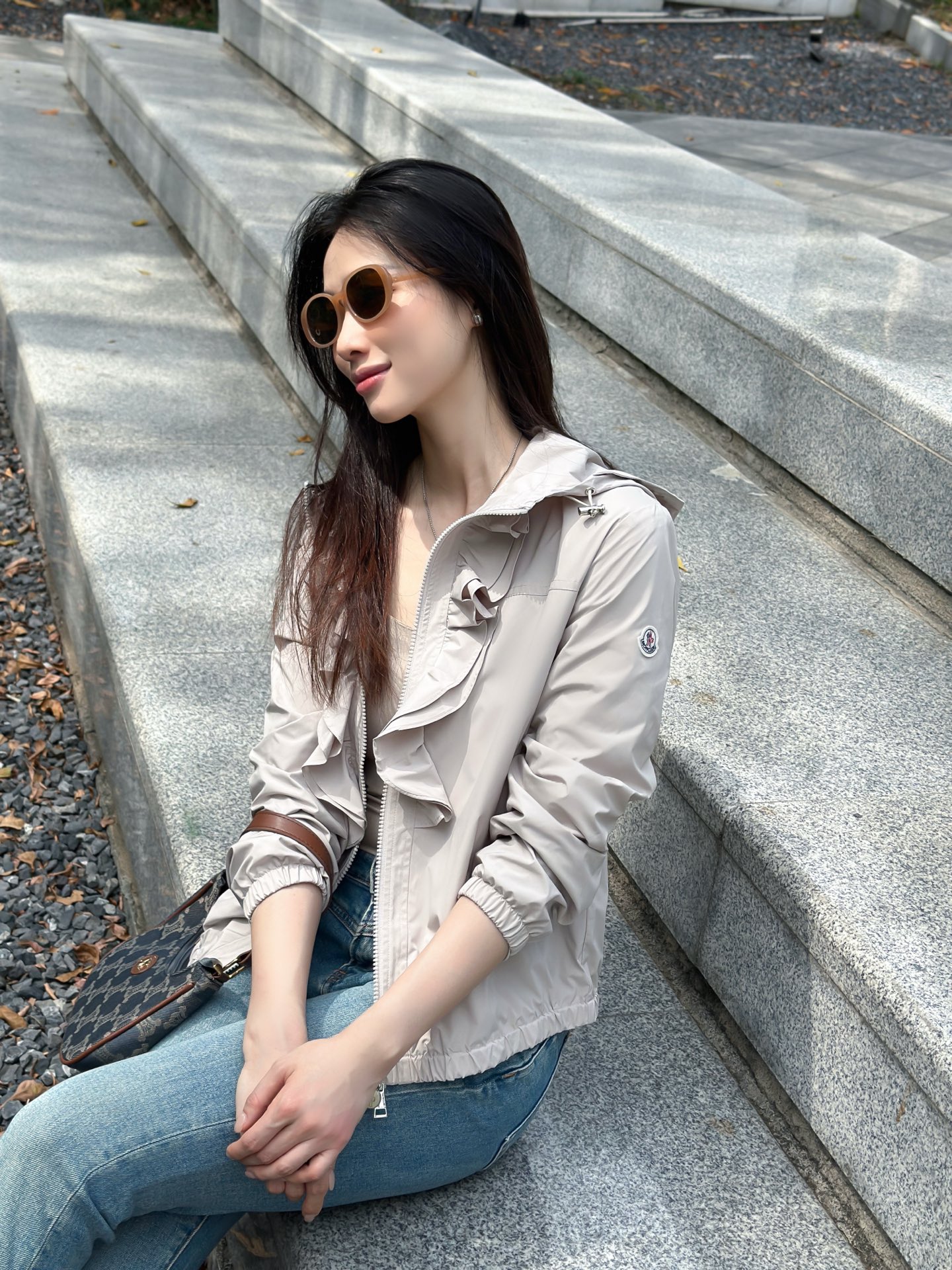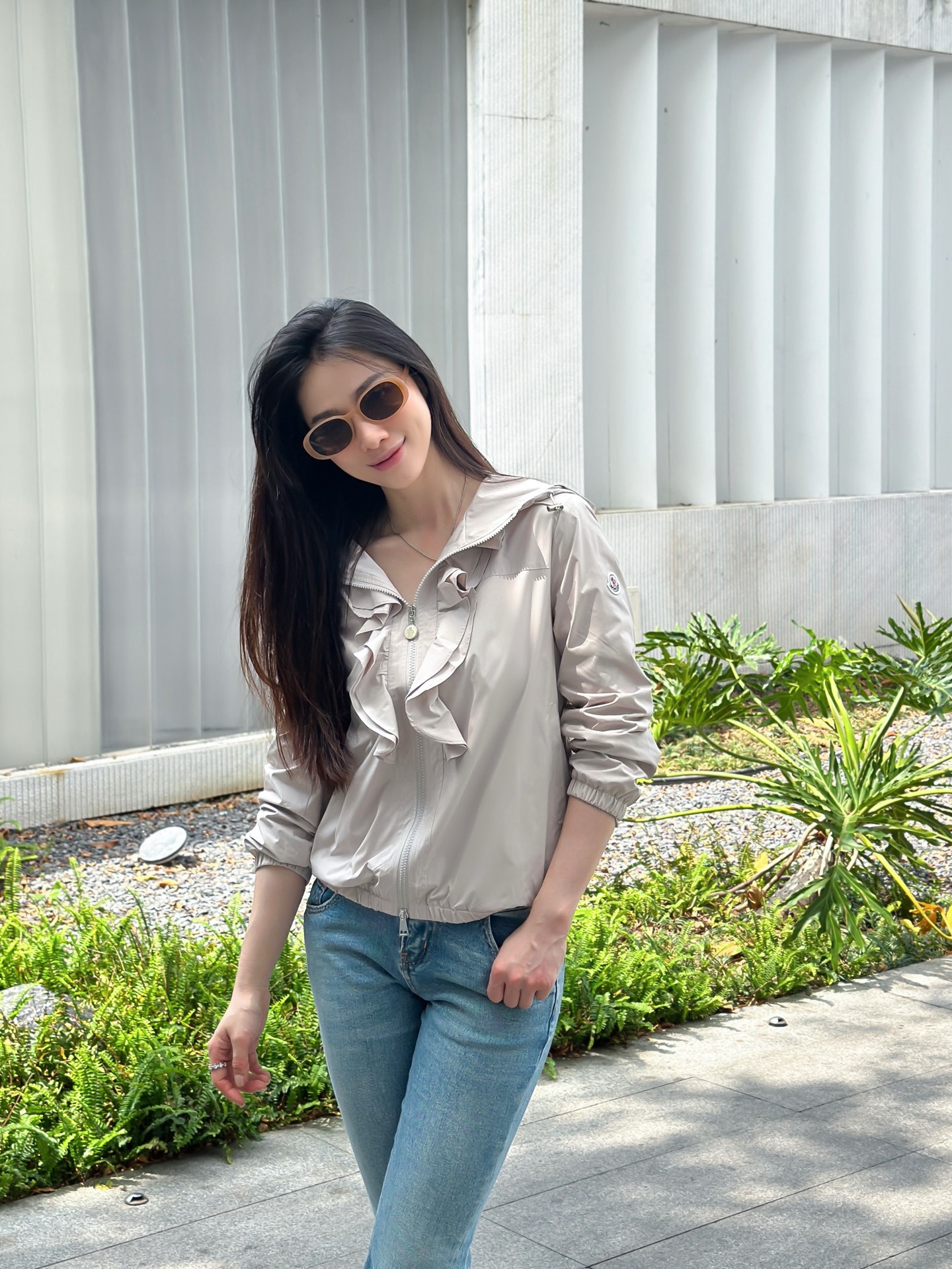 立体荷叶边连帽风衣外套 经典logo袖标装饰🌺下摆松紧收腰设计 袖口松紧 五金配件开模🌈宽松休闲 深蓝草绿杏色 S-XL