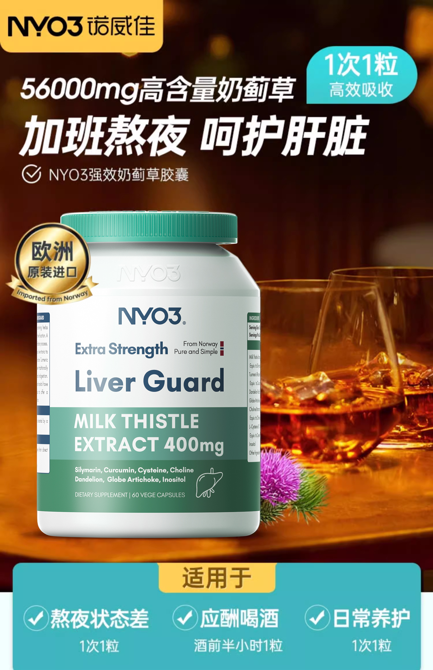 NYO3护肝片挪威进口140倍奶蓟草小绿盾水飞蓟素加班熬夜应酬保健