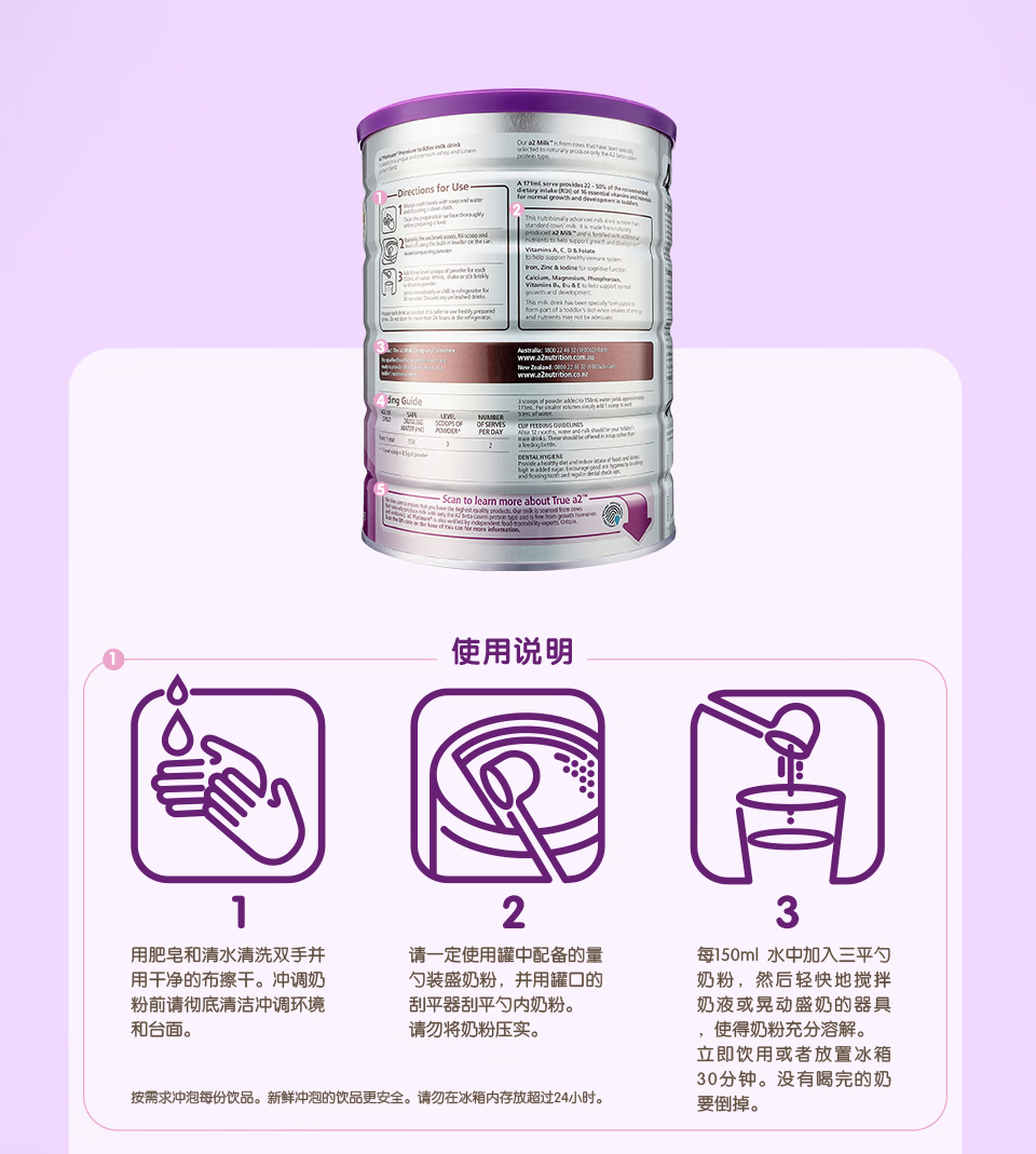 澳洲A2婴幼儿配方奶粉3段900g(适合1-4岁)