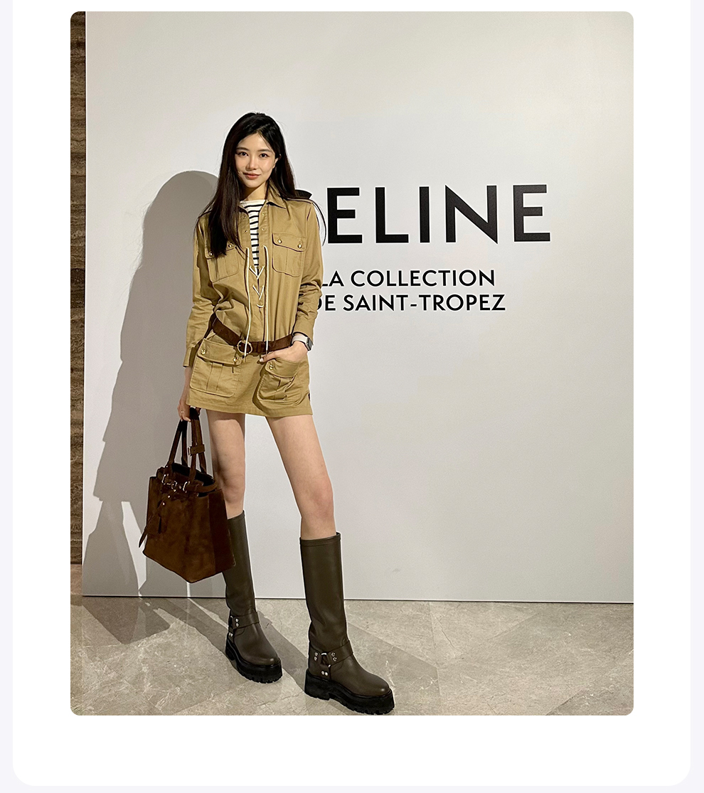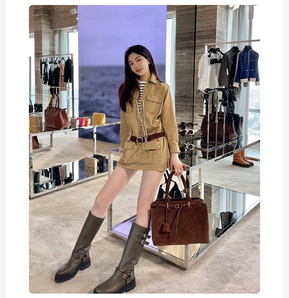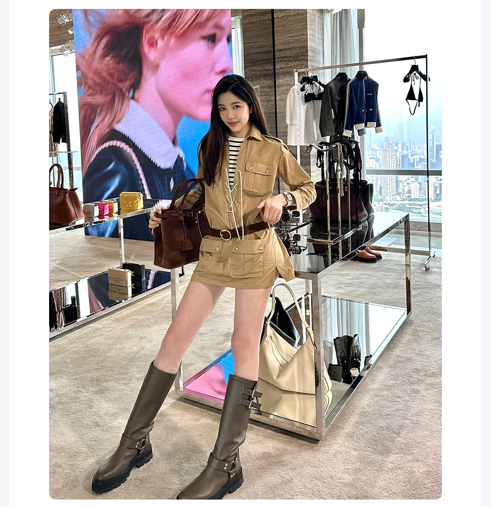 ROMI STUDIO“复古英伦”高定粗跟皮带扣复古绿不过膝长靴23AWS005
