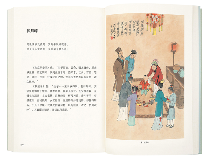 两宋以后,男孩一周岁生日当天,家人为其准备抓周活动,视他拿到手中的物品为其品性前途的征兆。