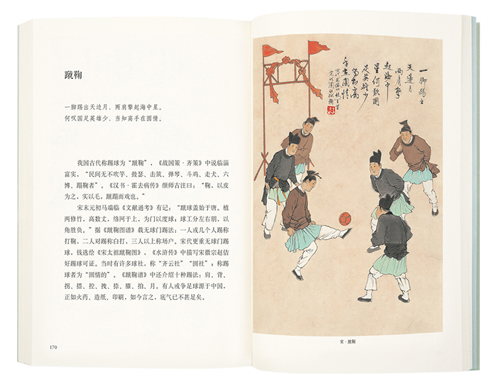 古人蹴鞠的记载,战国已有,至宋盛极一时。鞠,用皮革制成,内部用毛填充。 内文图片展示: