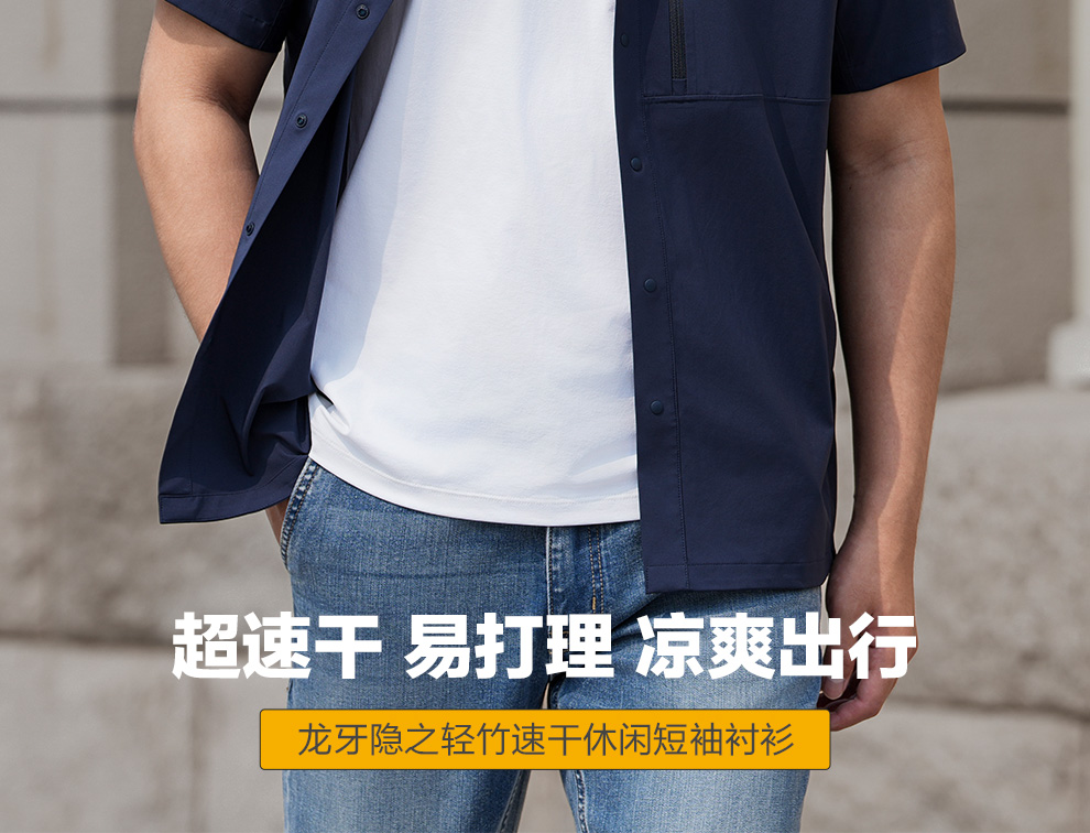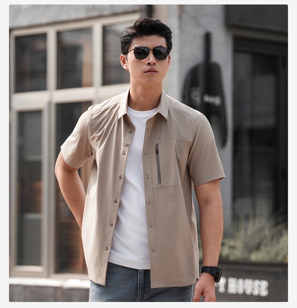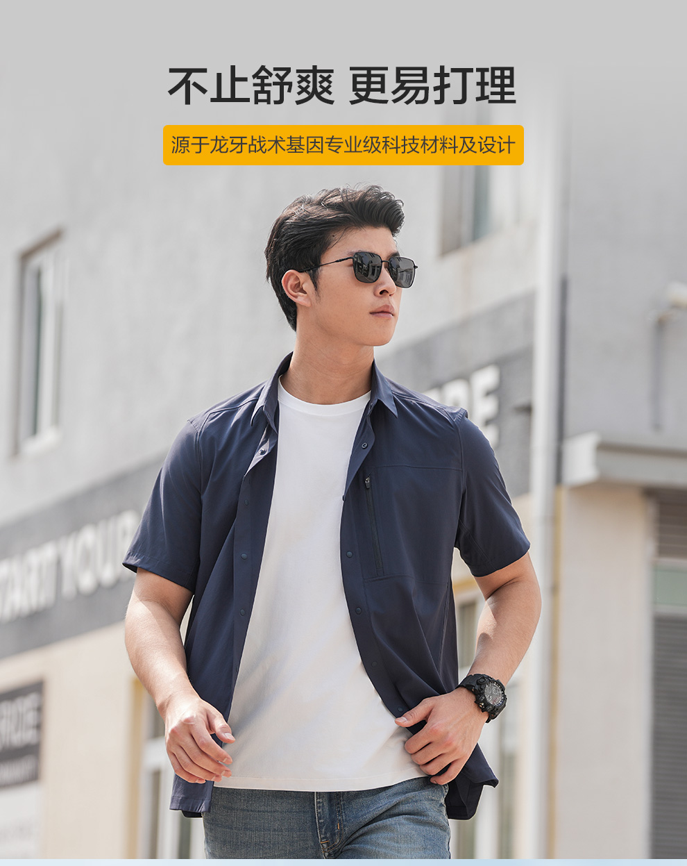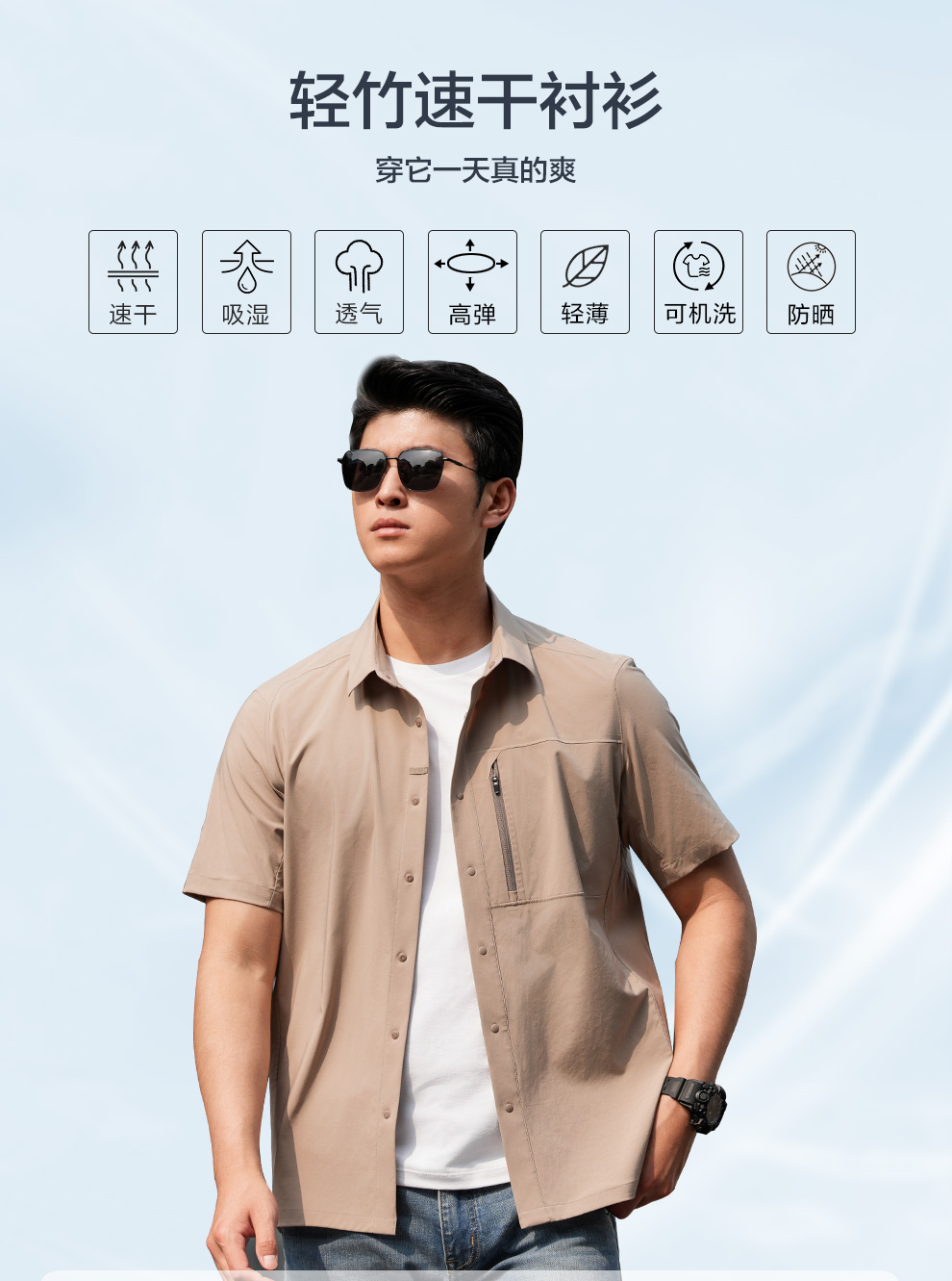 隐之轻竹速干休闲短袖衬衫春夏凉爽防晒短袖通勤百搭男半袖